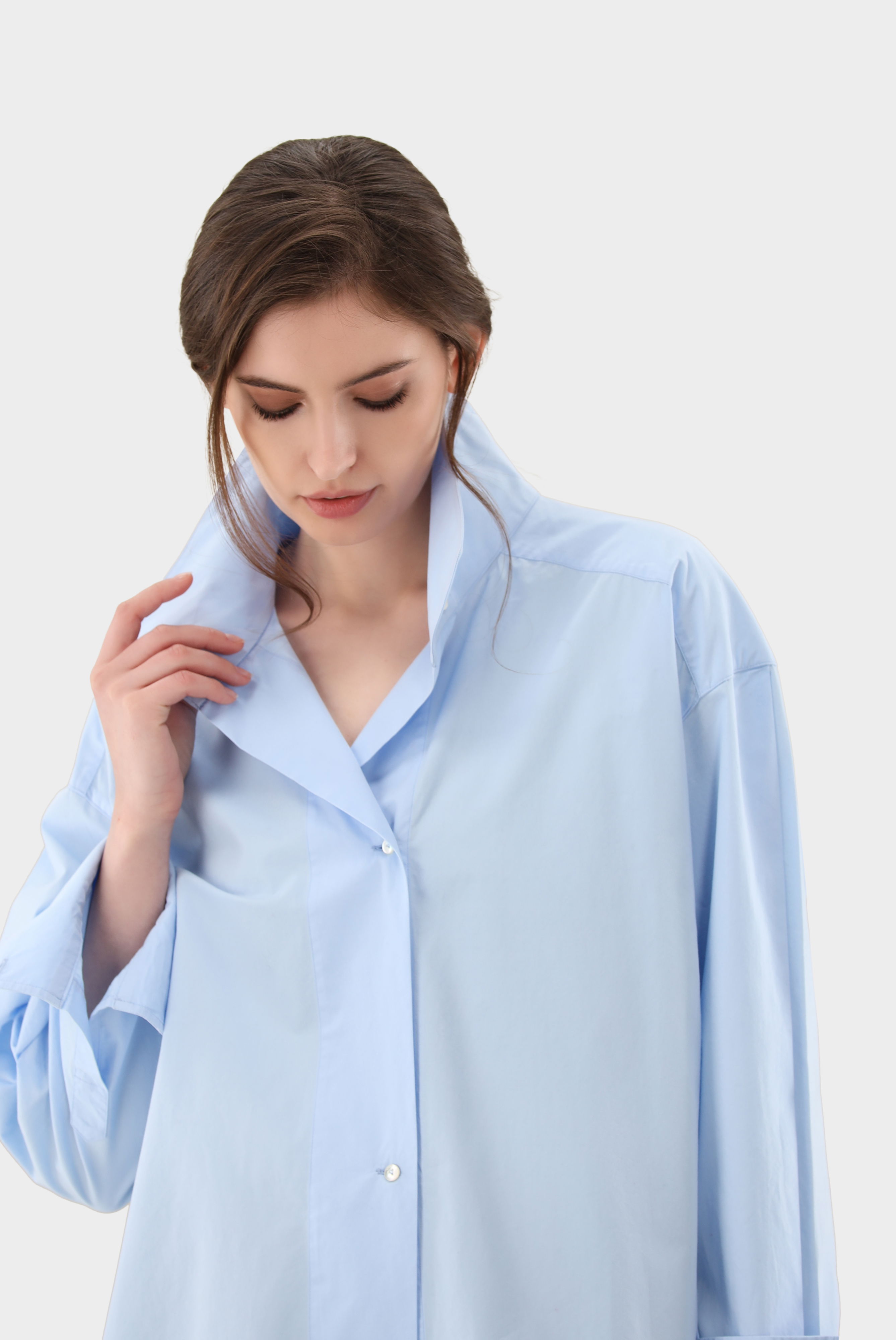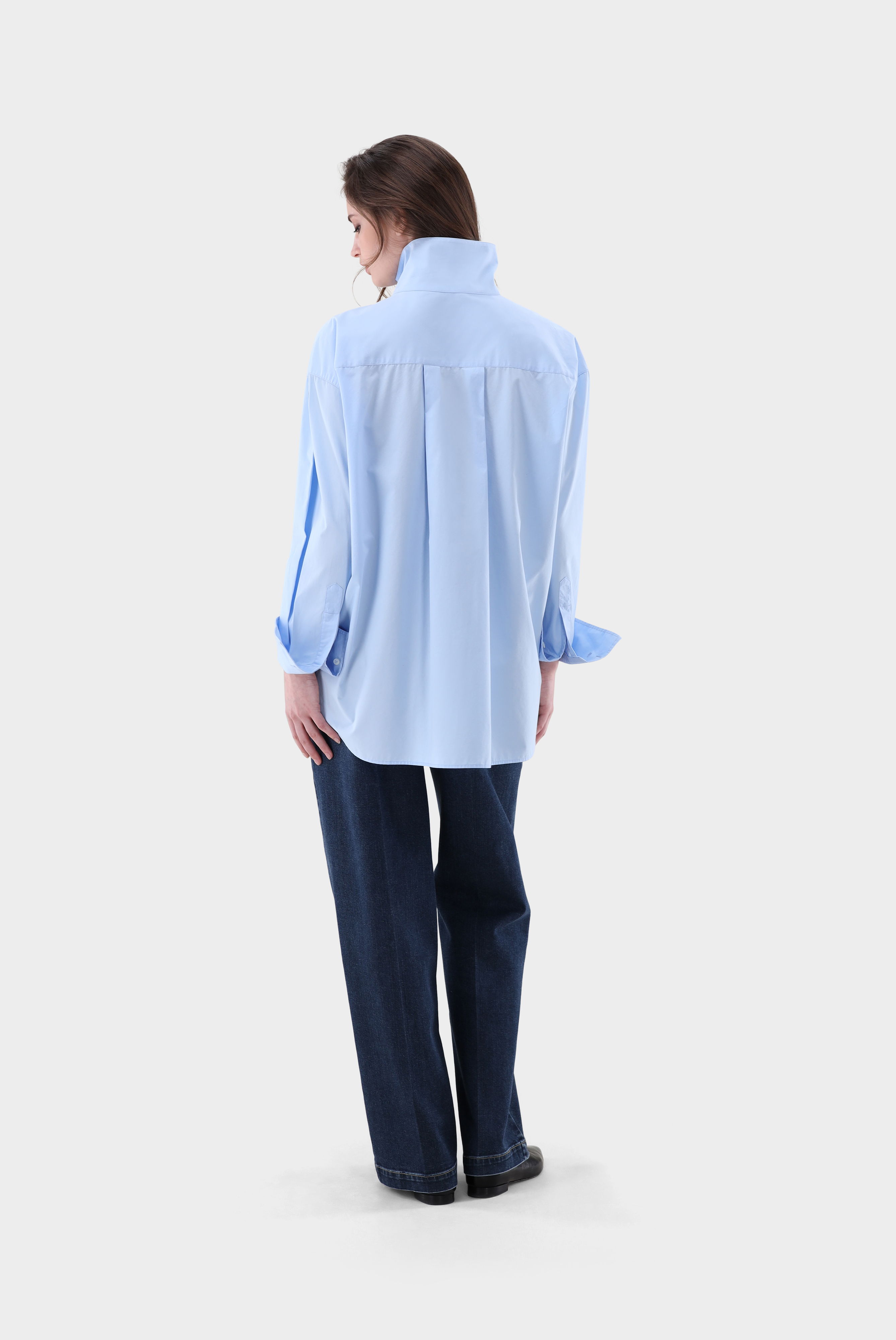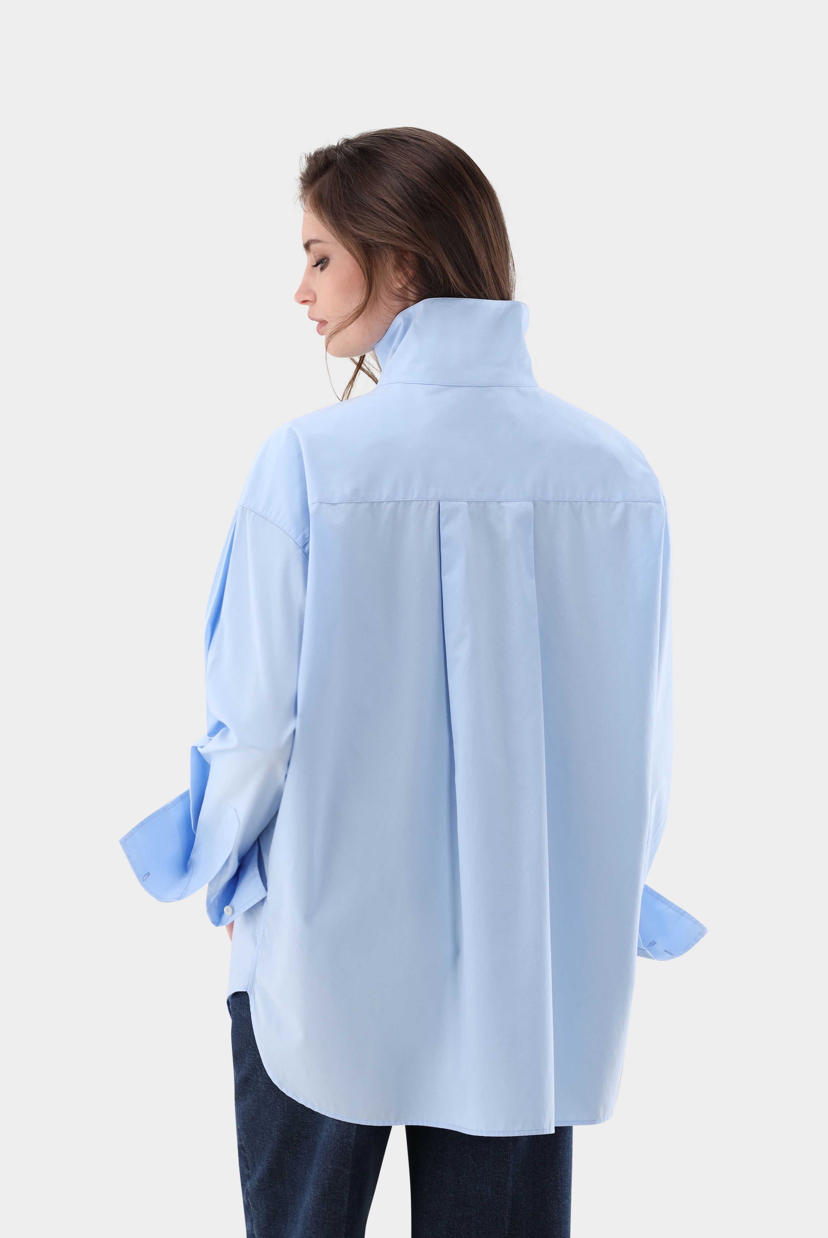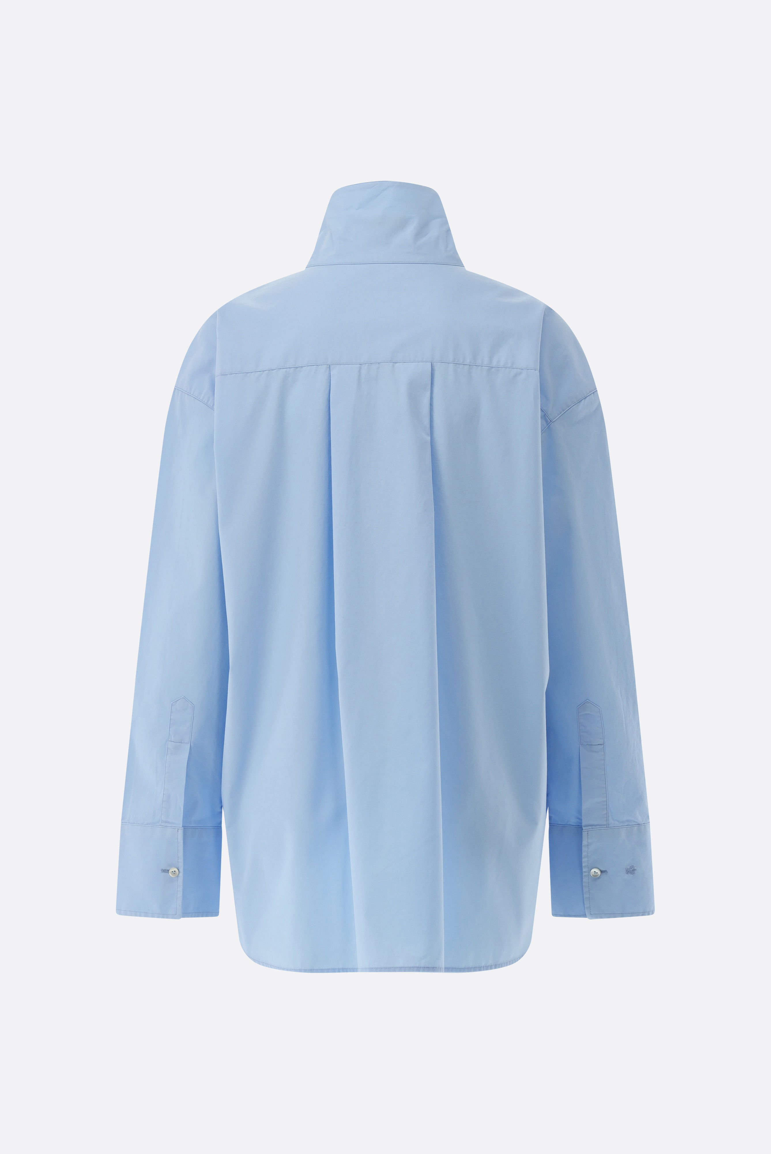 Diese Bluse überzeugt mit einer lockeren Passform und langen Ärmeln für hohen Tragekomfort. Überschnittene Schultern und eine Rückenpasse mit Kellerfalte sorgen für eine moderne Silhouette. Der hohe Stehkragen verleiht dem Design eine klare, strukturierte Optik. Gefertigt ist die Bluse aus einfarbiger Baumwolle mit weicher Waschung, was für ein angenehmes Hautgefühl sorgt. Eine vielseitig kombinierbare Wahl für Alltag und Büro..