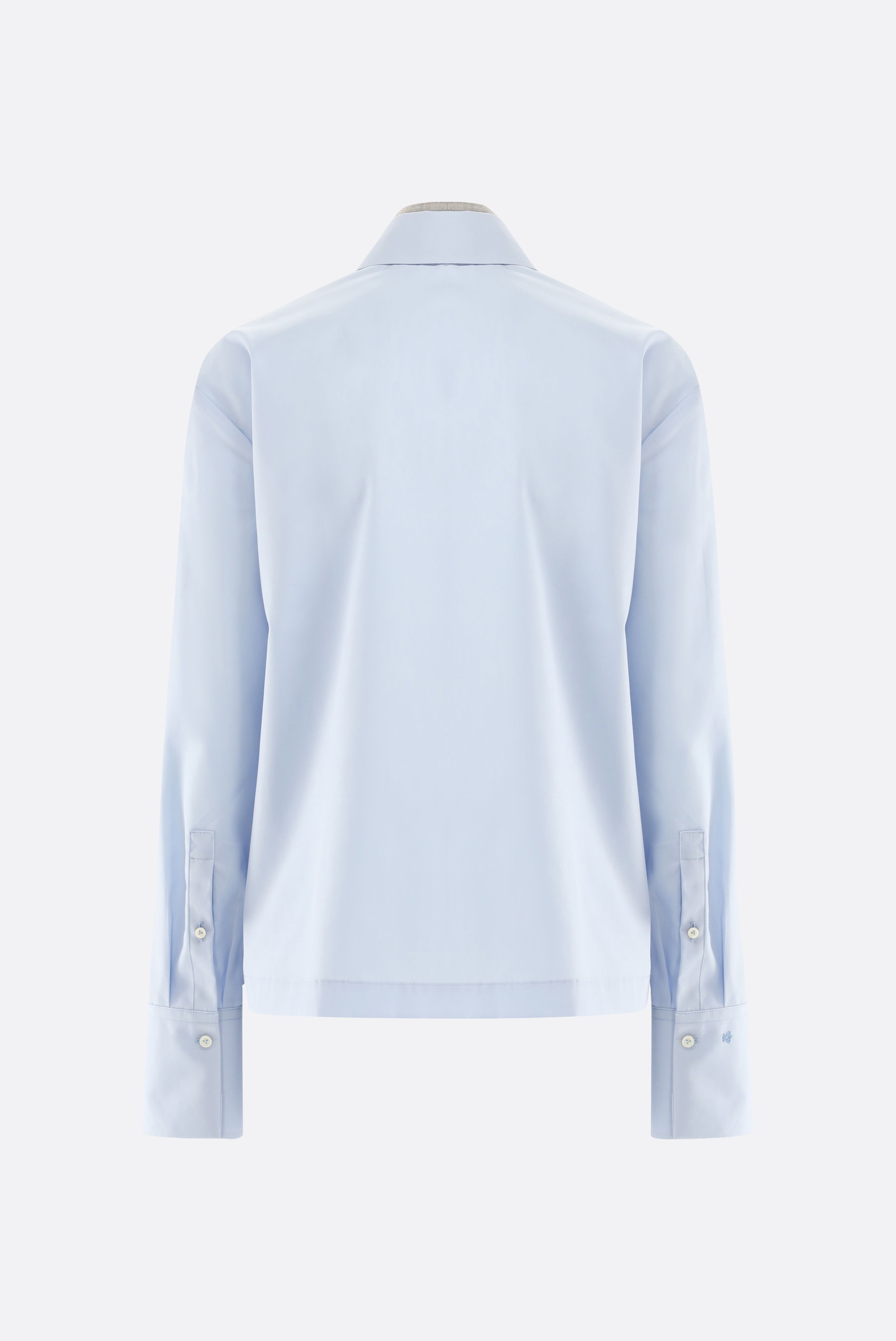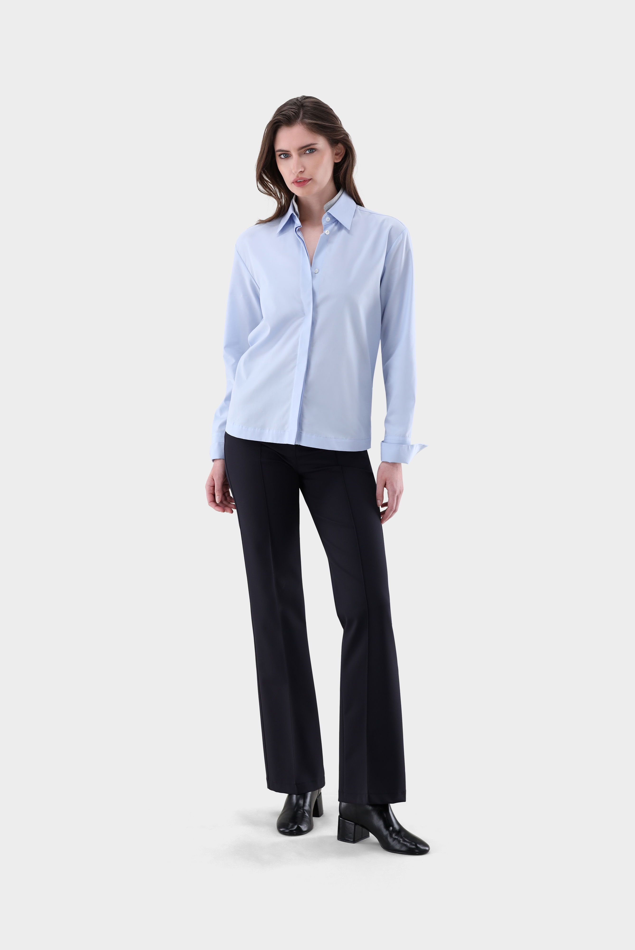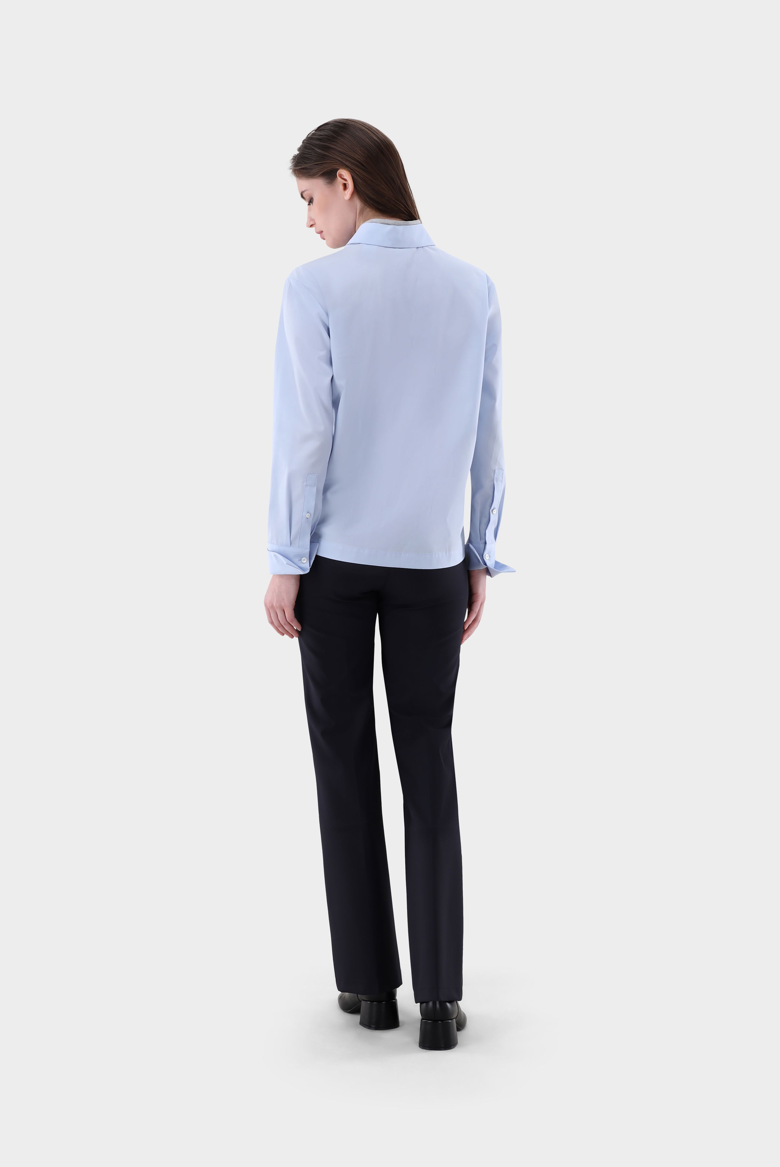 Diese Bluse im Boxy Fit überzeugt mit einer klaren, modernen Silhouette und langen Ärmeln. Ein besonderes Detail ist der abnehmbare Stehkragen aus Kontraststoff mit dezent glänzenden Akzenten. Gefertigt aus Baumwollpopeline, bietet die Bluse ein angenehmes Tragegefühl und eine strukturierte Optik. Der wandelbare Look macht sie vielseitig kombinierbar – ideal für Büro und Freizeit.