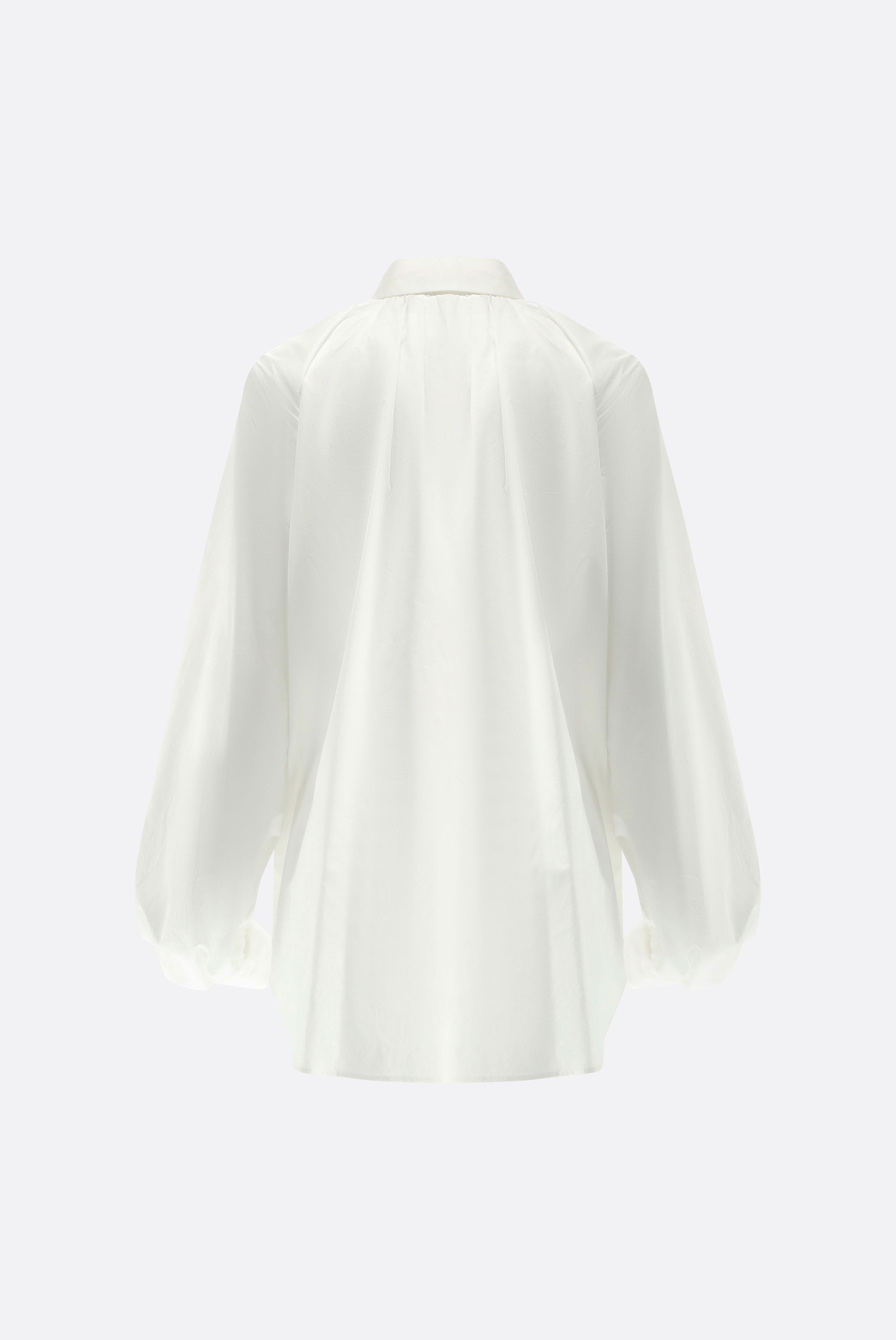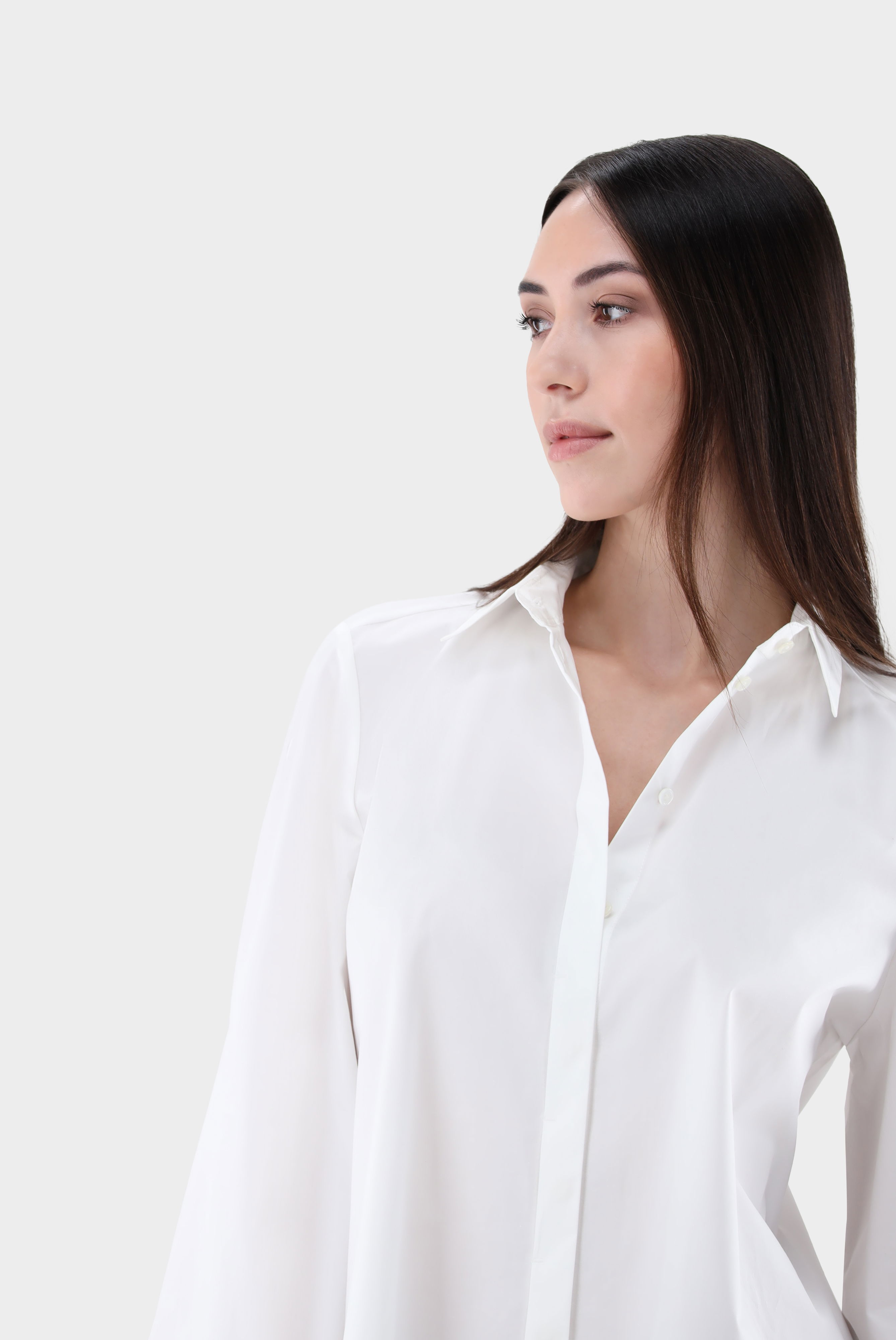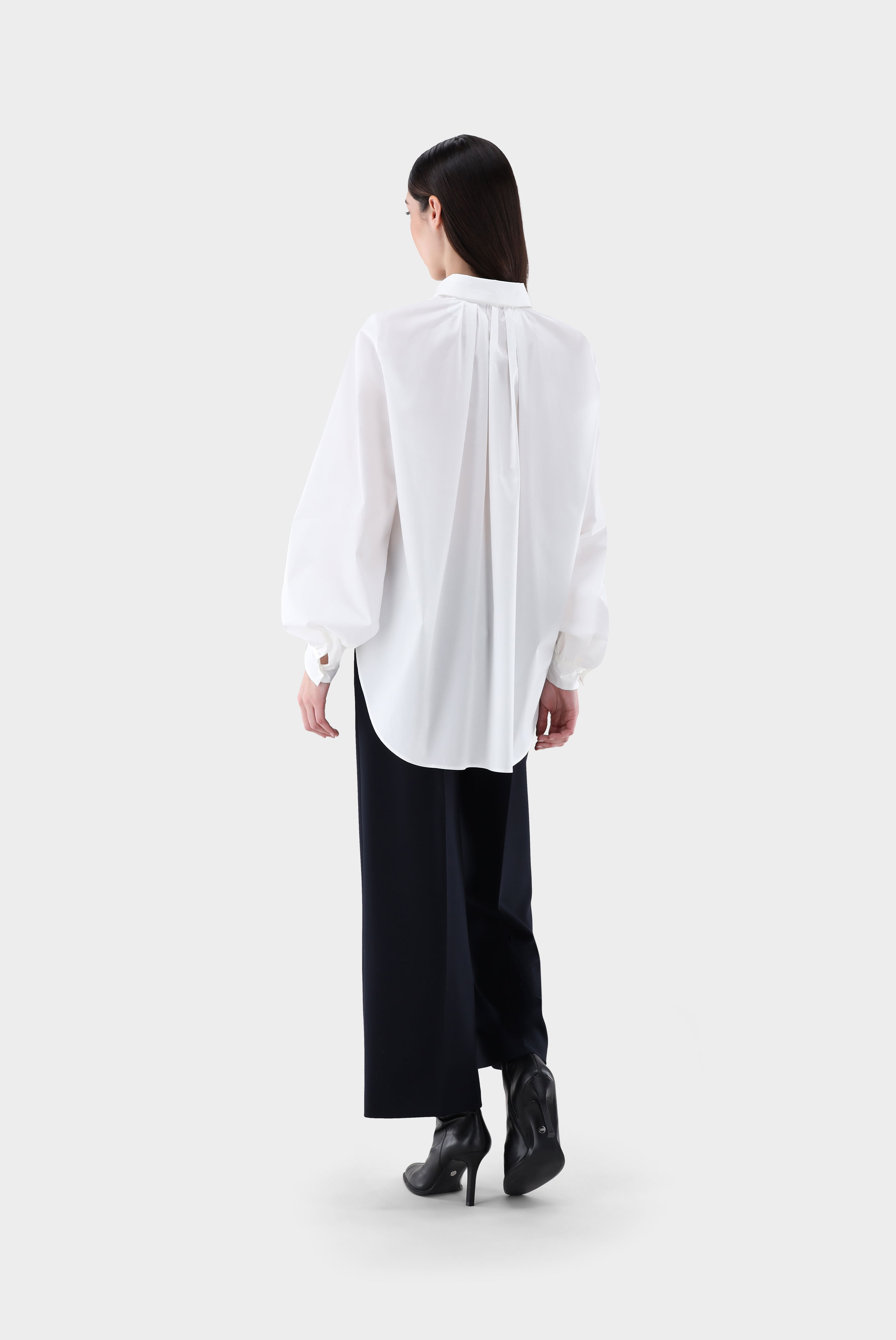 Weit geschnittenes Shirt mit langen Ballonärmeln, Rückenfalten, verdeckter Knopfleiste, hergestellt aus Baumwoll-Stretch mit Papertoucheffekt. Dieses vielseitige Shirt bietet eine lockere Passform mit voluminösen Ballonärmeln, verdeckter Knopfleiste mit Riegeldetails, extra breit abgestepptem Kragen und Manschette sowie Falten am Kragenansatz hinten. Geeignet für lässige, geschäftliche und festliche Anlässe.