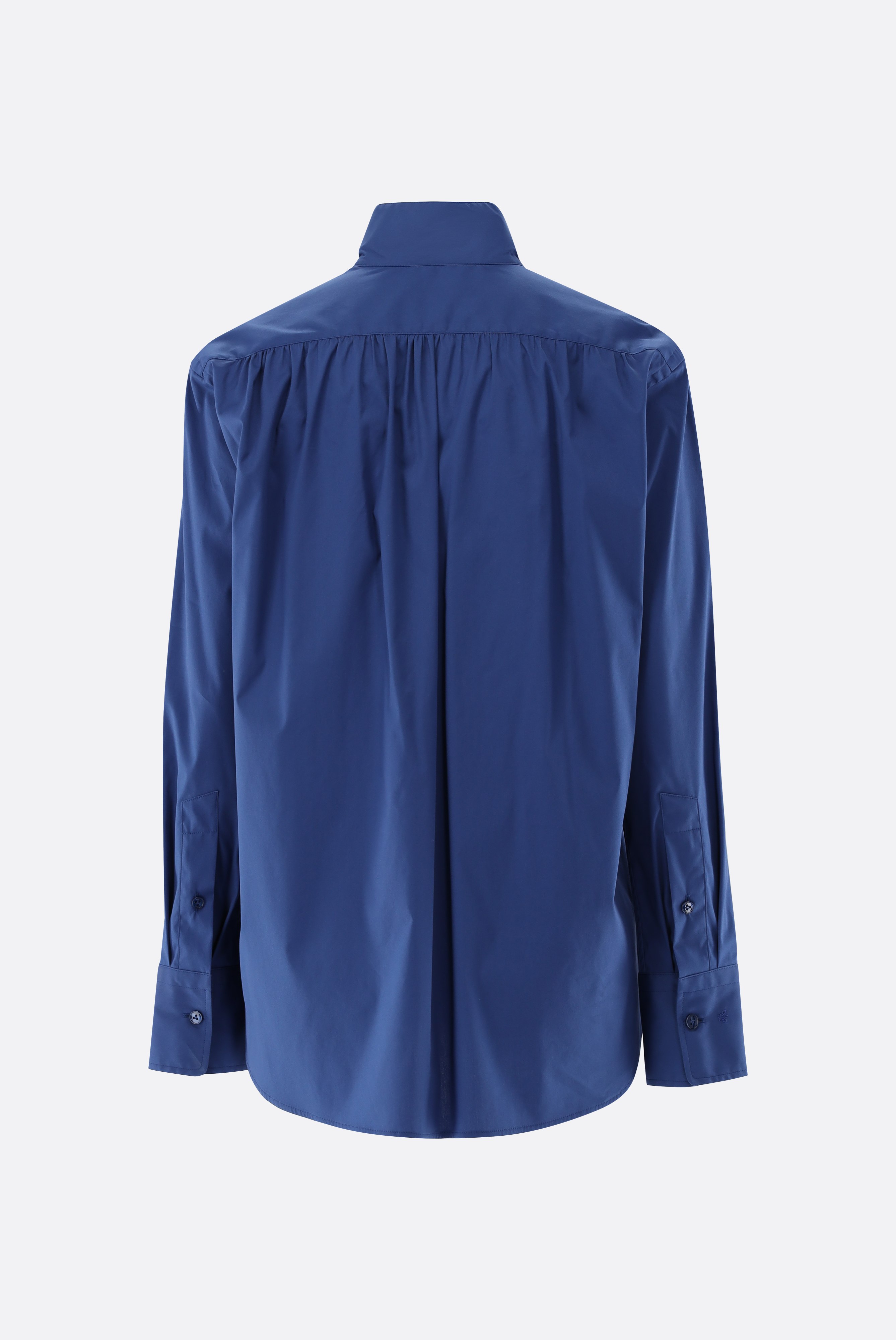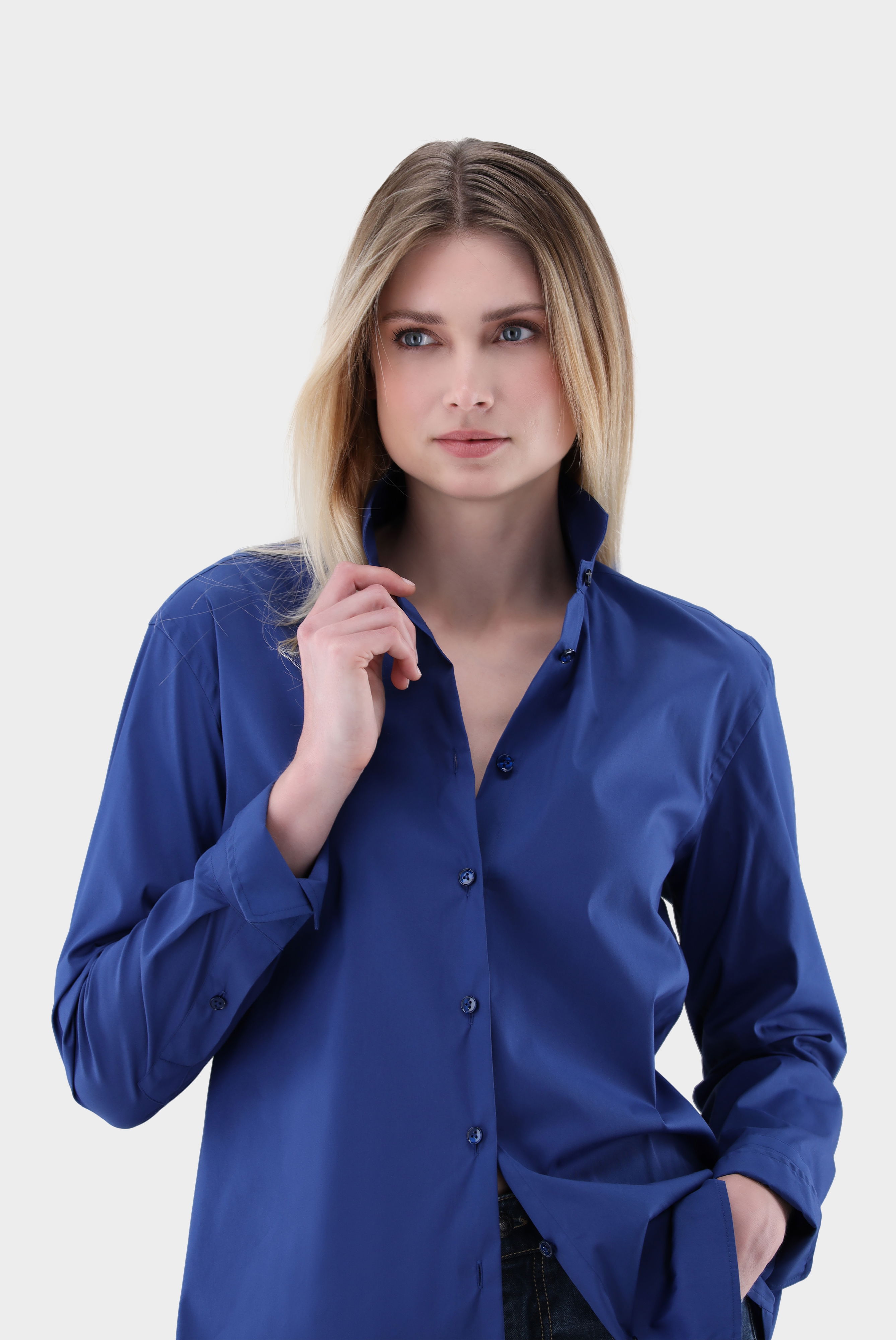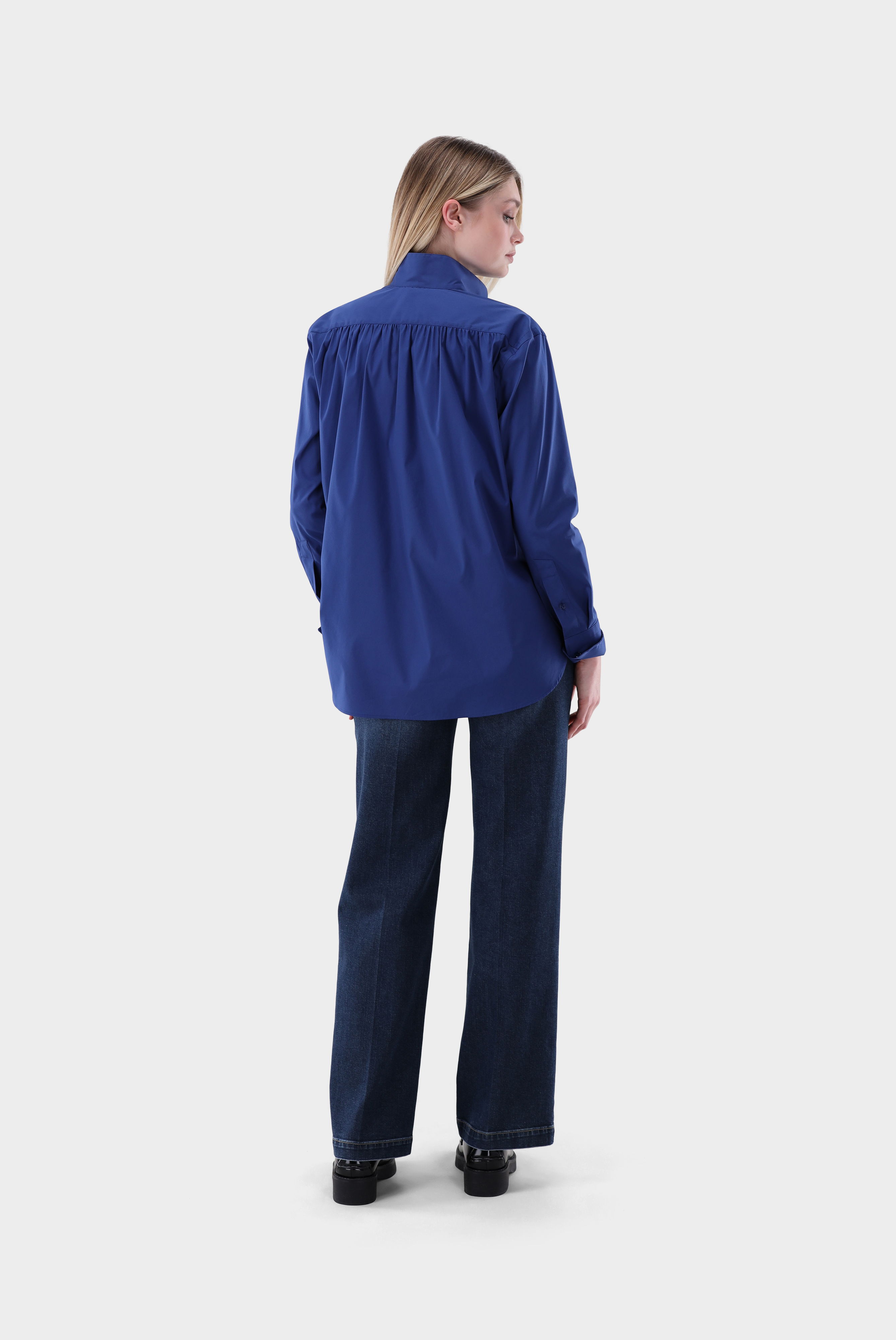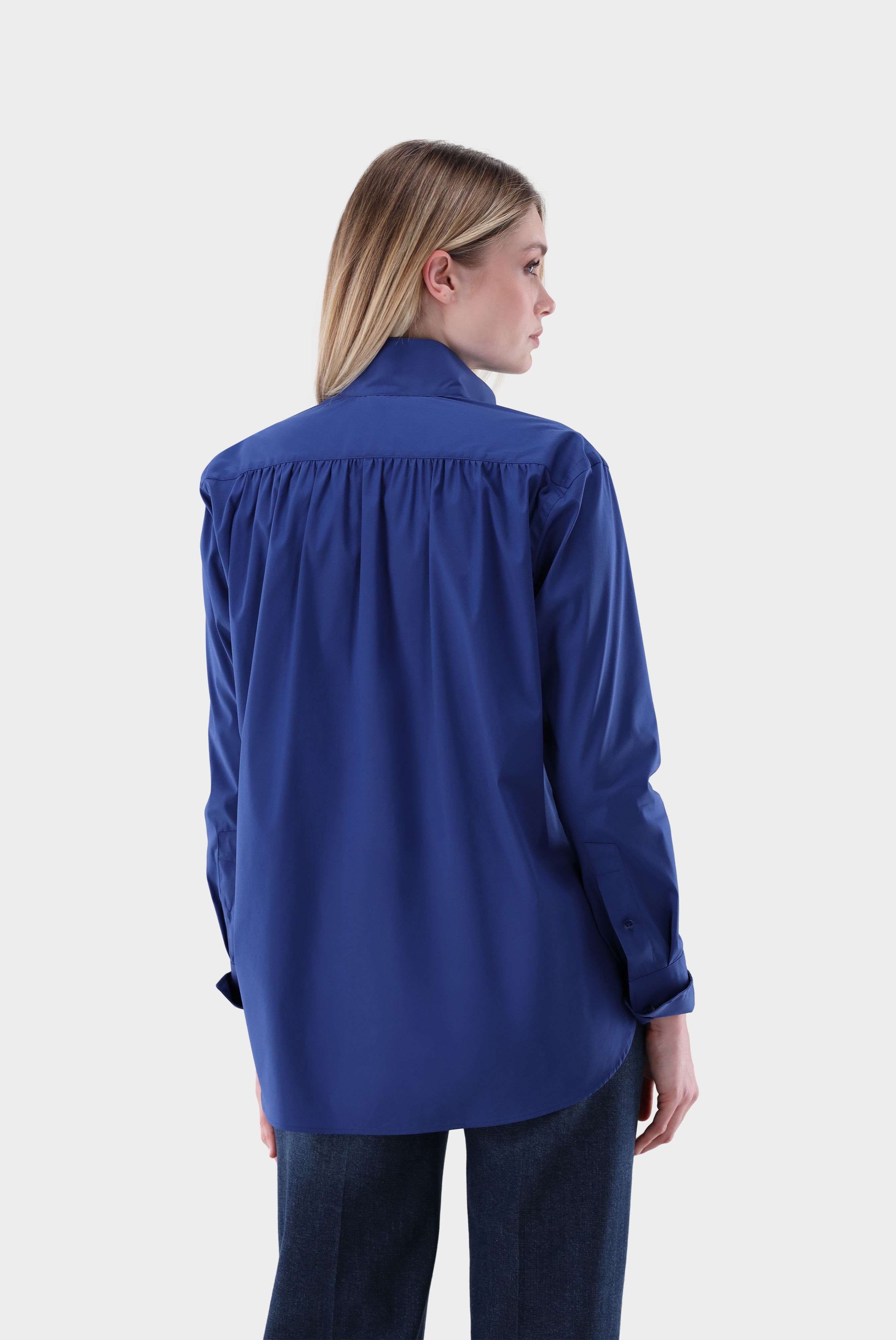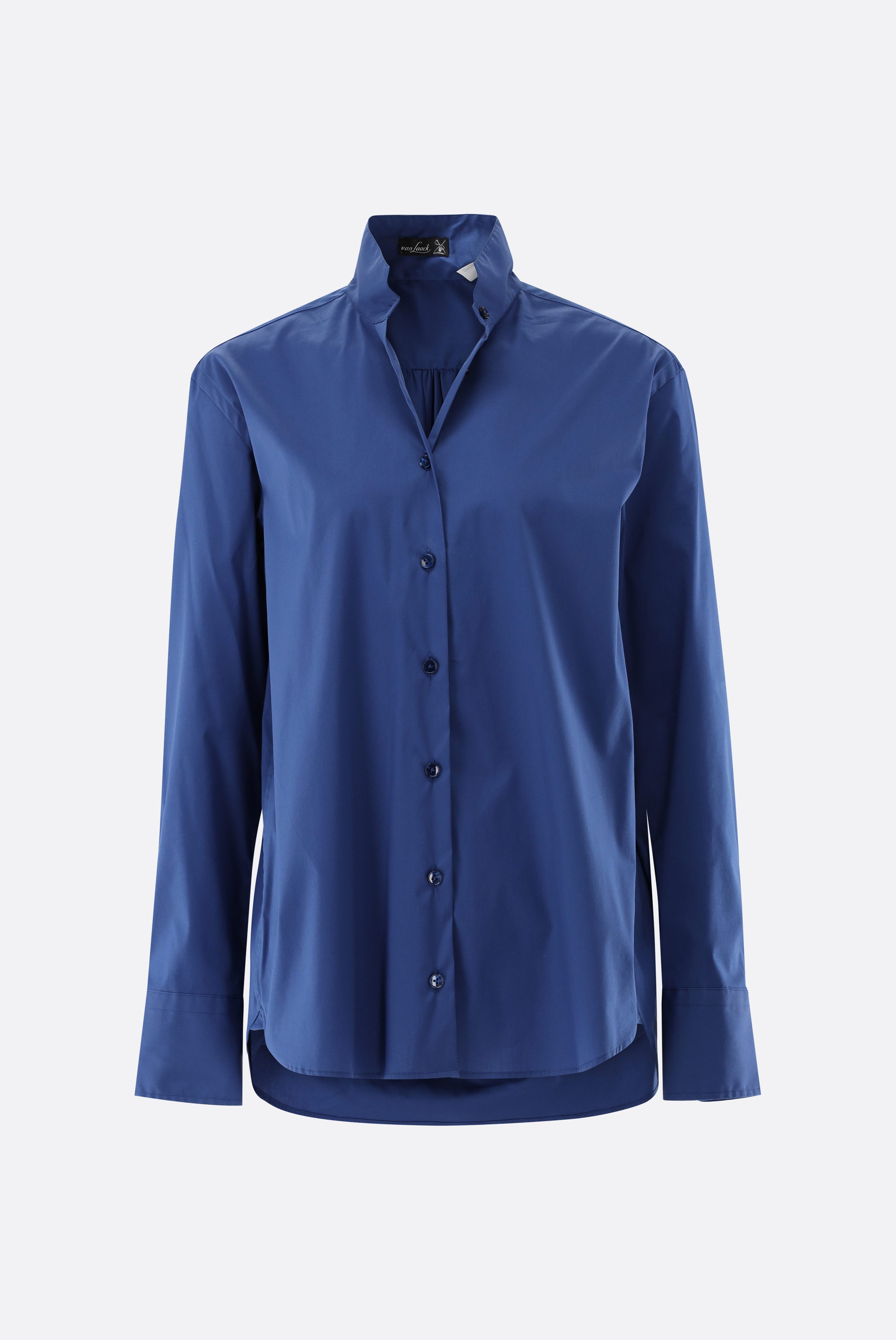Die lockere Bluse verfügt über lange Ärmel, sowie eine geraffte Rückenpasse. Der hohe Stehkragen sticht bei diesem Modell besonders hervor und sorgt für einen eleganten Look. Das Gewebe besteht aus einer Baumwolle mit Stretch Anteil und sorgt für Elastizität und Bewegungsfreiheit.