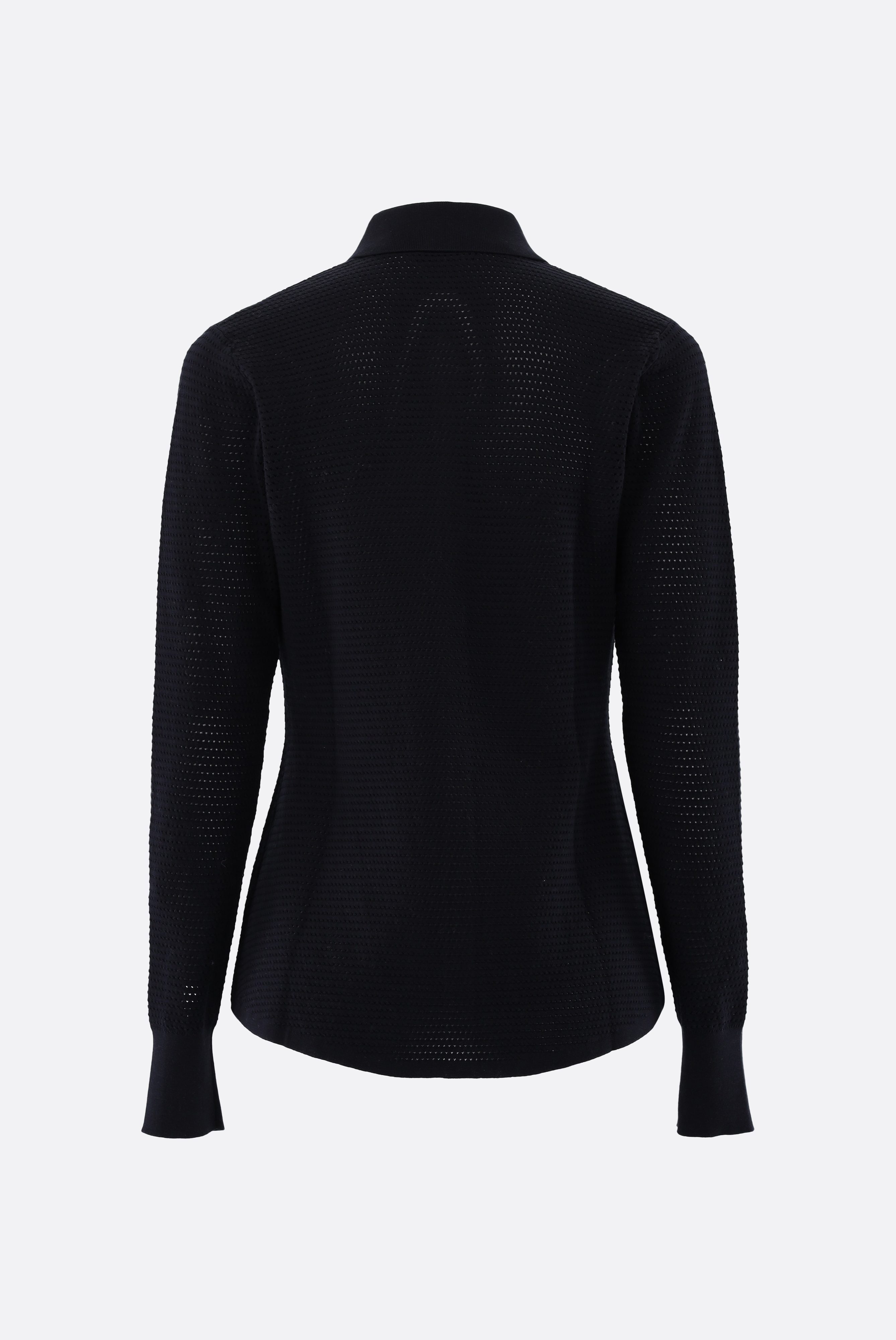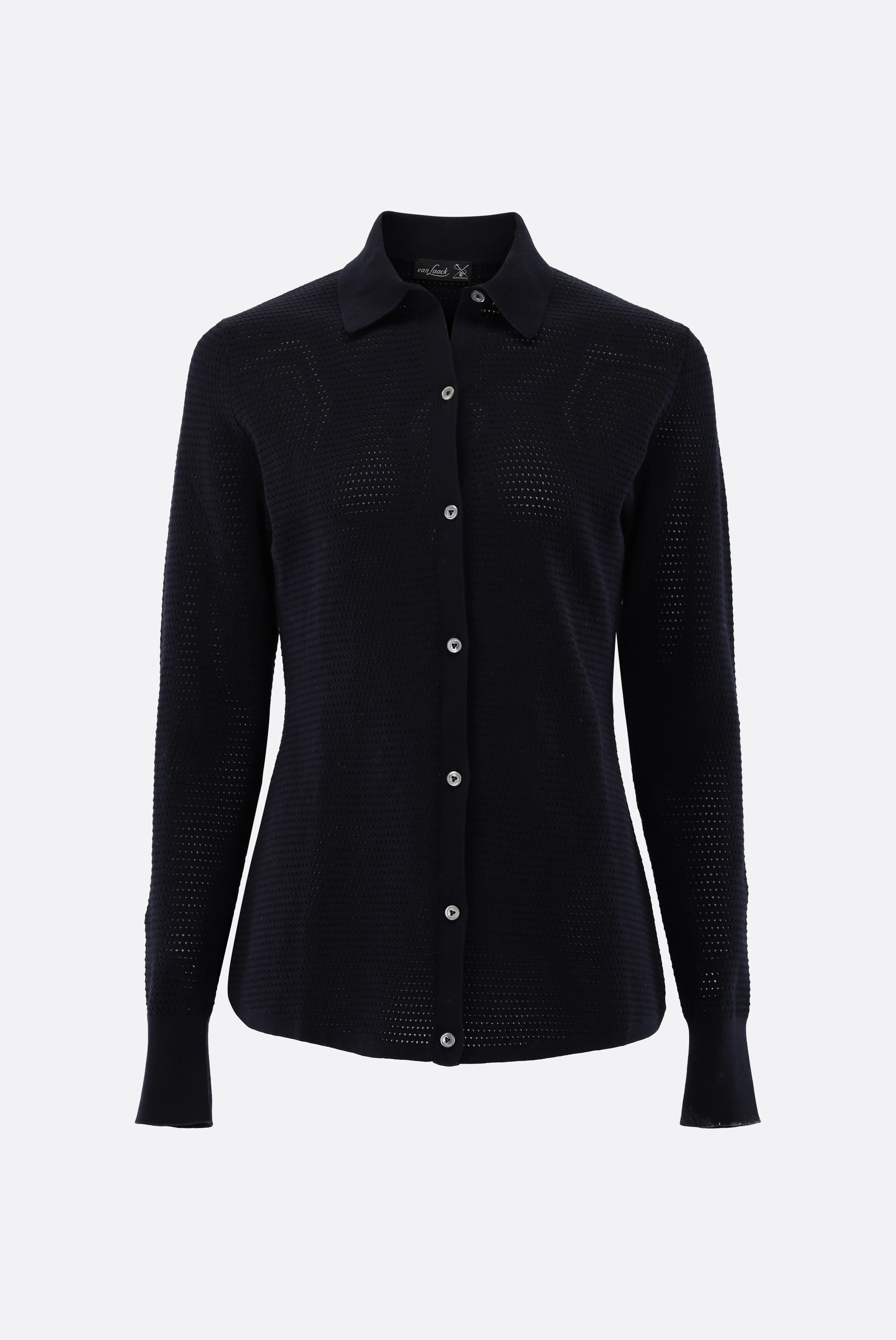 Die Strick Bluse mit Retro Struktur aus Air Cotton überzeugt durch Tragekomfort und hochwertige Verarbeitung. Der Einsatz von gezwirnten, fein gestrickten Baumwollgarnen mit einer leichten Struktur, welche gleichzeitig blickdicht sind, bewirkt besondere Luftdurchlässigkeit und verleiht dem Hemd einen besonders modernen look.