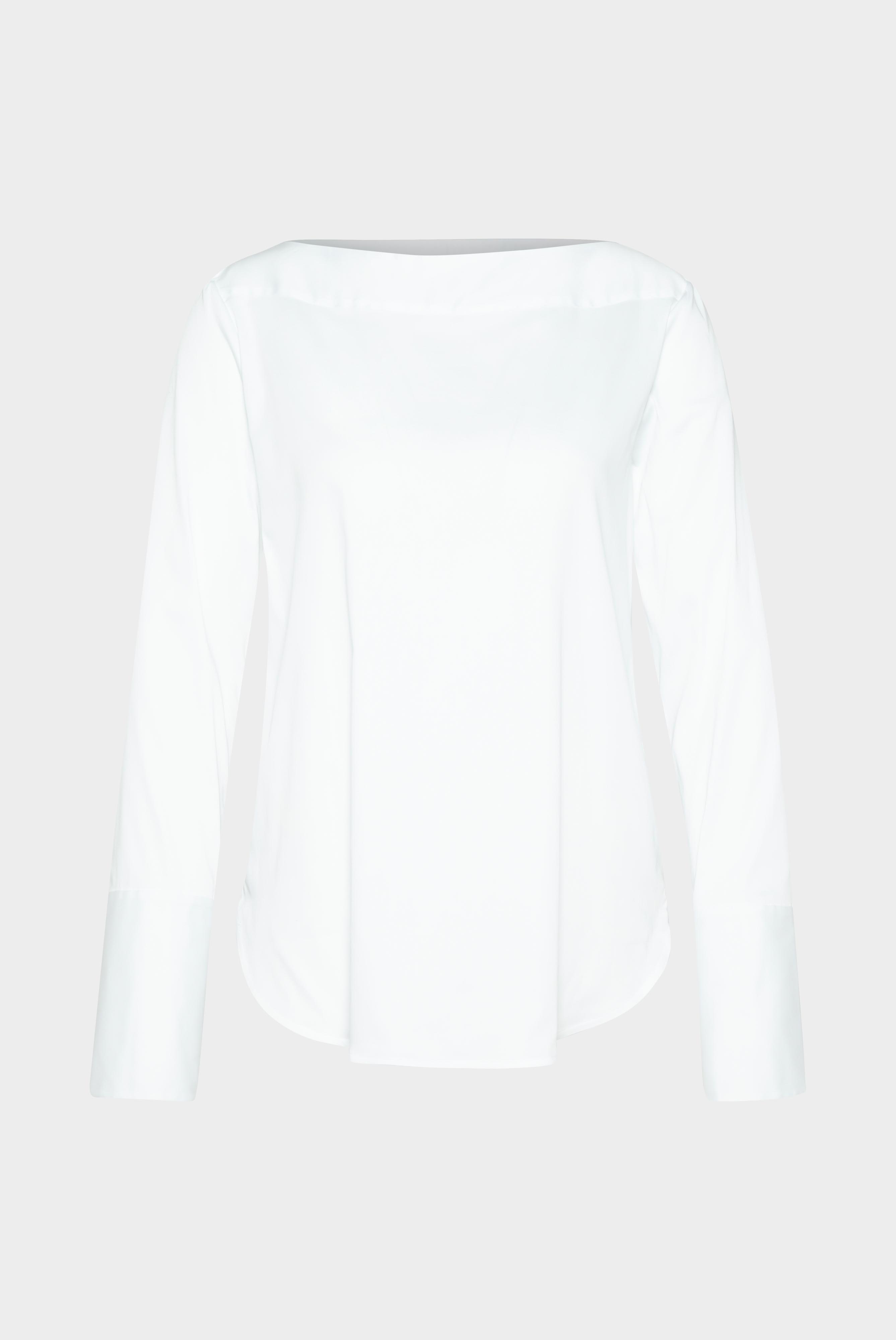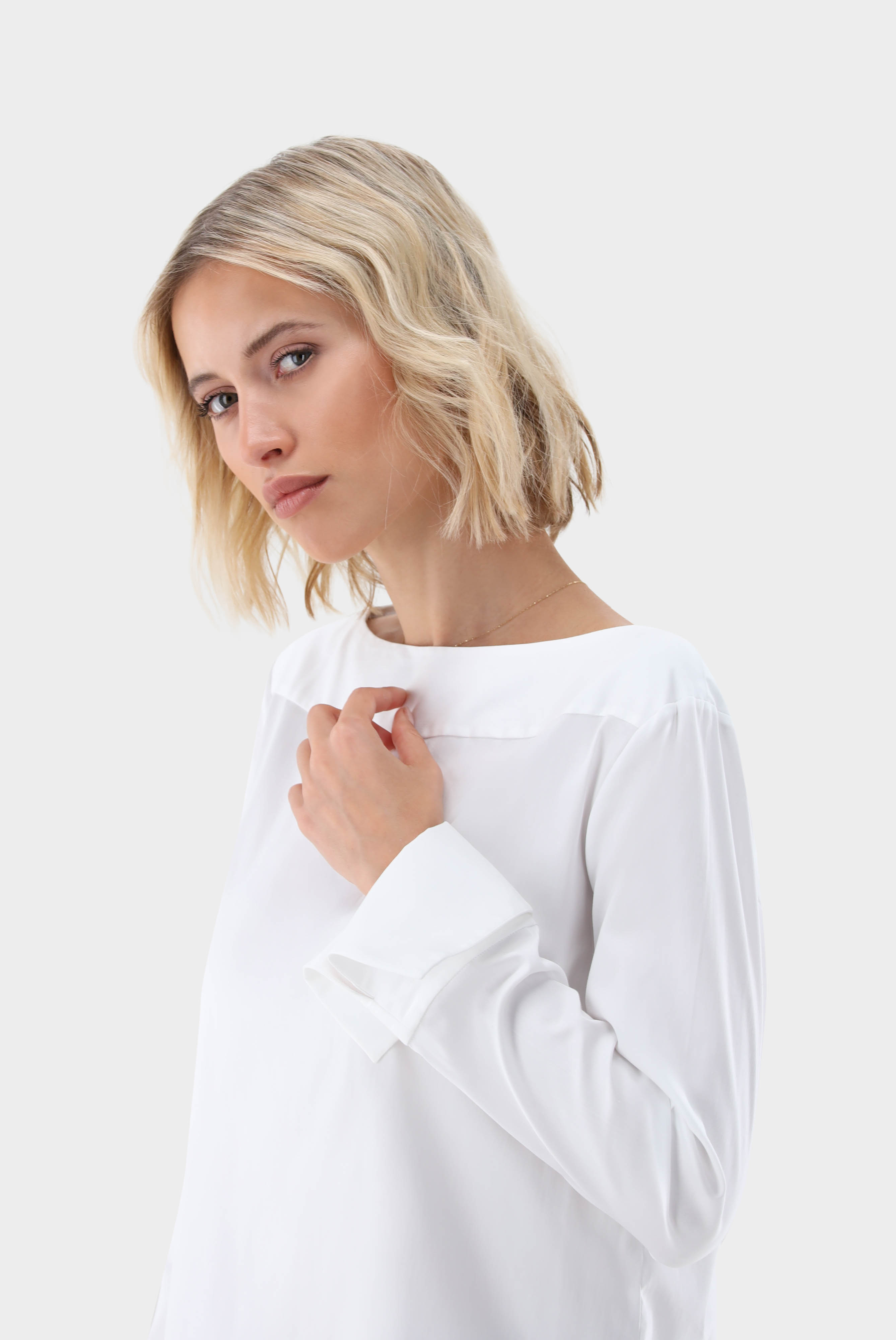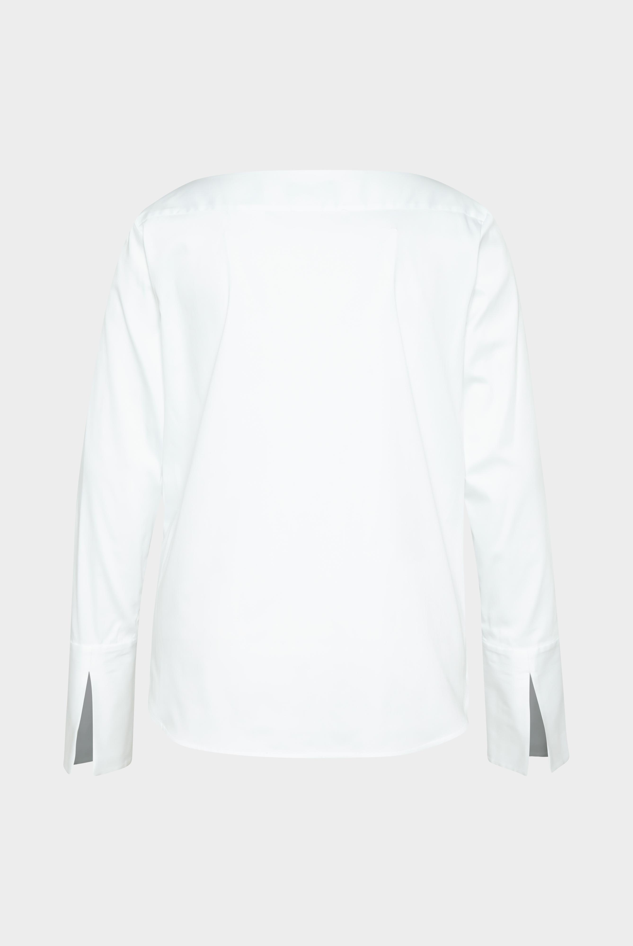 Look aus Bluse ohne Kragen aus Baumwollsatin