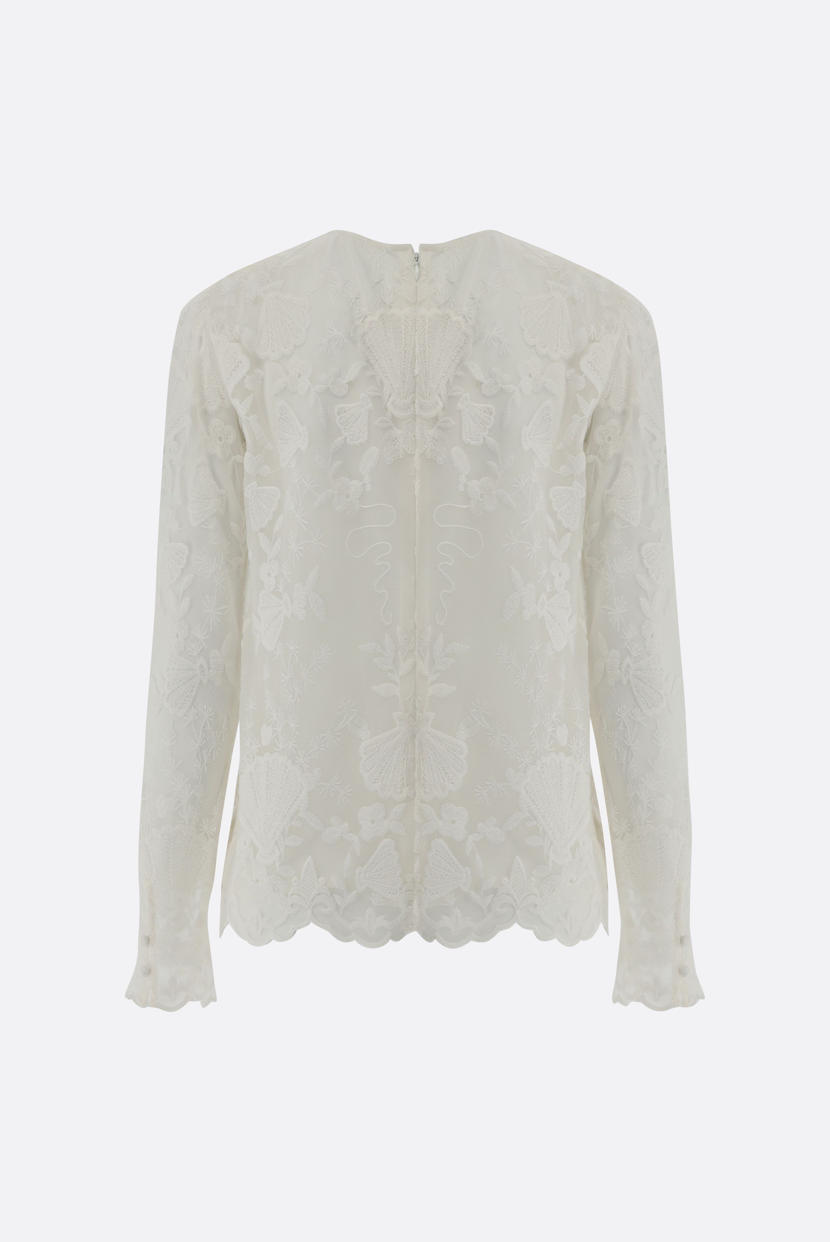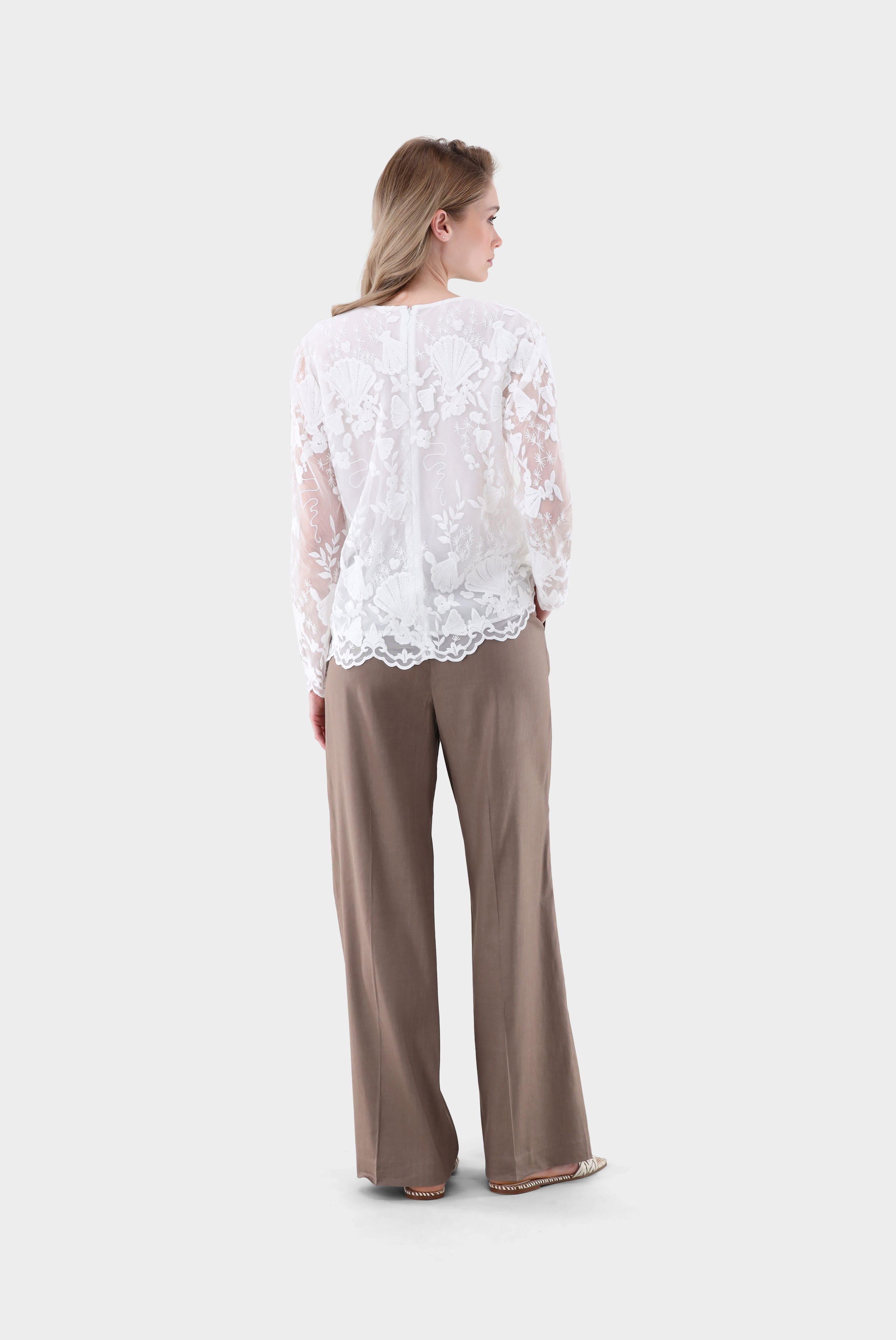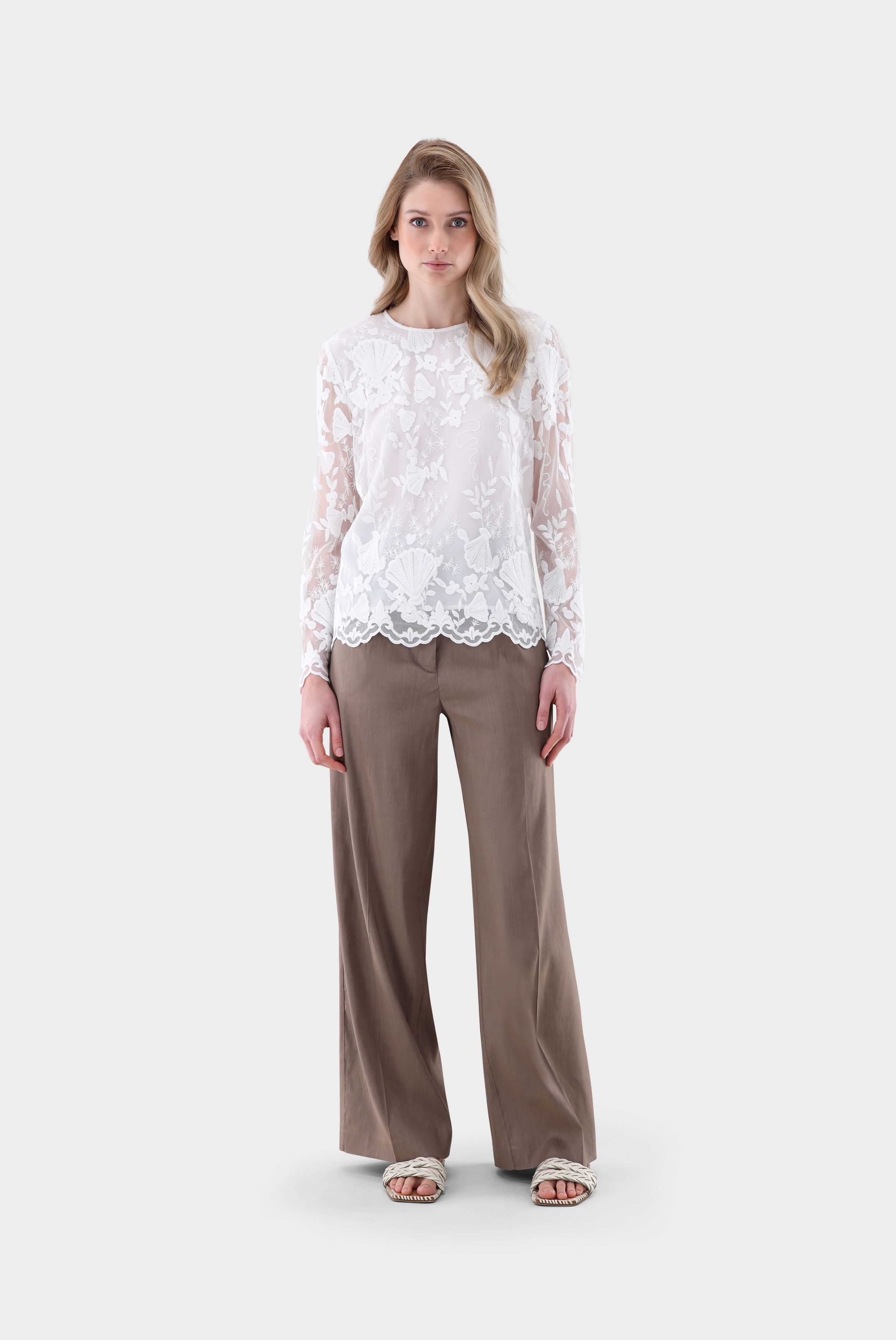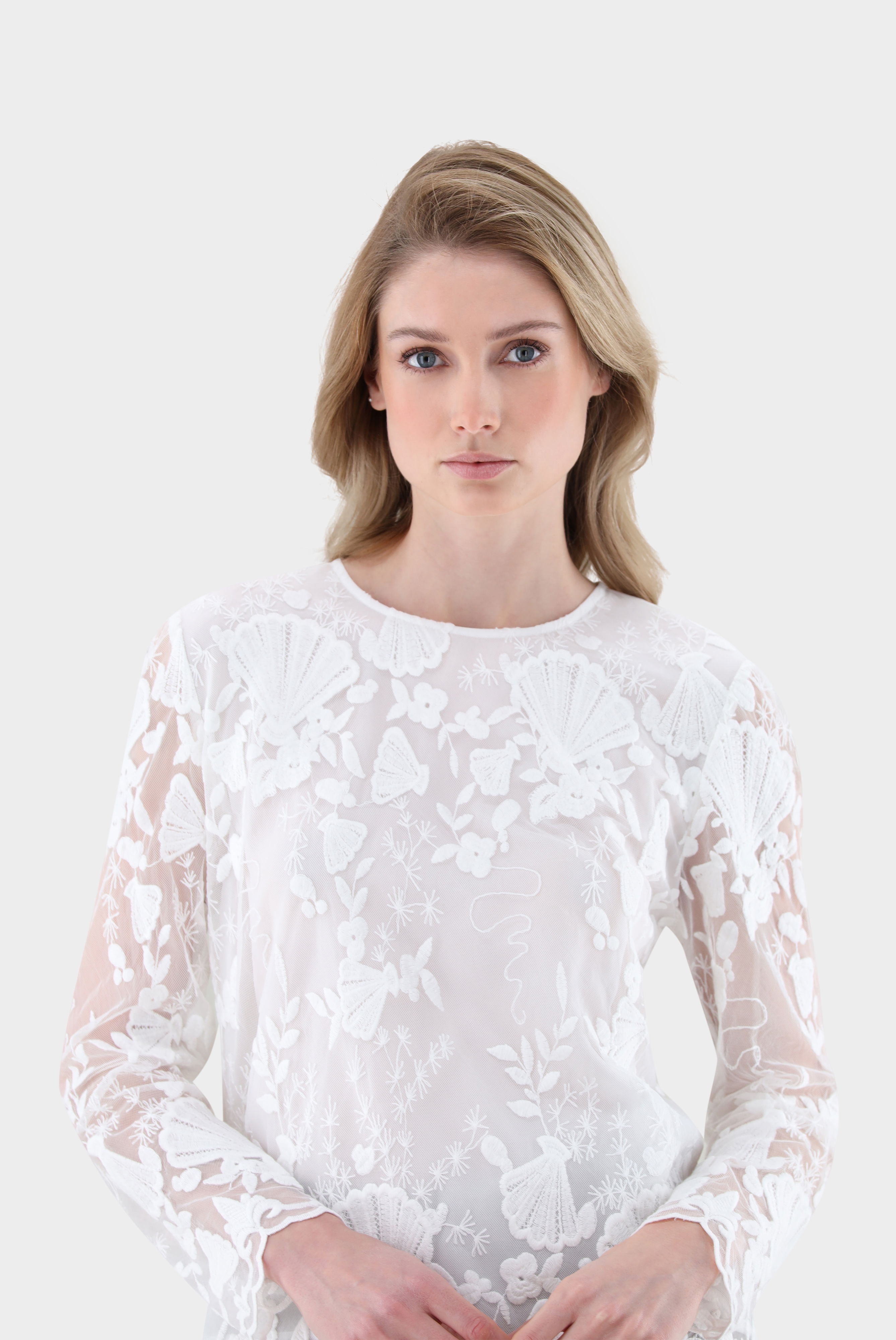 Dieses taillierte Blusentop besticht durch das besonders luftige Material, welches aufwändig bestickt ist. Die Stickerei erstreckt sich über das gesamte Blusentop und wird durch Stickerei Abschlüsse an Saum und Ärmeln veredelt. Das Blusentop wird zudem mit einem Unterziehtop geliefert.