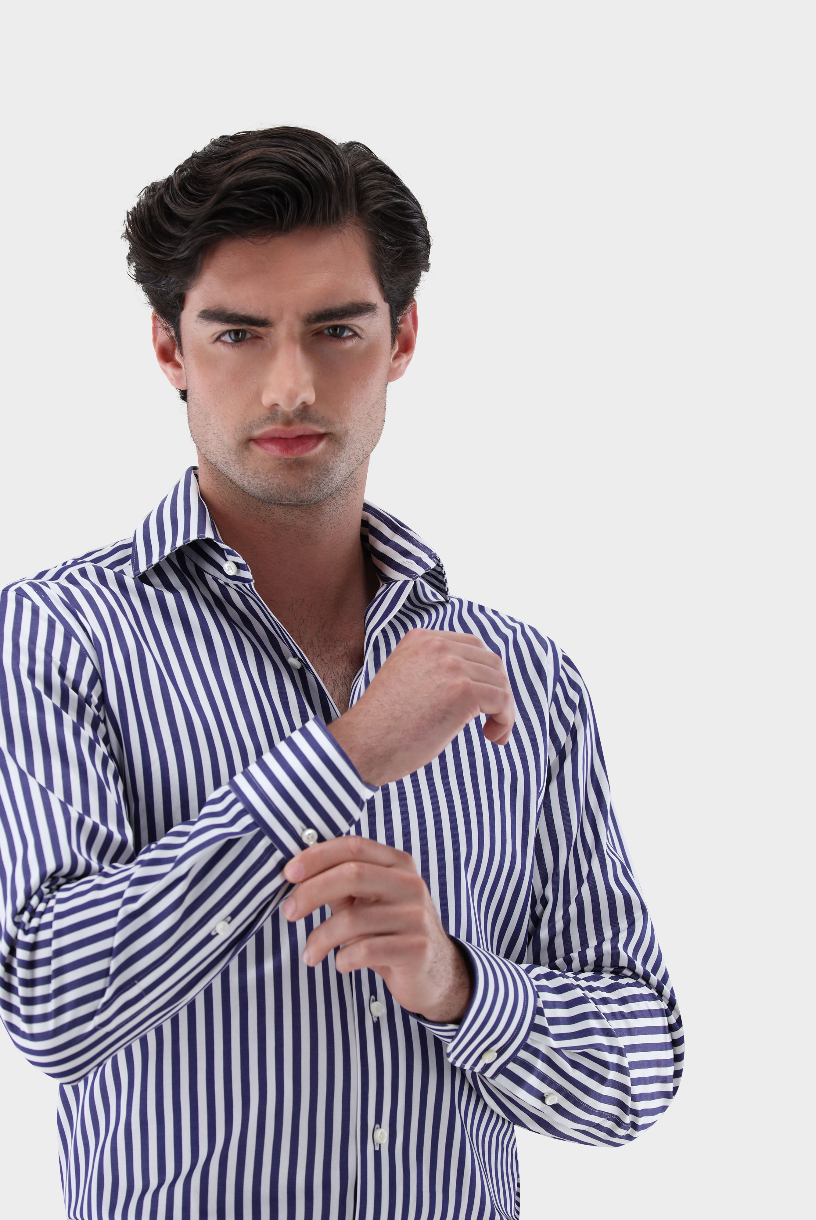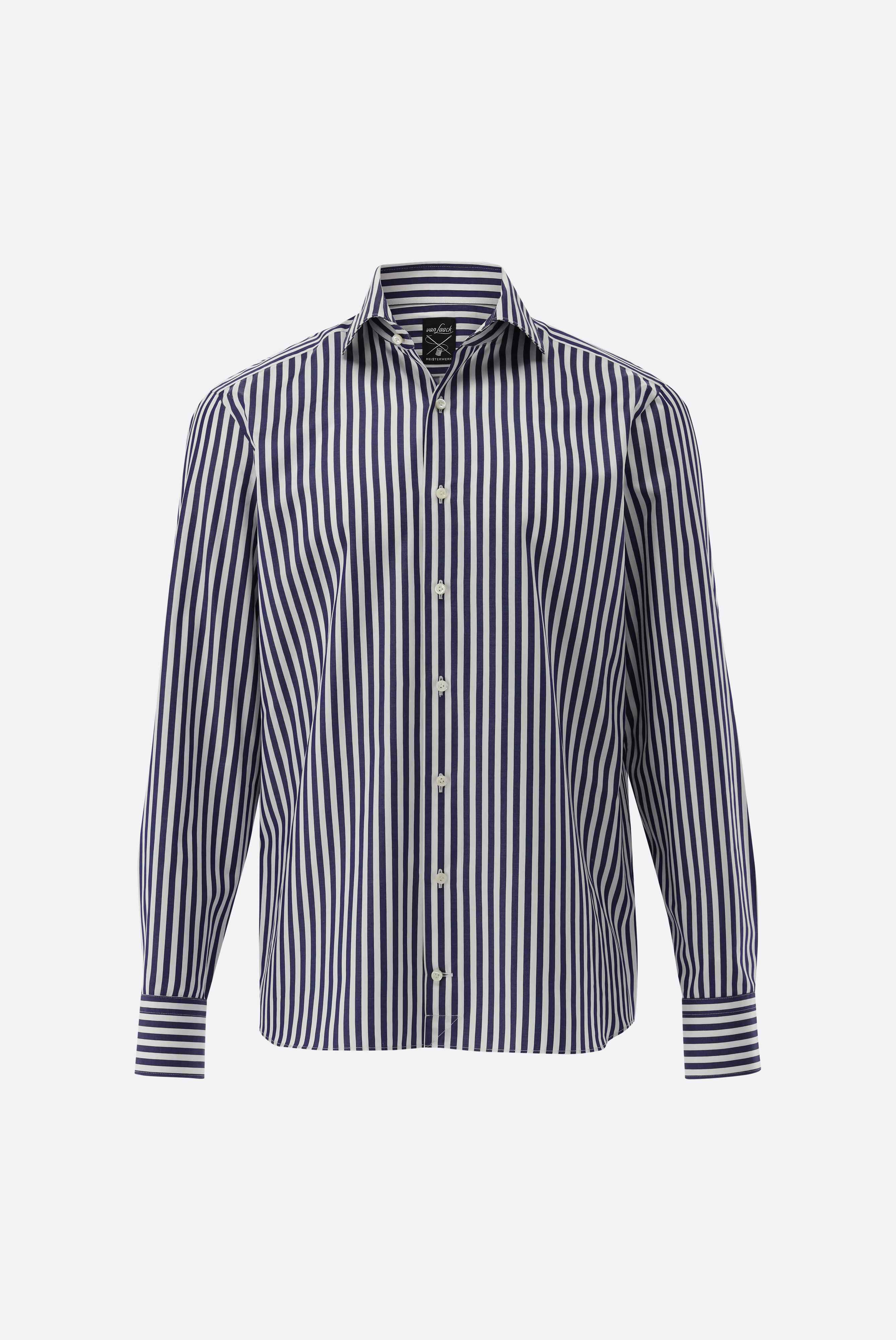 Entdecken Sie unser edles Hemd aus feinstem Butterfly-Twill mit stilvollen Bonbonstreifen – ein echtes Highlight für anspruchsvolle Herrenmode. Die sartoriale Verarbeitung überzeugt mit einer einzigartigen, abgerundeten Meisterwerk-Manschette mit einem Knopf und einer geteilten Passe, die optimalen Tragekomfort bietet. Feinste Handstich-Schulternähte und von Hand angenähte, filigrane van Laack Beinecken unterstreichen die hohe Handwerkskunst. Dieses Hemd vereint zeitlose Eleganz mit exklusiven Details für einen stilvollen Auftritt. Ideal für Business und besondere Anlässe – Qualität, die man sieht und spürt.