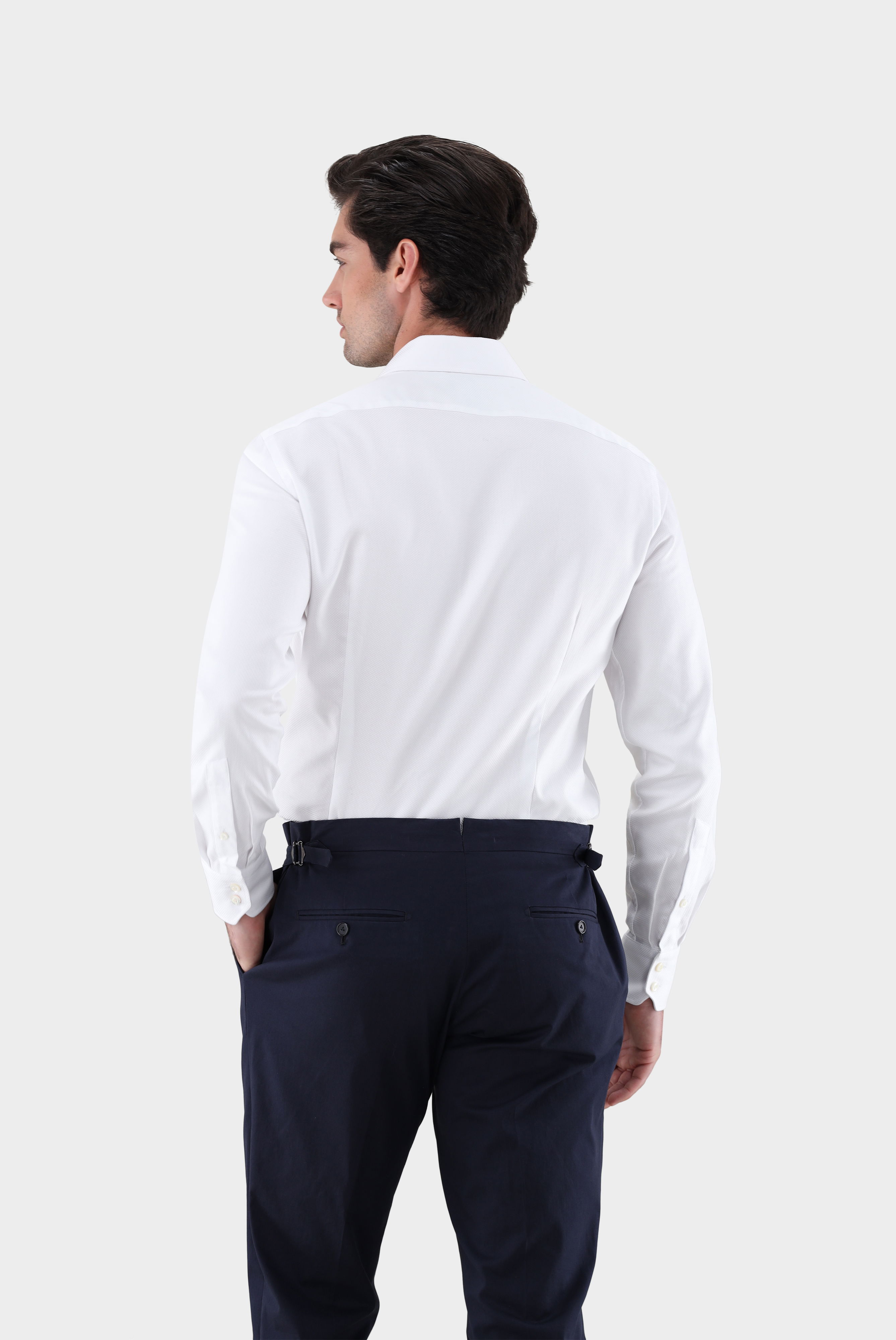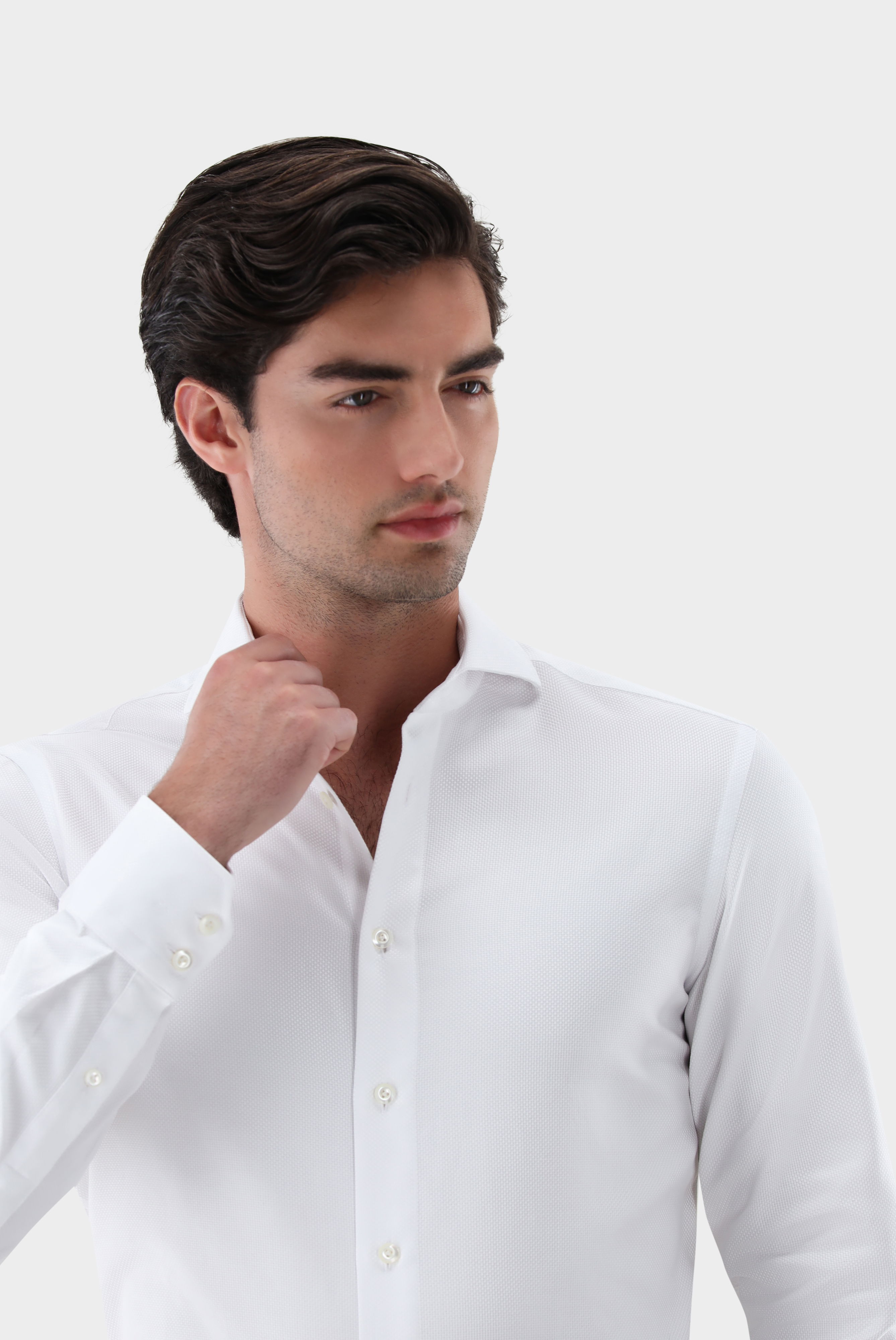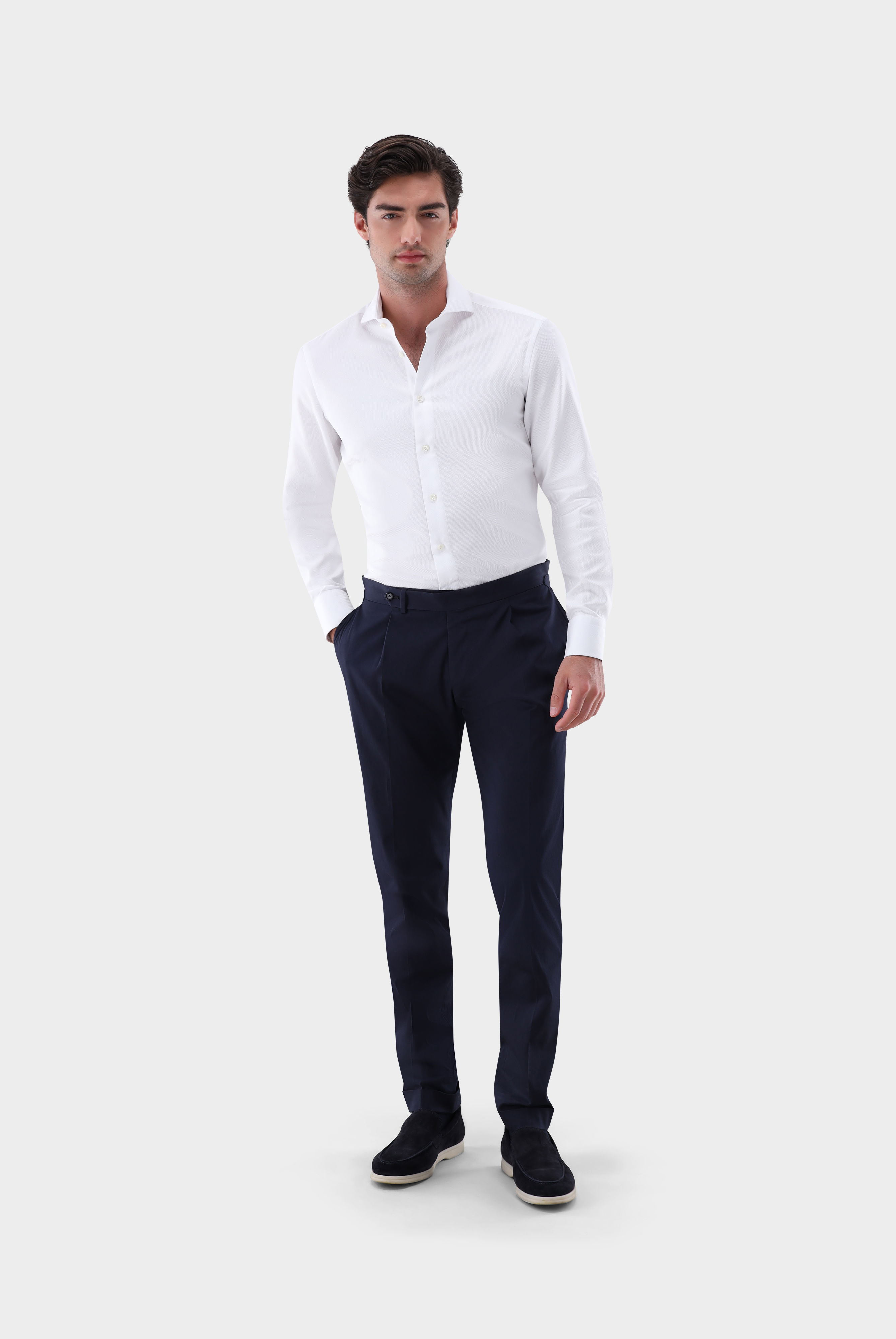 Look aus Businesshemd mit Korbgeflechtstruktur Tailor Fit