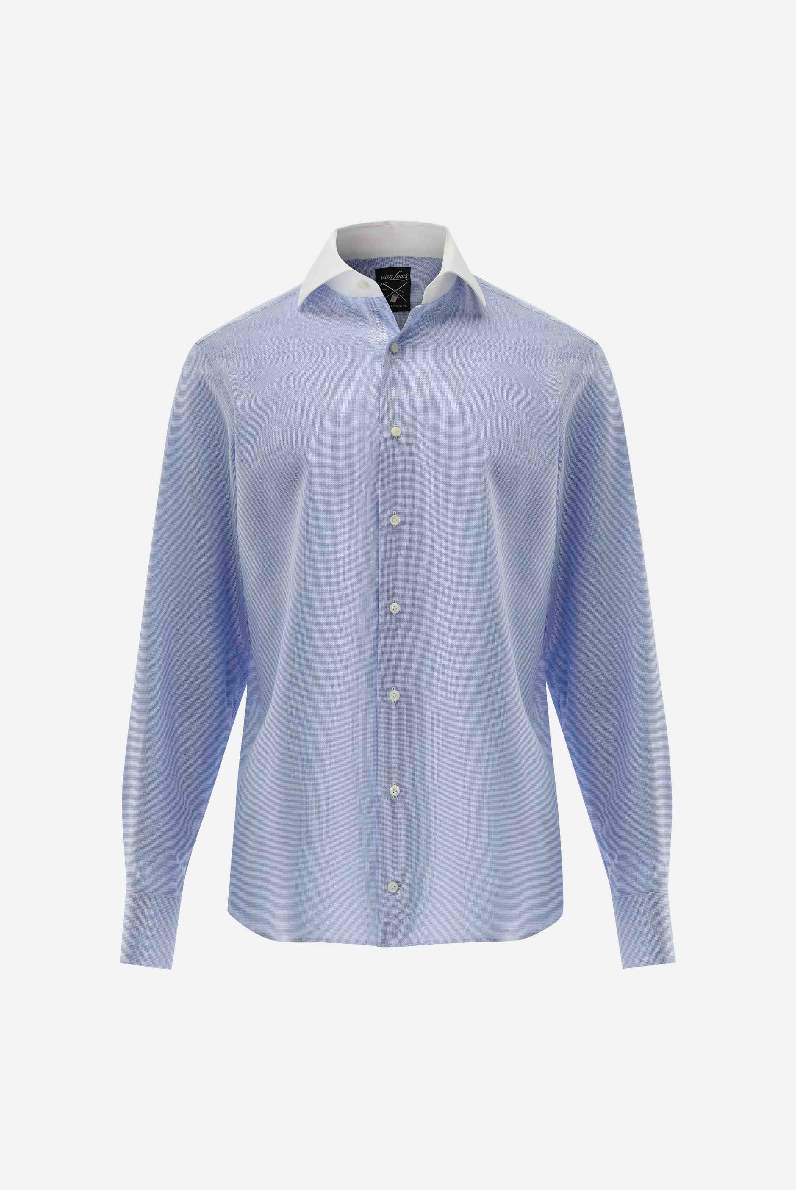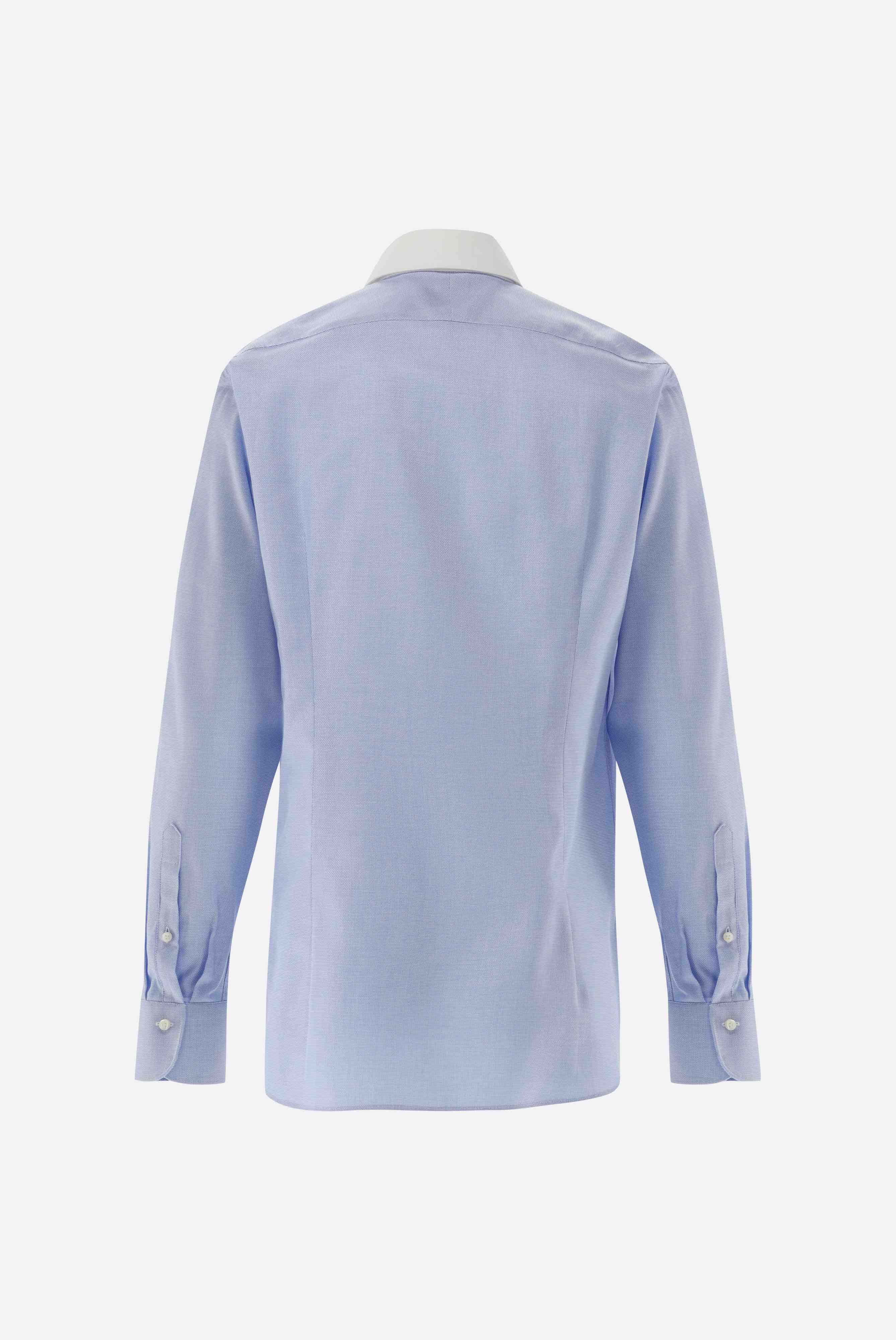 Dieses Dobby Hemd aus hochwertigem Gewebe bietet einen weißen Kragen als eleganten Kontrast. Der klassische Schnitt sorgt für eine gute Passform und das Hemd eignet sich sowohl für formelle Anlässe als auch für den Büroalltag. Die Sartoriale Verarbeitung zeichnet sich durch die abgerundete Meisterwerk Manschette mit einem Knopf, eine besondere geteilte Passe für erhöhten Tragekomfort, handstich Schulternähte und von Hand angenähte filigrane van Laack Beinecken aus. Es bietet hohen Tragekomfort und eine zeitlose Optik.