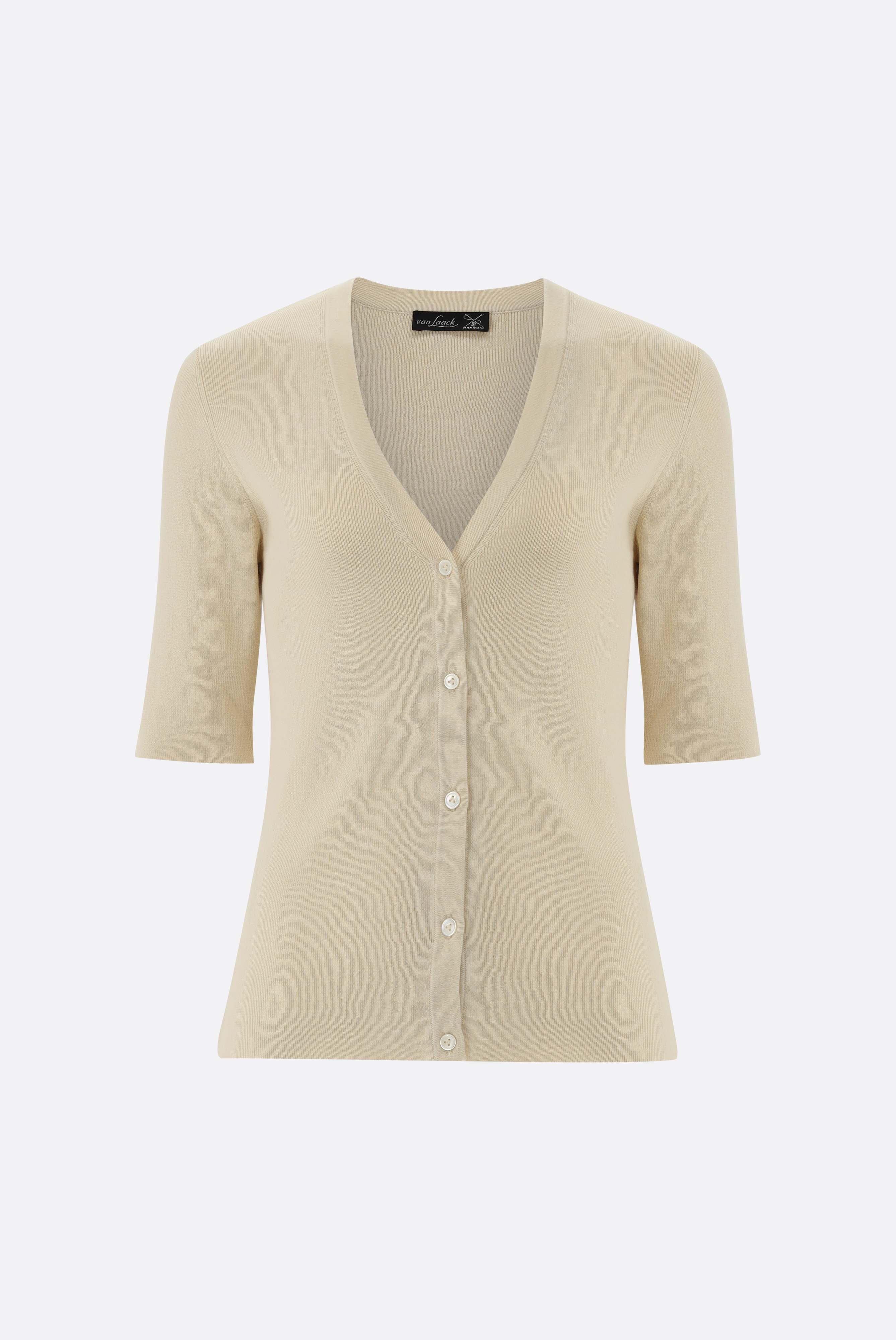 Der taillierte Cardigan aus Rippstrick wird aus Air Cotton gefertigt. Er bietet eine perfekte Passform und ist ideal für einen sommerlichen und sportiven Look. Dieser Cardigan ist vollständig gestrickt und sorgt für ein edles Tragegefühl. Er lässt sich ideal mit dem T-Shirt SALINIA, oder dem Top SARIA als Twinset kombinieren.