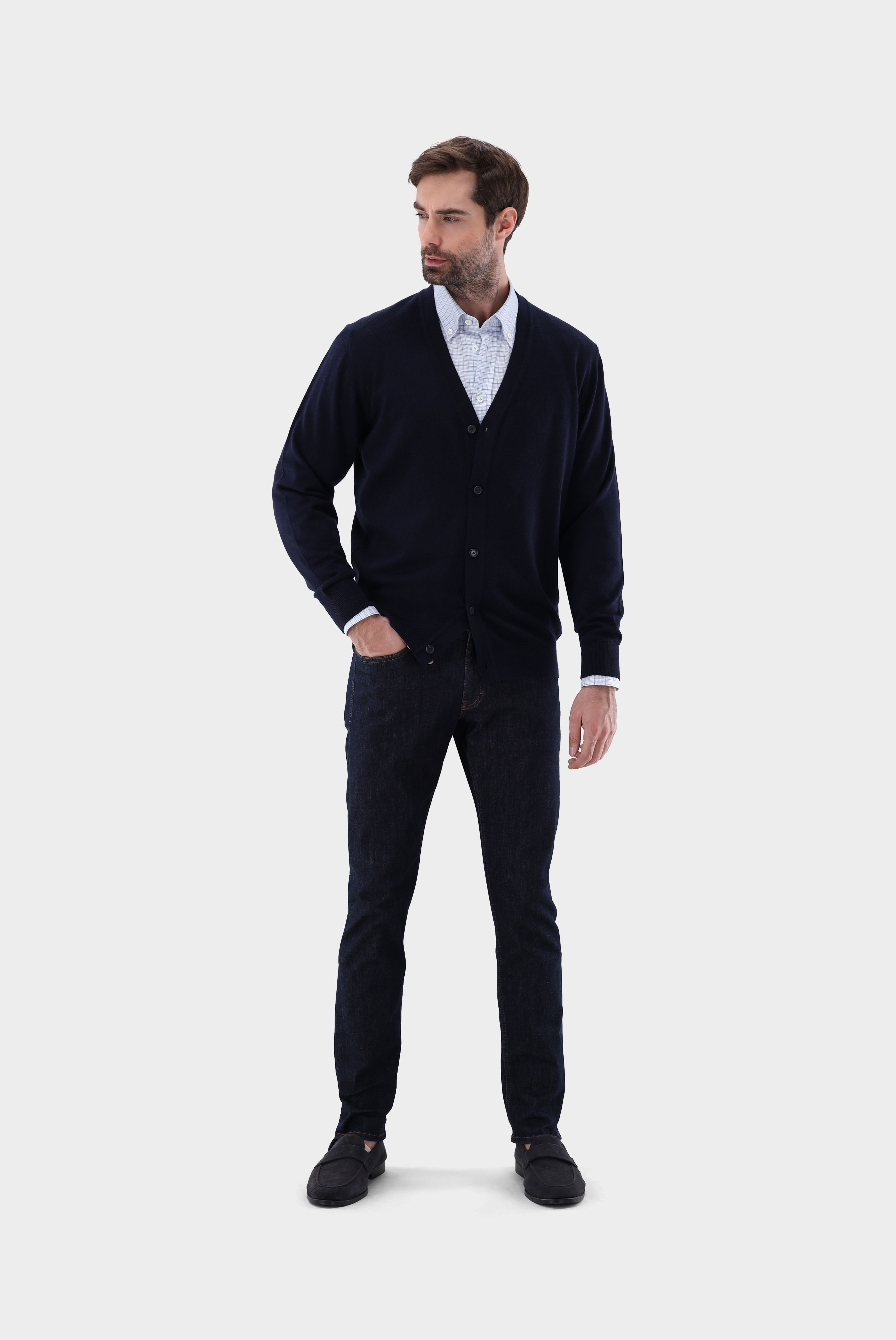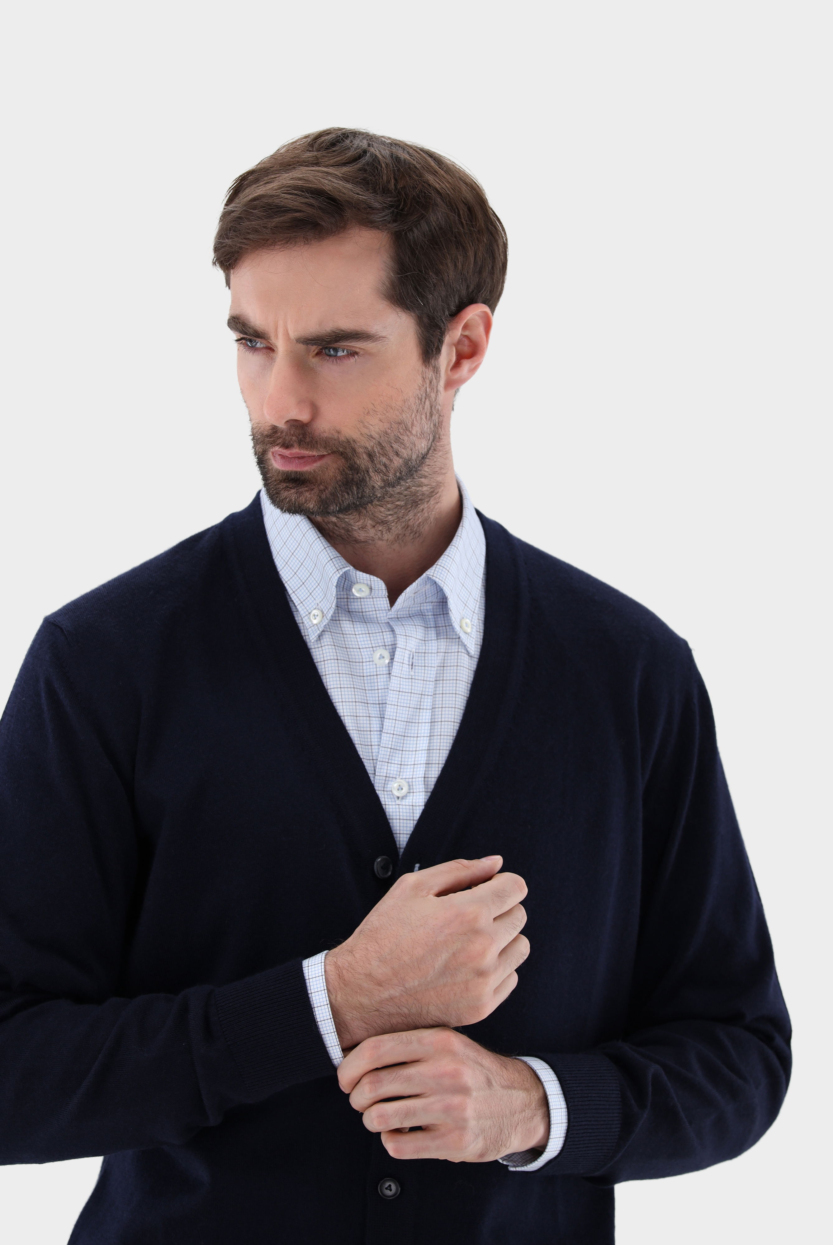 Der klassische Cardigan aus Schurwolle vereint Eleganz mit Komfort. Hergestellt aus hochwertiger Schurwolle bietet dieser Cardigan eine luxuriöse Weichheit und ein angenehmes Tragegefühl. Die klassische Knopfleiste und das zeitlose Design machen ihn vielseitig kombinierbar und passend für verschiedene Anlässe. Ein unverzichtbares Stück für jede Garderobe, das Stil und Wärme zugleich bietet.
