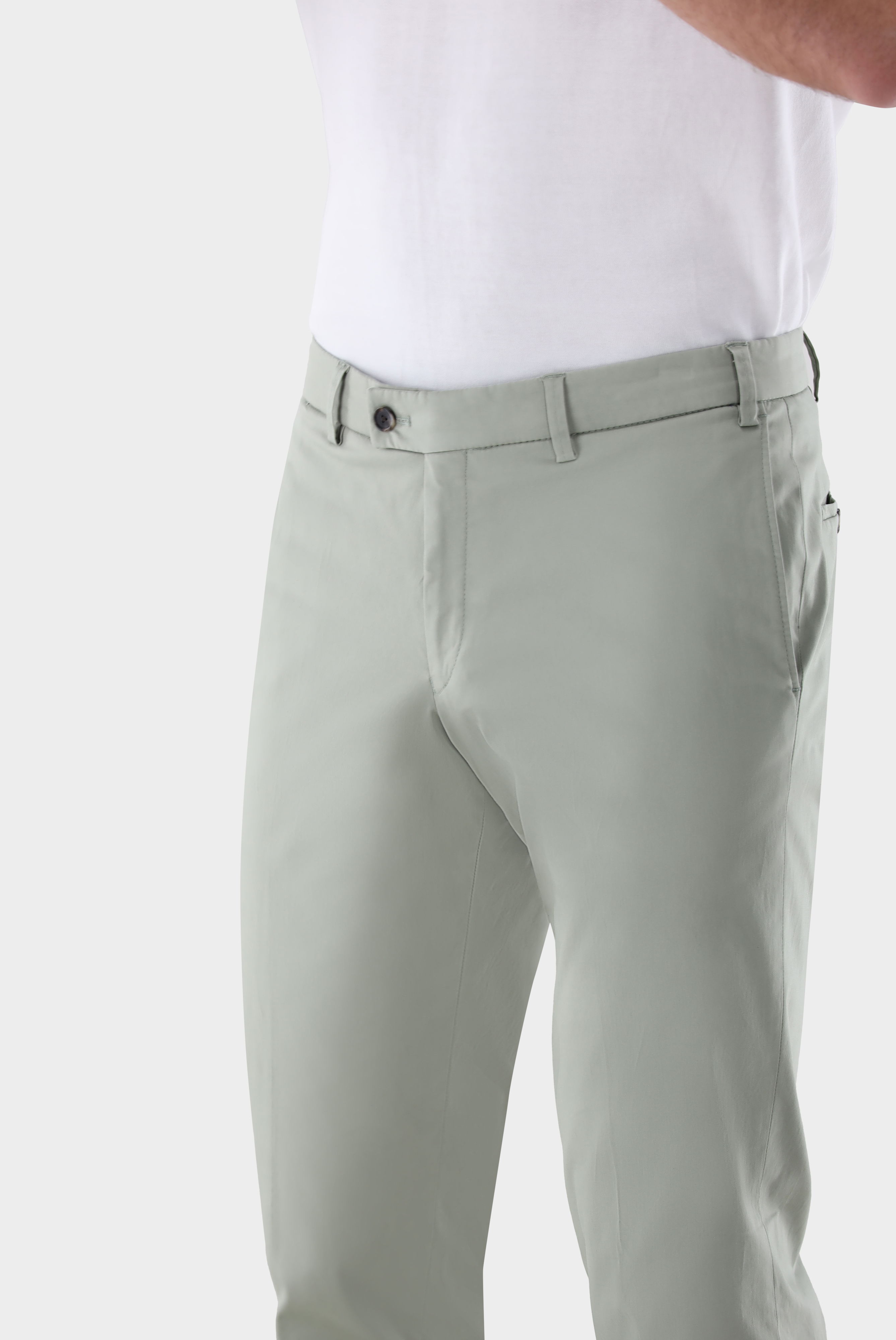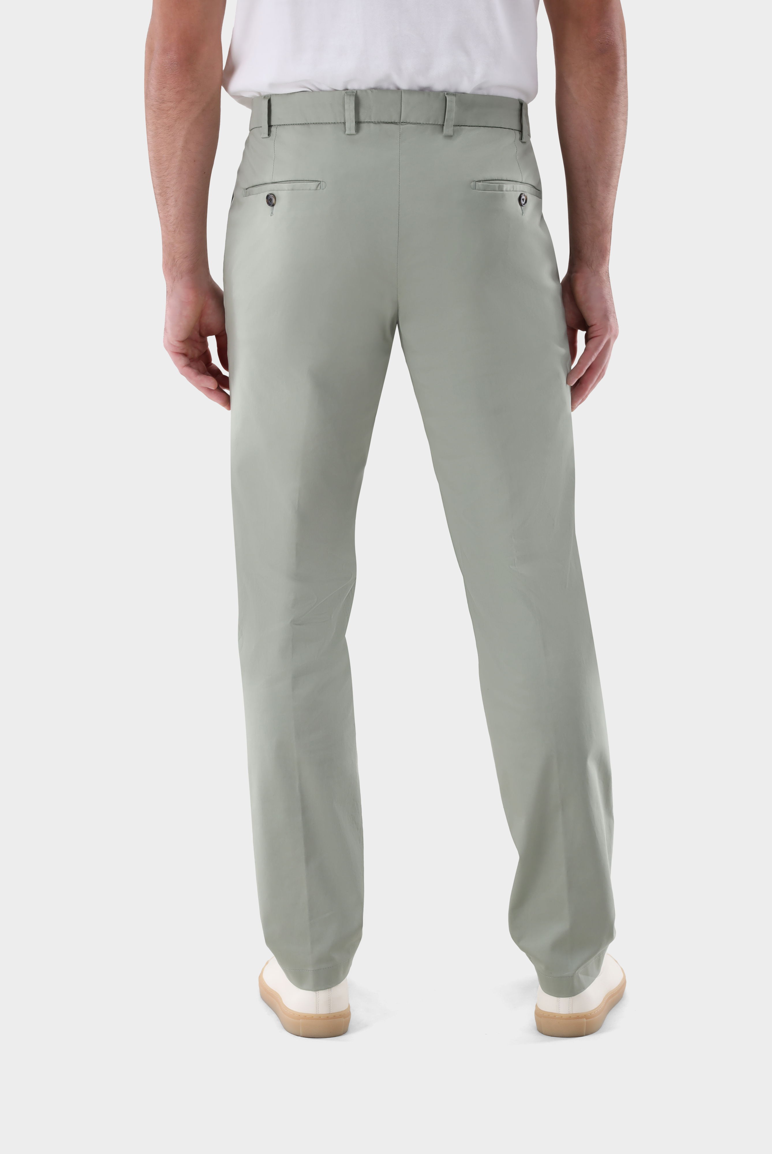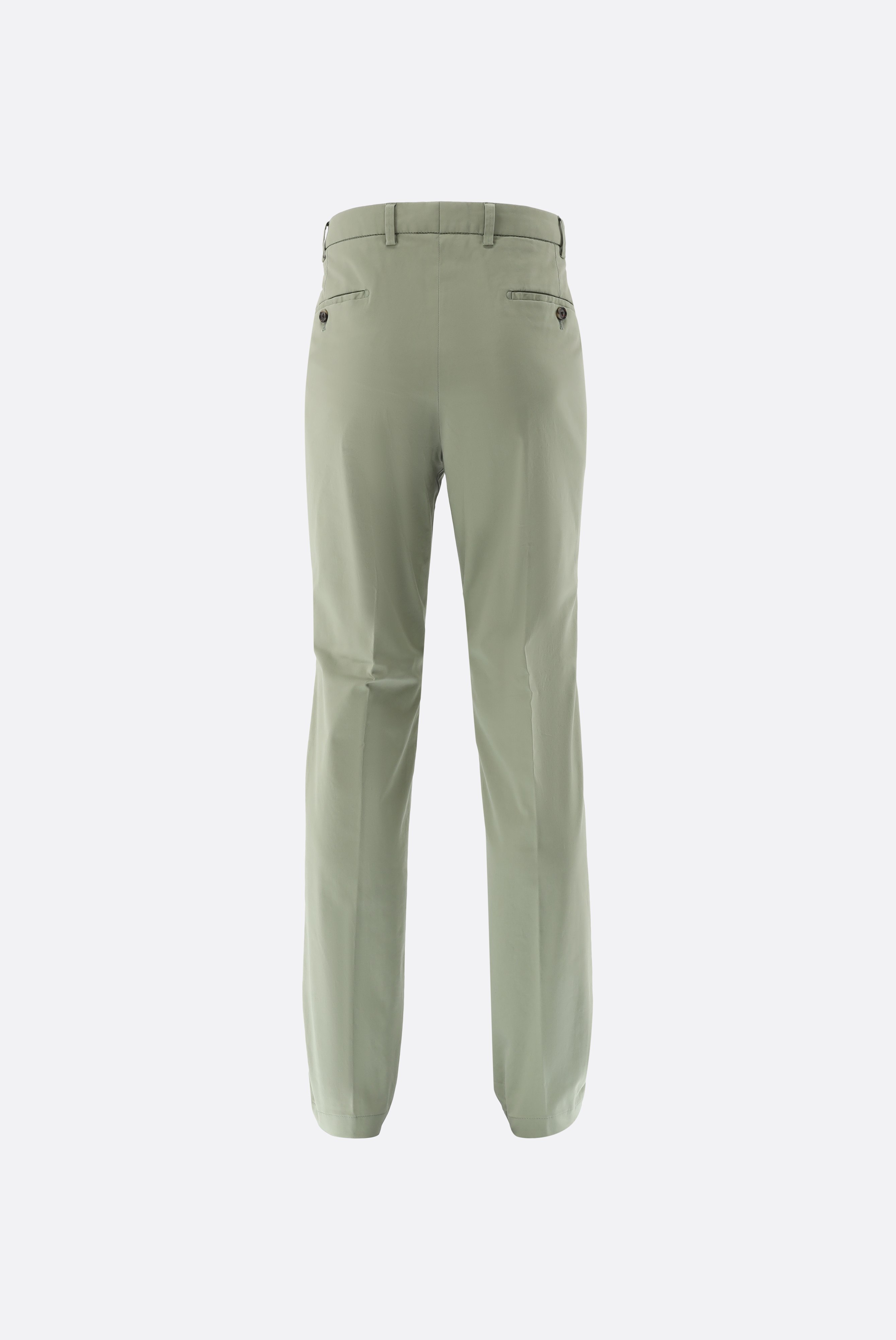Entdecken Sie unsere zeitlose Chinohose mit hochwertiger Bundverarbeitung und Bügelfalte. Diese Hose verfügt über eine klassische Hosenschlitzverarbeitung mit 3-Loch Knopfverschluss, schräge Eingriffstaschen und beidseitige Paspeltaschen mit Knopfverschluss in der Hinterhose.