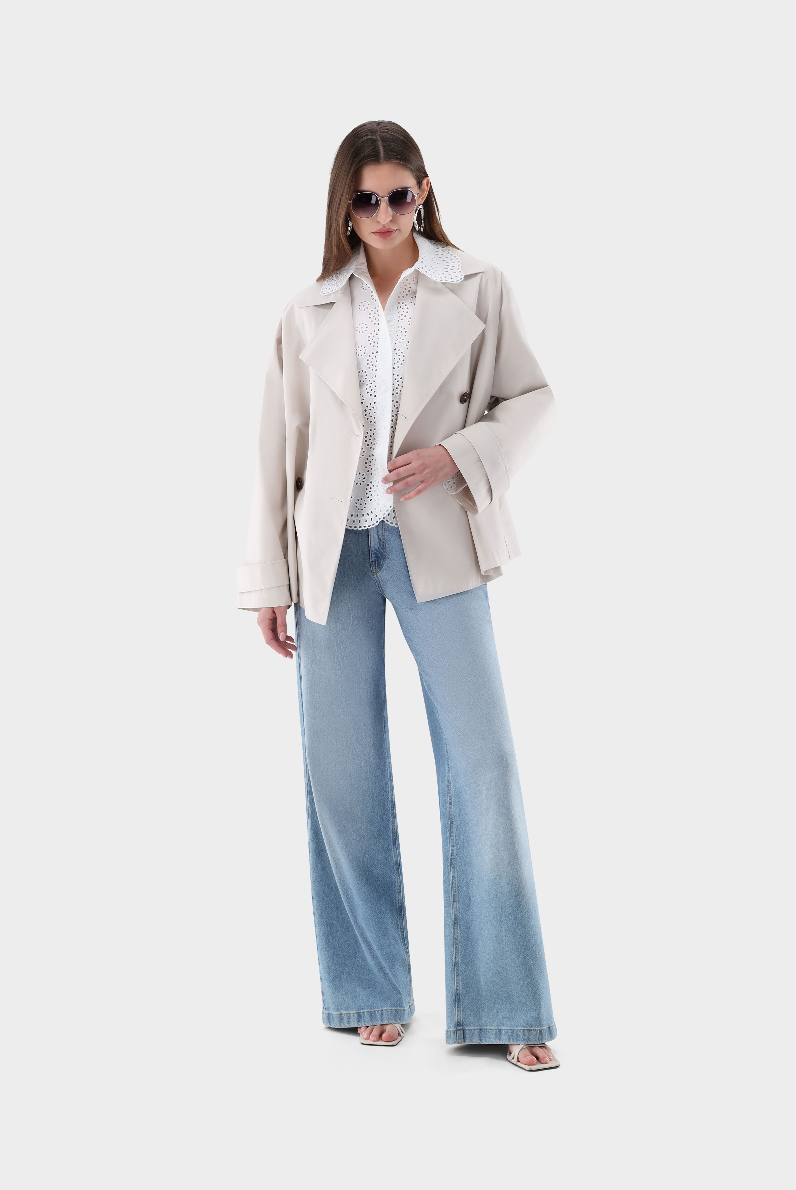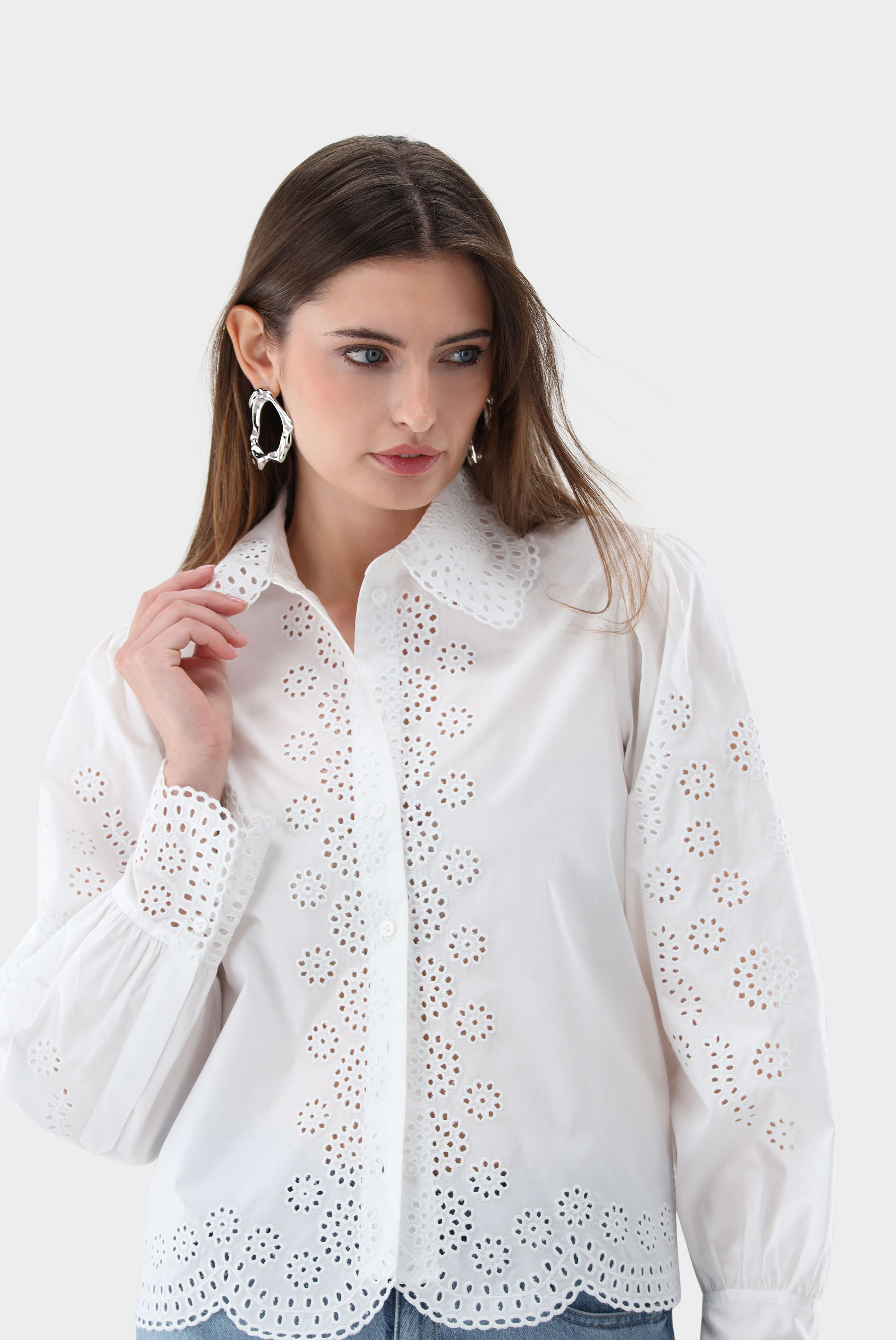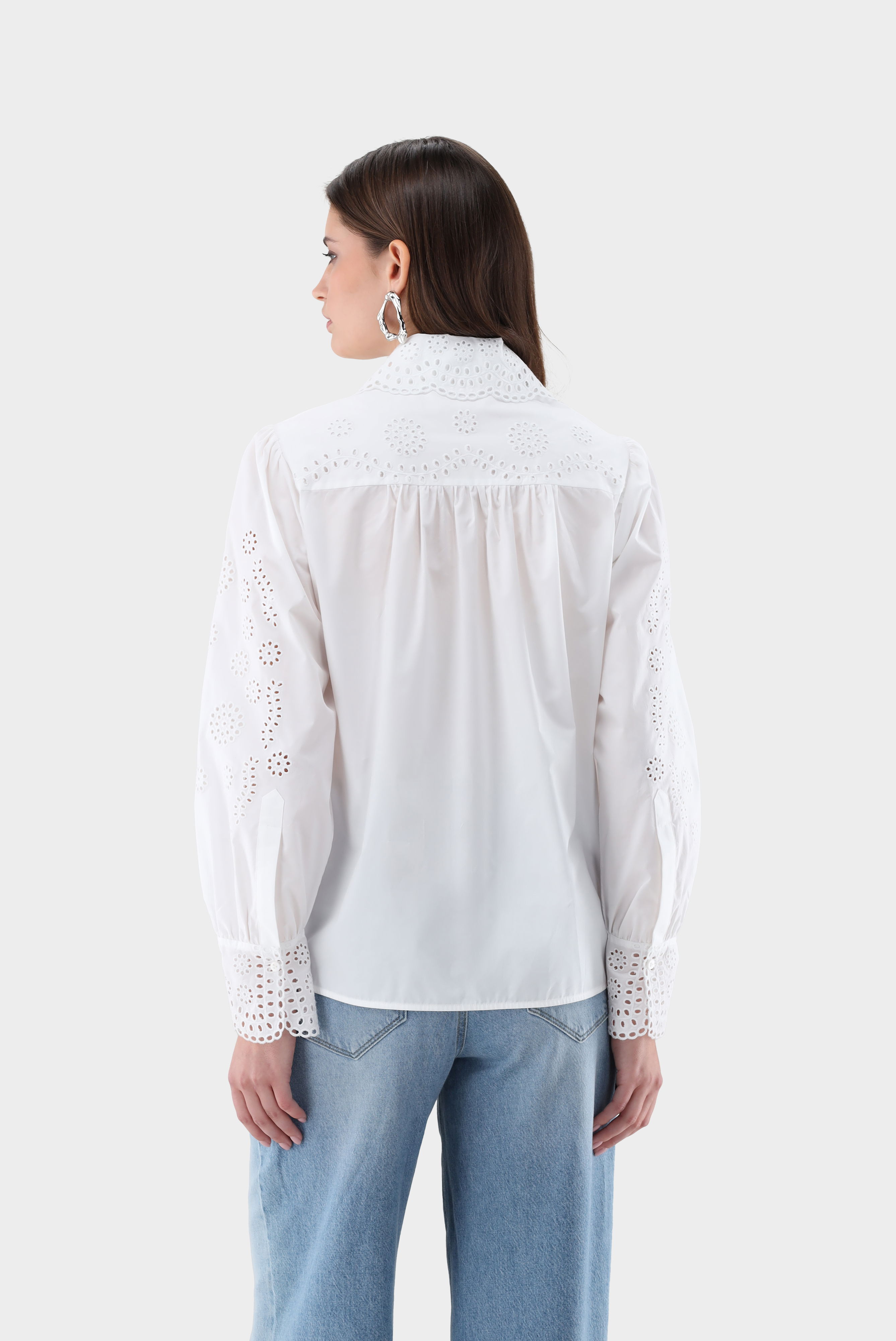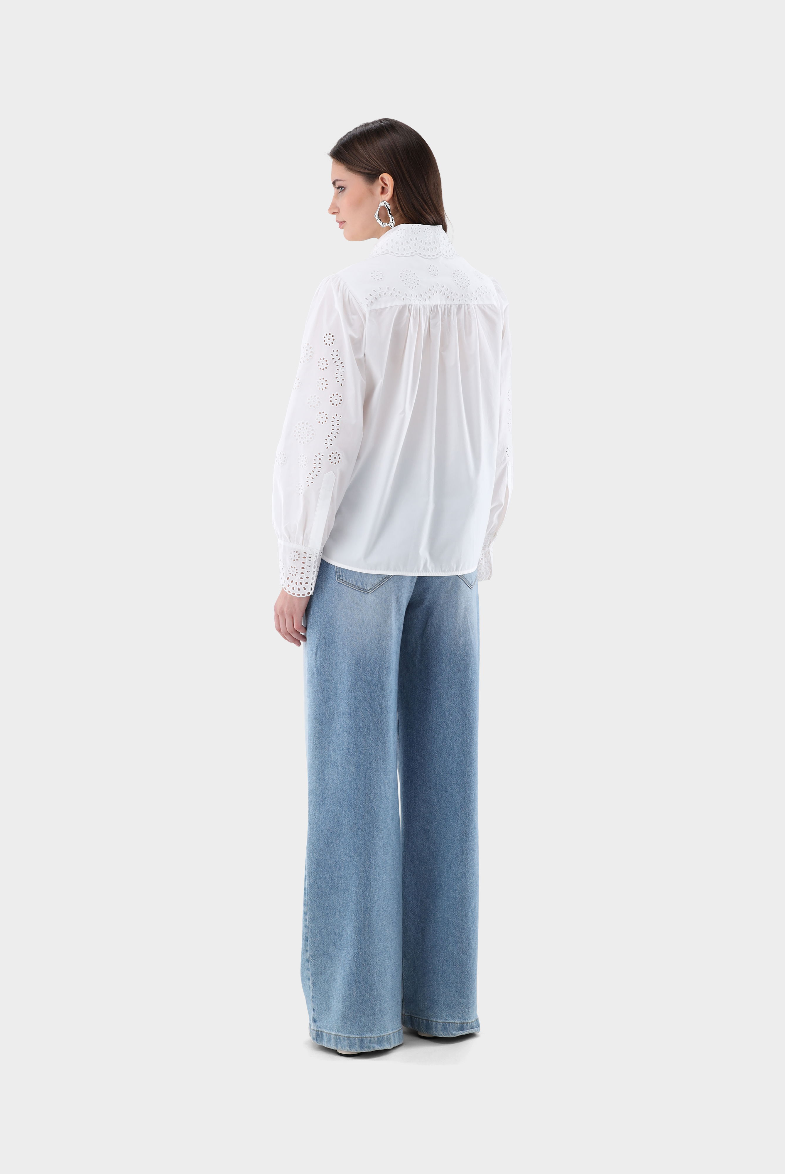 Look aus Cropped Hemdbluse mit Lochstickereien