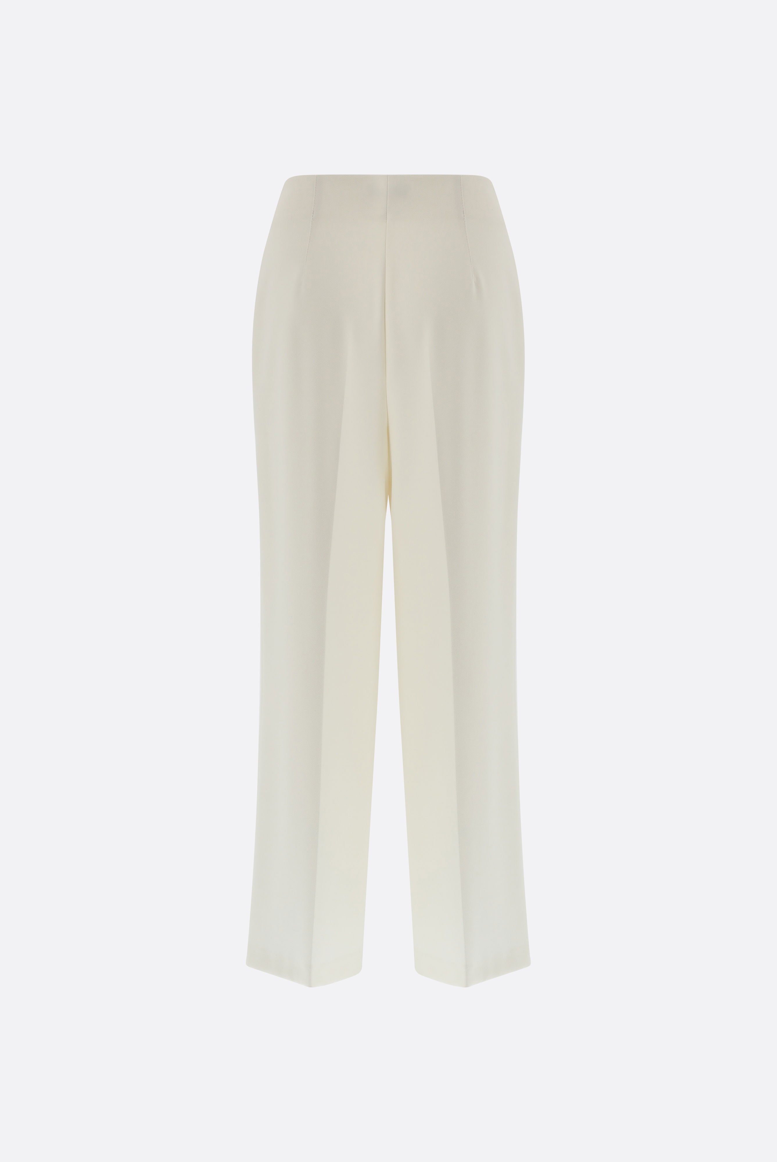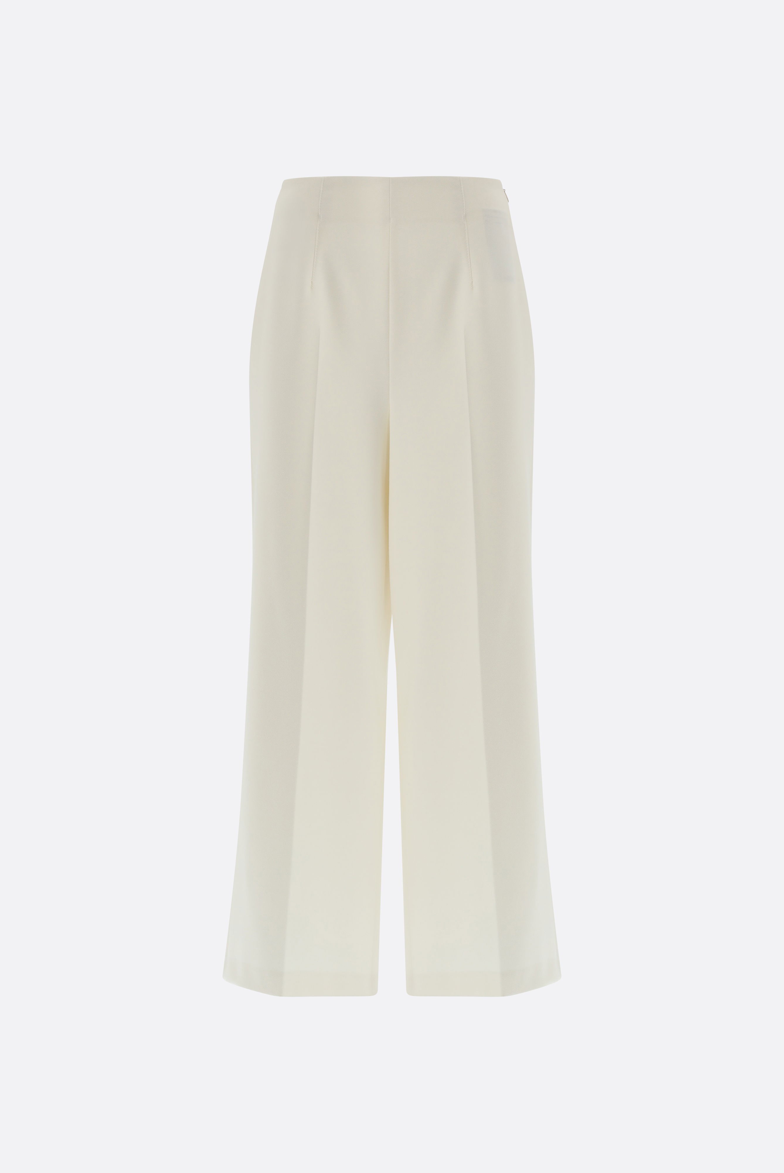 Die High-Waist Culotte Hose vereint klassische Eleganz mit modernem Stil. Die hohe Taille und der weit geschnittene Beinverlauf zaubern eine schmeichelhafte Silhouette. Der edle Stoff aus einer hochwertigen Polyester-Viskose-Mischung mit Stretch-Anteil bietet optimalen Komfort. Ob mit Bluse und Pumps fürs Büro oder Pullover und Sneakern für die Freizeit – die Culotte ist ein vielseitiges Must-have.