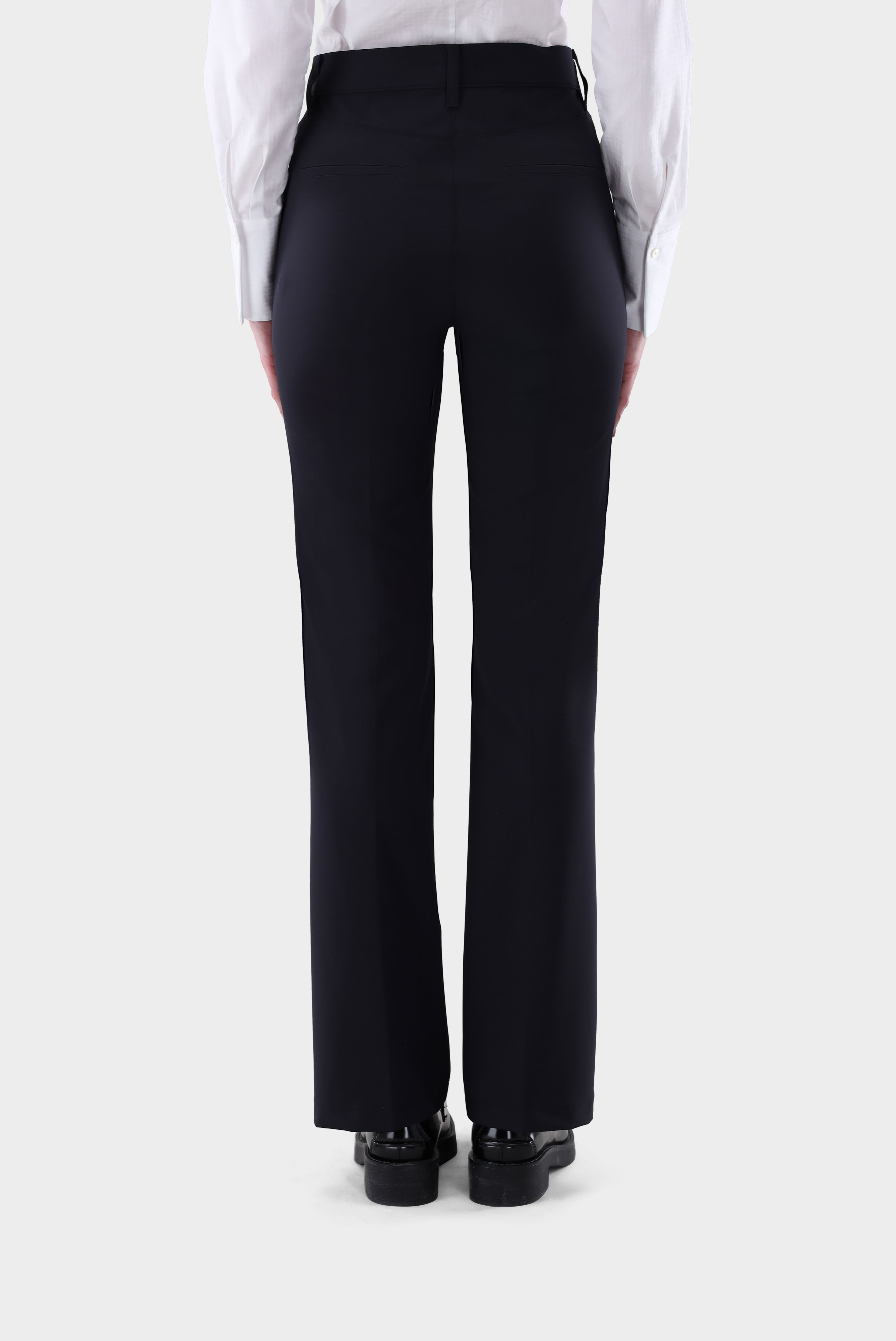 Die mittelhohe, leicht ausgestellte Hose überzeugt mit einer eleganten Bügelfalte und feiner Steppnaht. Vordere Swingtaschen und rückseitige, breite Leistentaschen bieten praktischen Stauraum und ein klares Design. Dank der Gürtelschlaufen lässt sich die Hose vielseitig kombinieren. Das unifarbene Polyamid-Stretch-Material sorgt für hohen Tragekomfort und optimale Bewegungsfreiheit. Diese Hose ist die ideale Wahl für stilvolle Business- und Freizeitlooks.