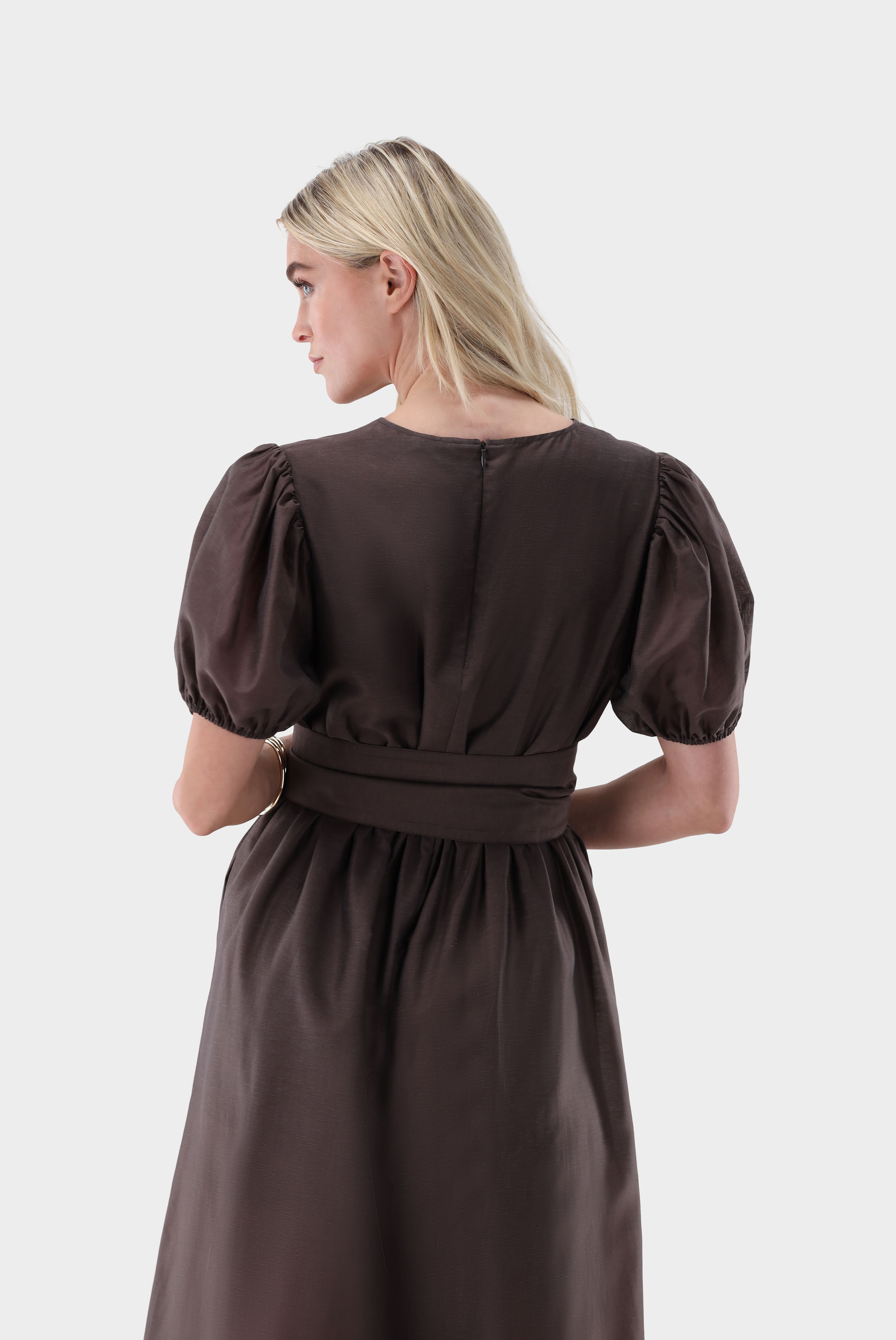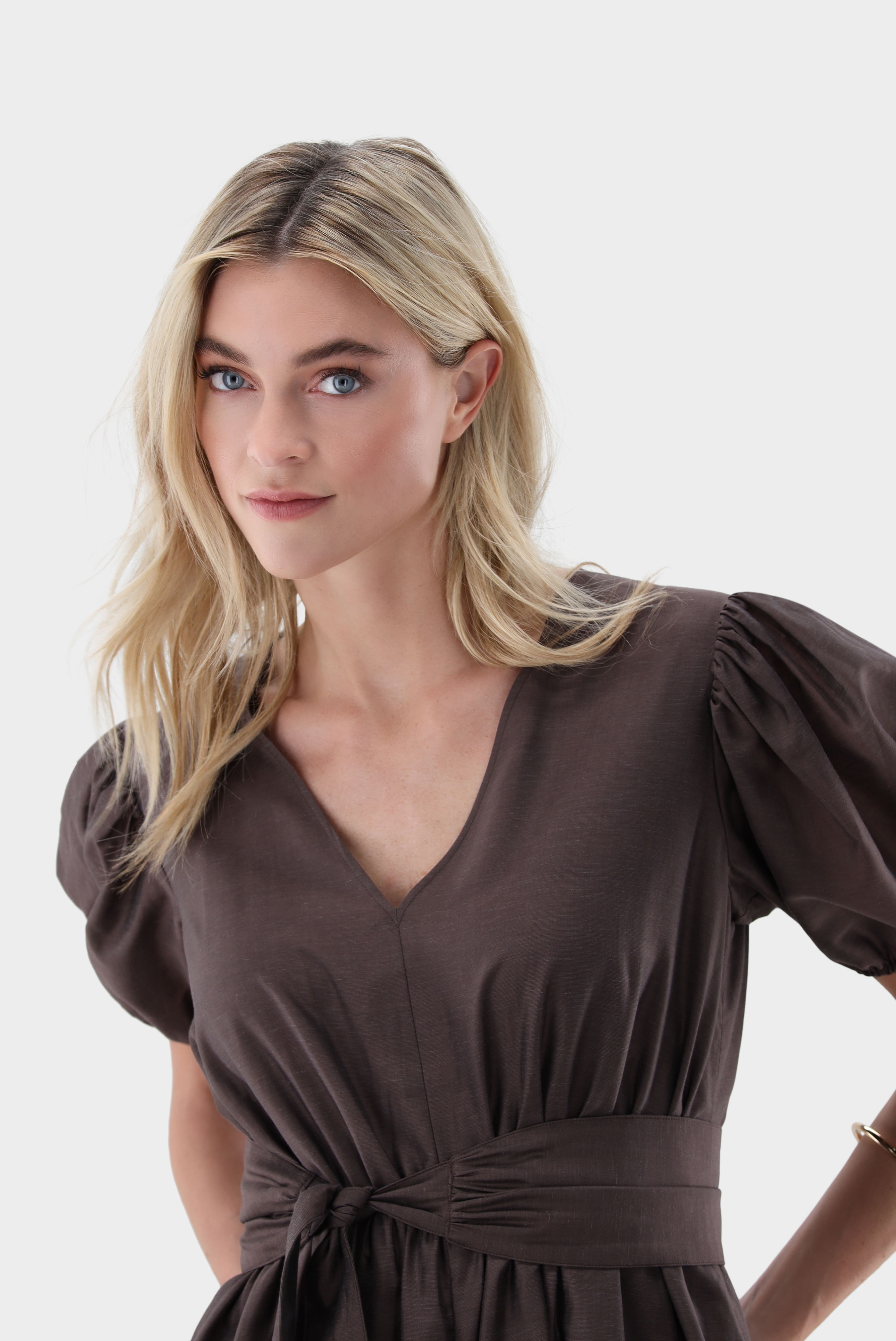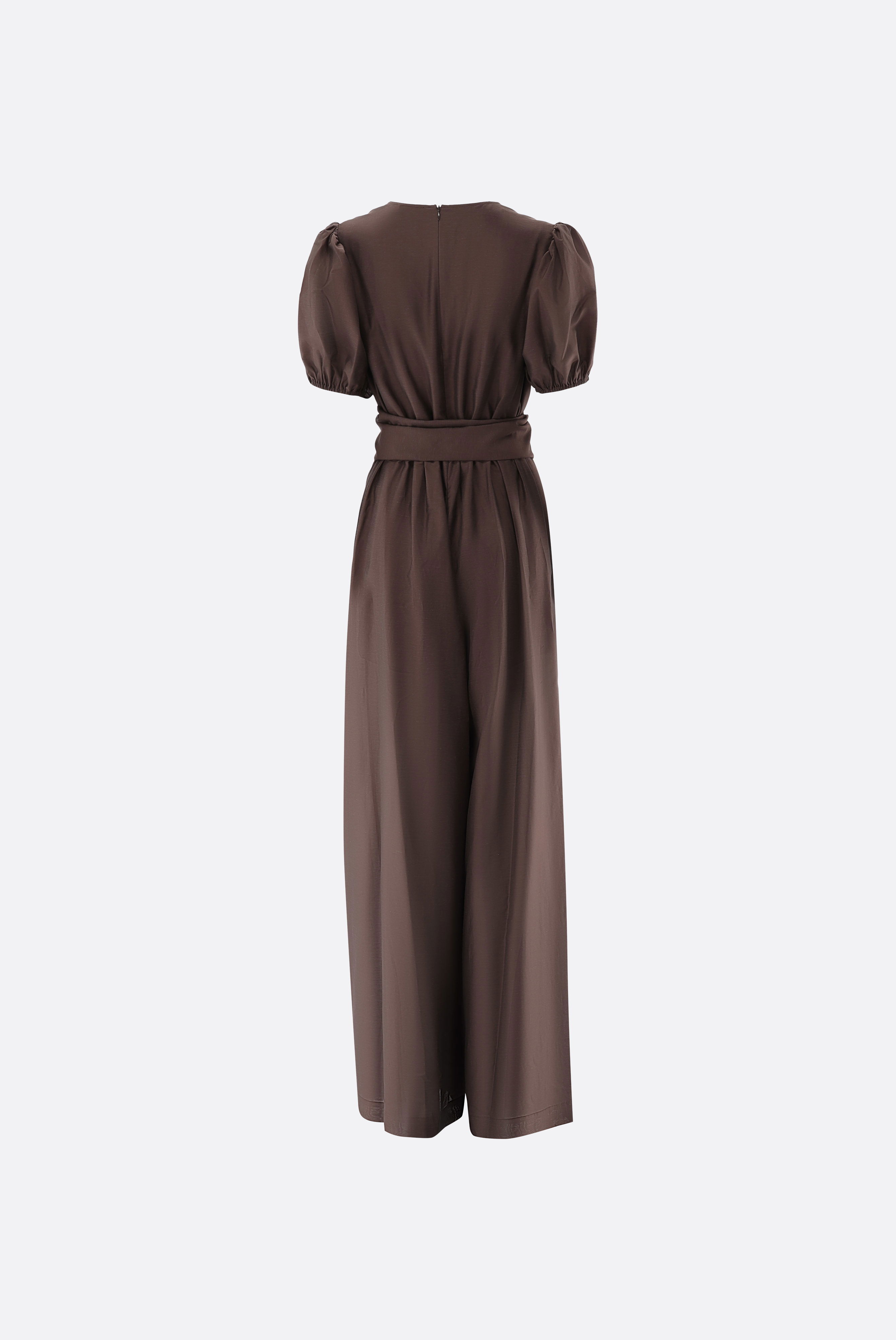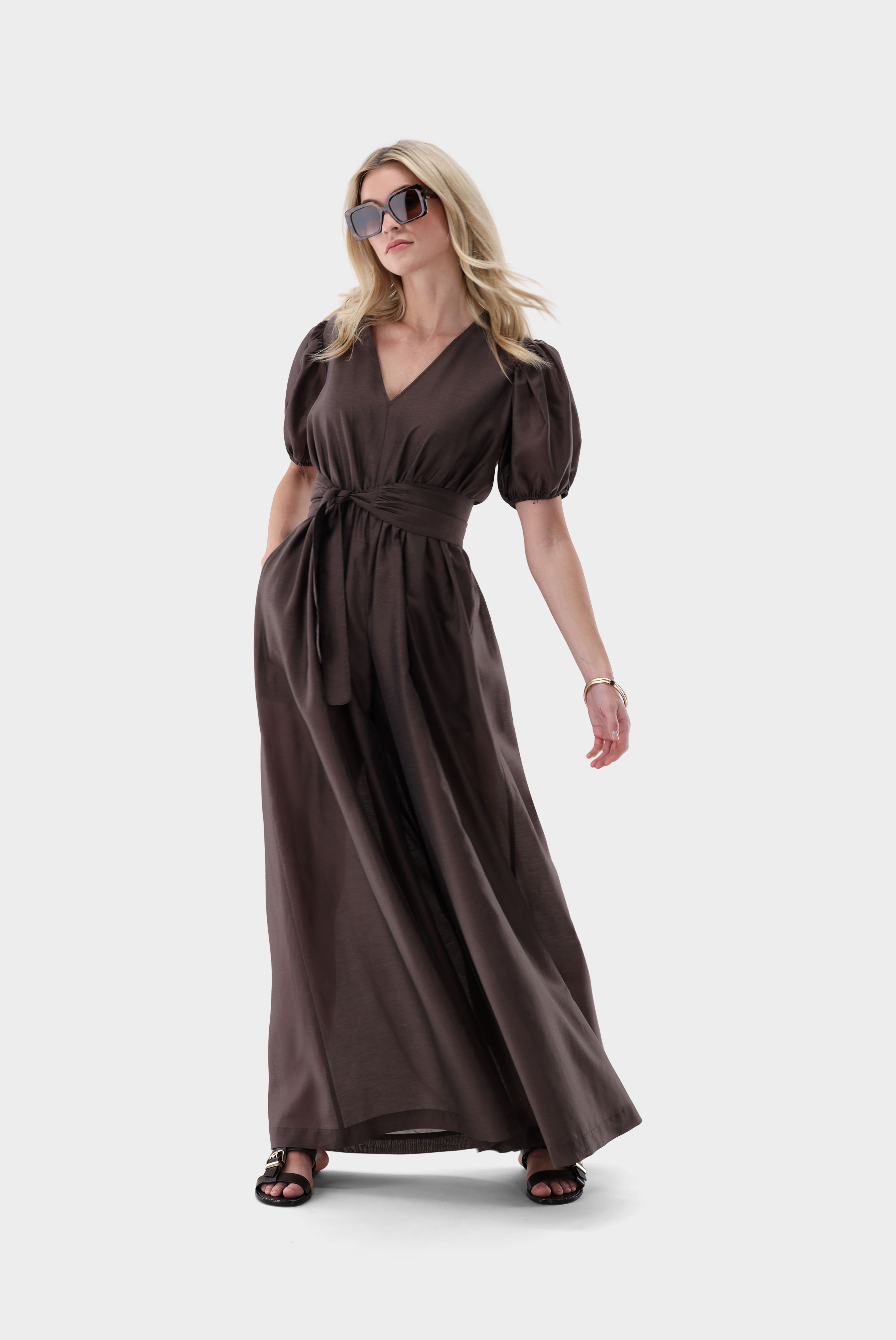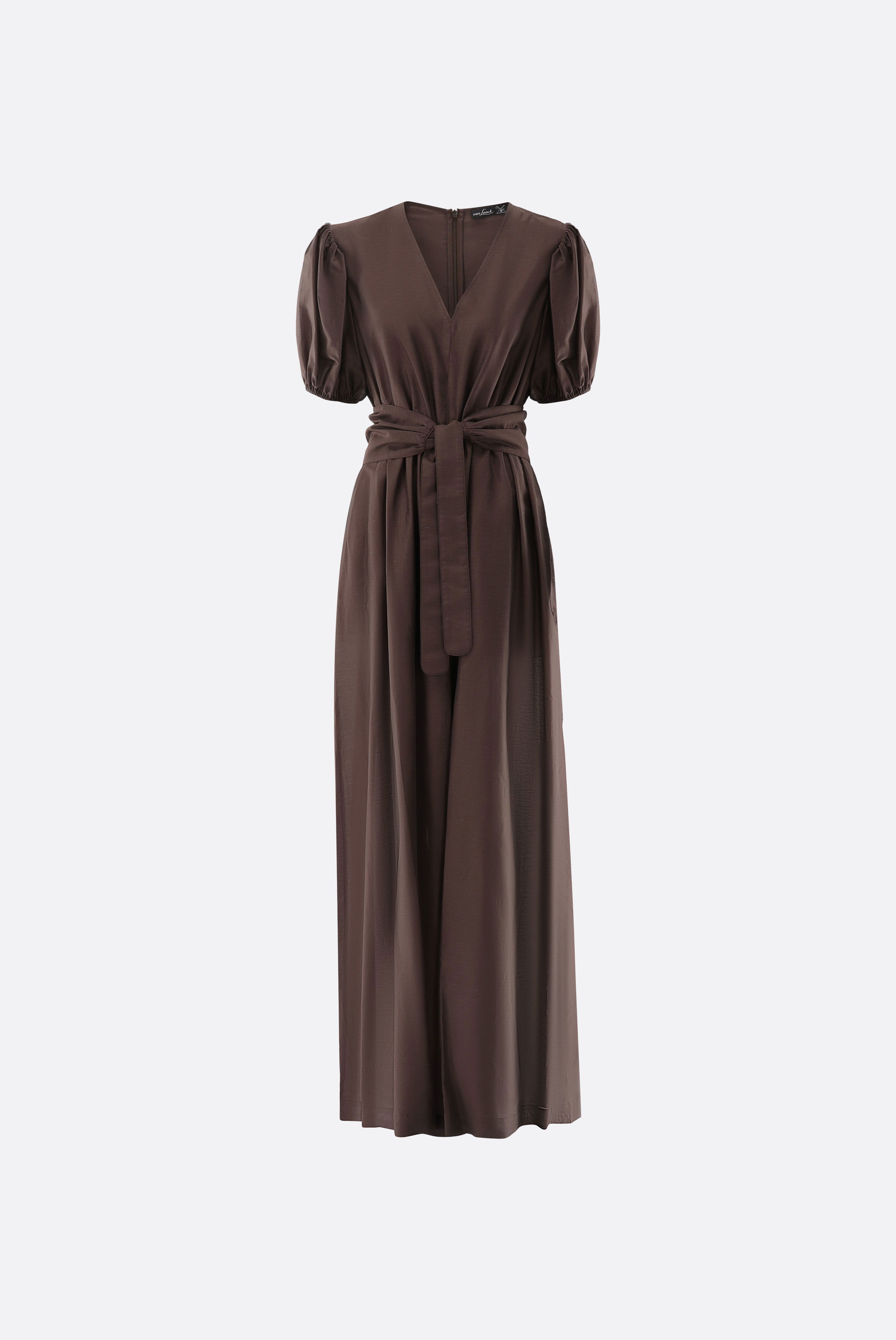 Dieser elegante Jumpsuit überzeugt durch eine moderne, feminine Silhouette und hochwertige Verarbeitung. Kurze Puffärmel mit elastischen Bündchen, ein formgebender Taillengürtel und lange, ausgestellte Beine schaffen eine harmonische Linienführung. Der V-Ausschnitt, praktische Seitentaschen und ein rückseitiger Reißverschluss ergänzen das Design funktional. Das gefütterte Leinen-Tencel-Nylon-Gemisch bietet angenehmen Tragekomfort und edlen Fall – ideal für festliche Anlässe und stilvolle Abendlooks.