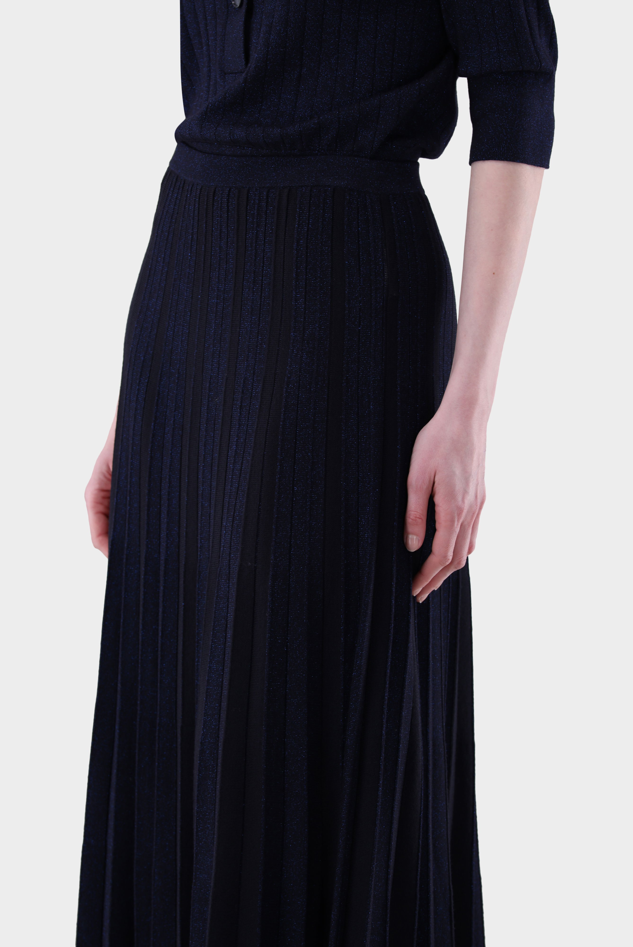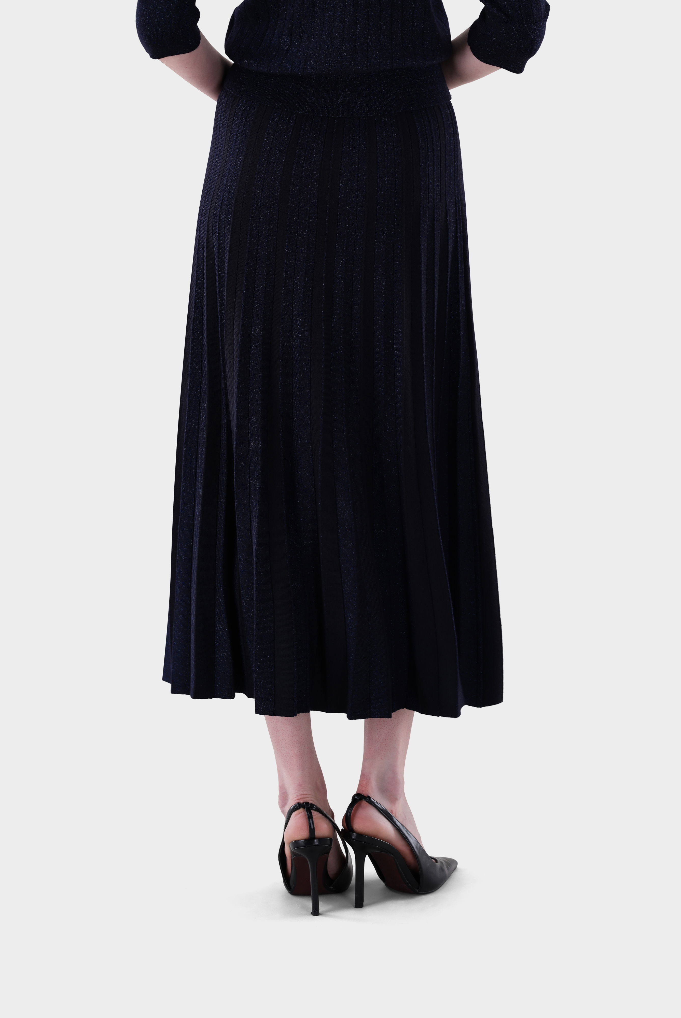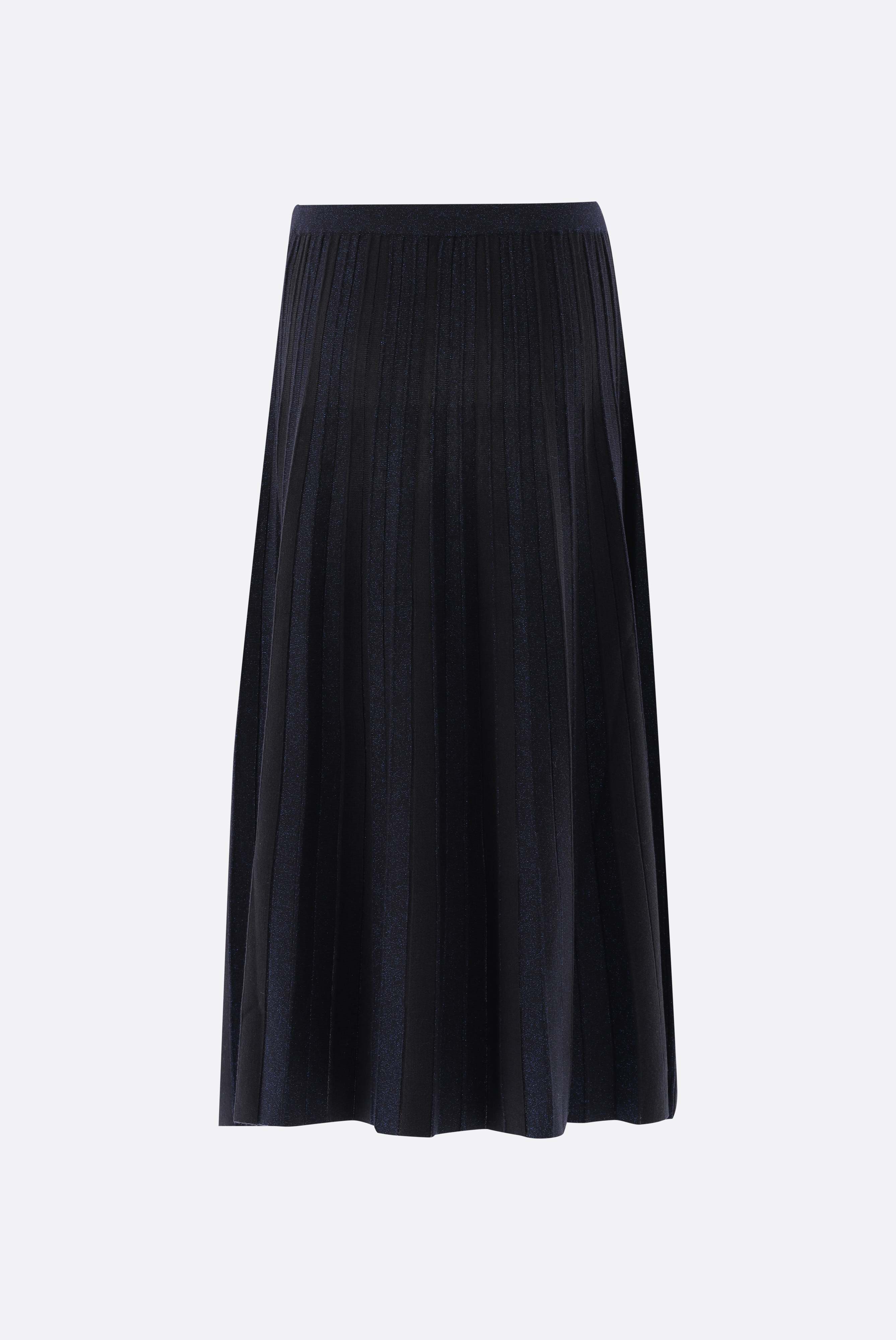 Dieser Plisseerock in Midilänge besticht durch seinen zweifarbigen Effekt und eine edle Optik. Gefertigt aus ultrafeinem Merino-Lamé-Mix-Strick überzeugt er mit luxuriöser Haptik und fließendem Fall. Die feine Plissierung betont die feminine Silhouette und sorgt für eine elegante Bewegungsdynamik. Dank der hochwertigen Materialkombination vereint der Rock Komfort mit stilvollem Glanz – ideal für anspruchsvolle Outfits, die sowohl im Alltag als auch zu besonderen Anlässen Wirkung zeigen.