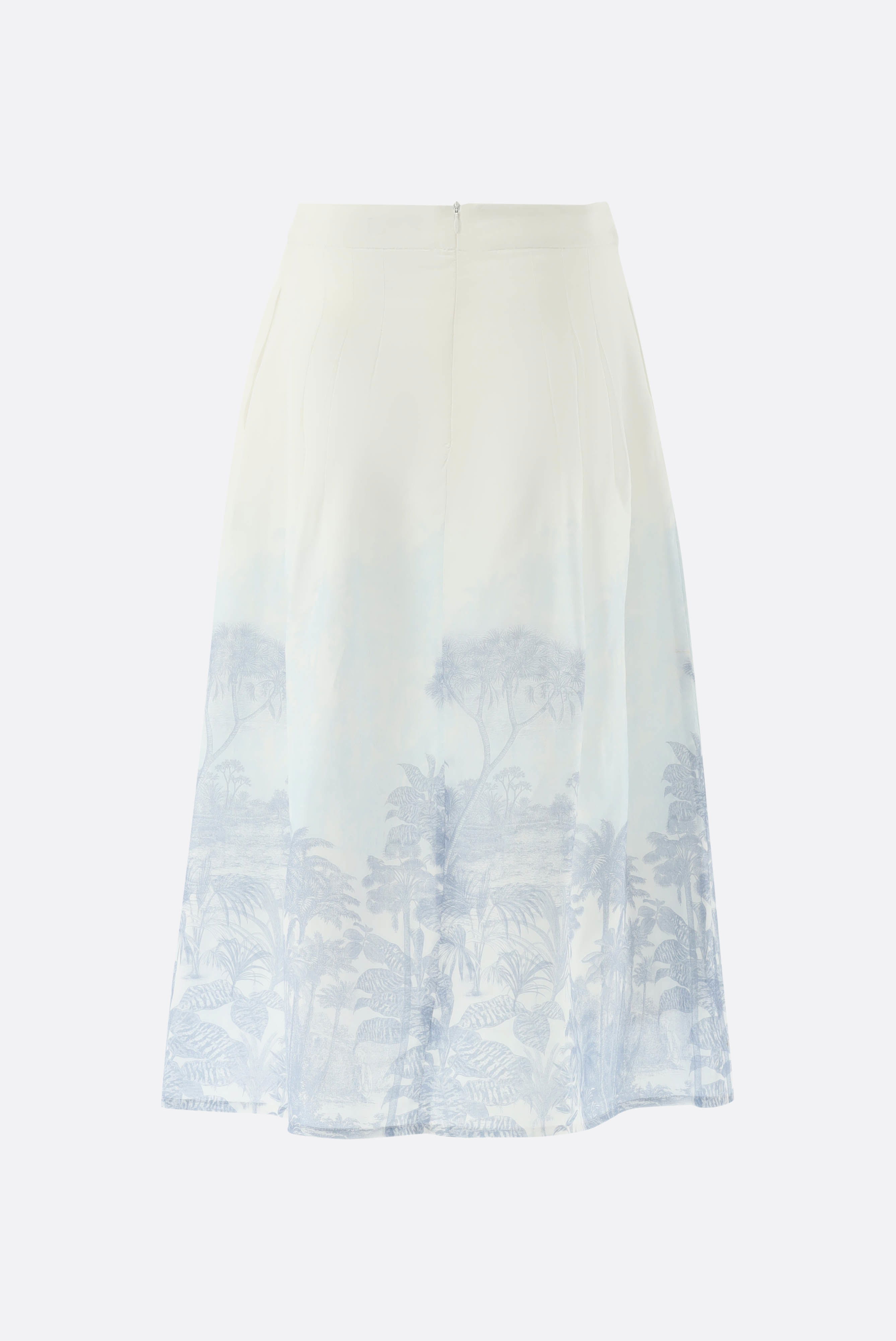 Dieser knielange, ausgestellte Rock überzeugt durch eine feminine Silhouette mit Plisseefalten an der Taille. Praktische Seitentaschen und ein Reißverschluss im Rücken sorgen für Funktionalität und sicheren Sitz. Das Modell ist gefüttert für angenehmen Tragekomfort und optimale Formstabilität. Das tropische Forest-Allover-Printdesign setzt modische Akzente und verleiht dem Rock eine sommerliche, frische Ausstrahlung. Ideal für elegante Casual- und stilvolle Freizeit-Looks.