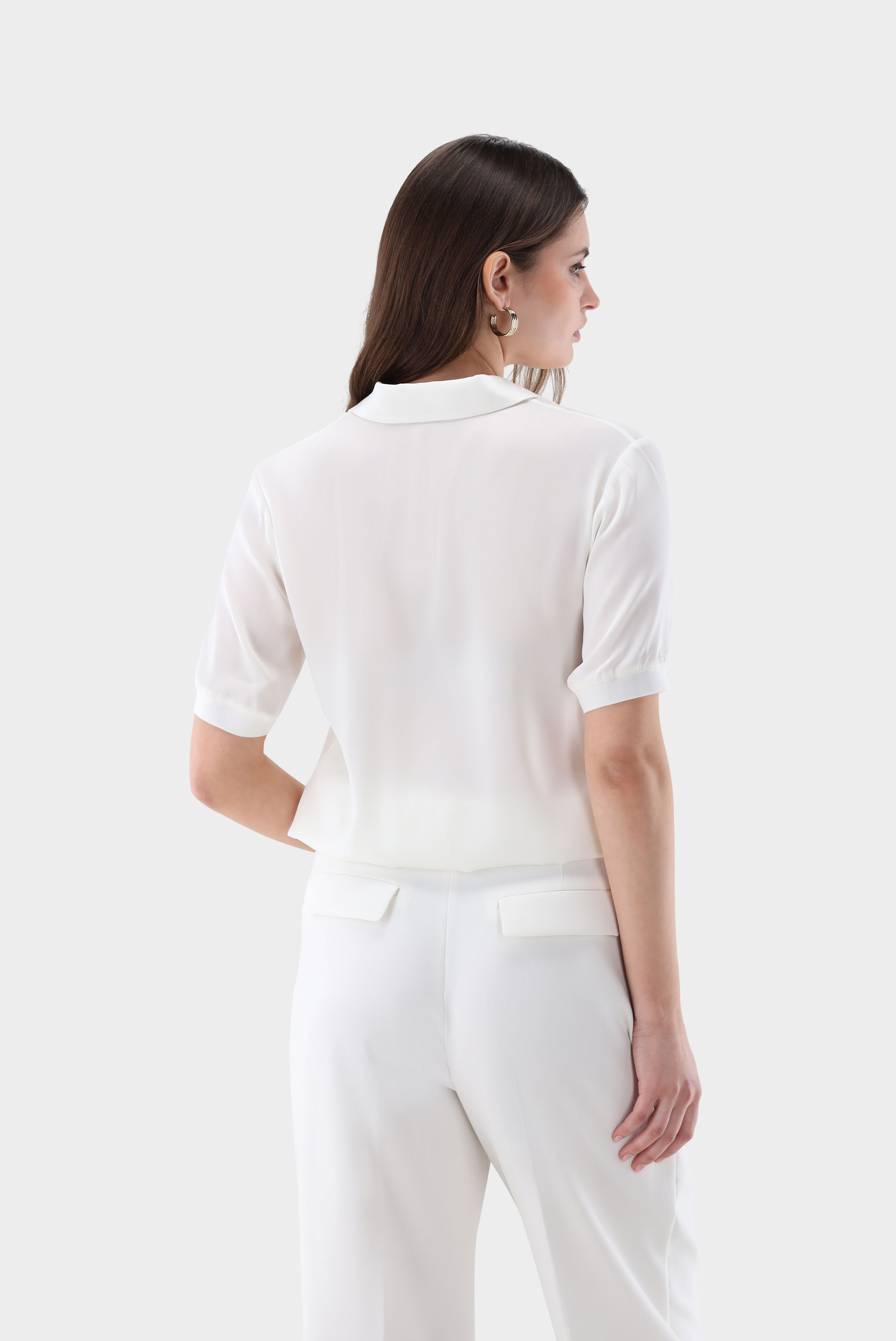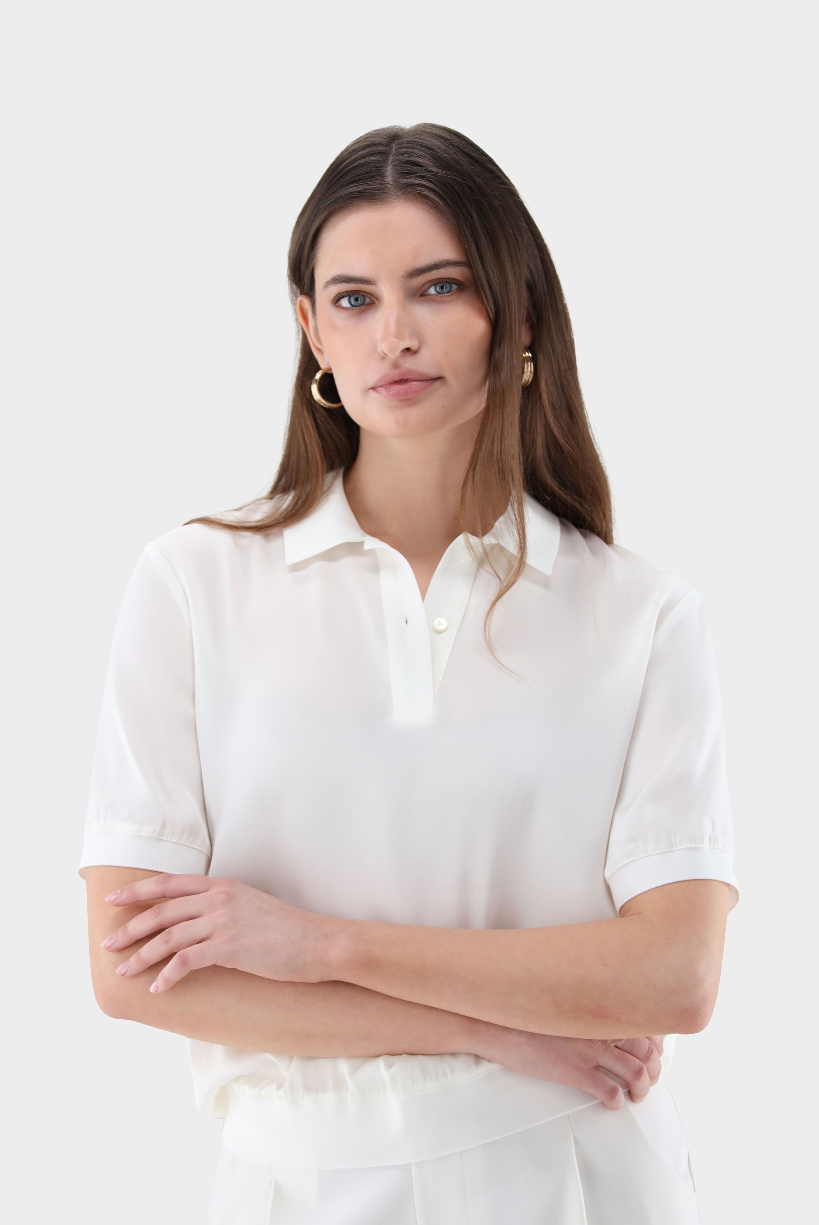 Look aus Poloshirt aus Seidensatin