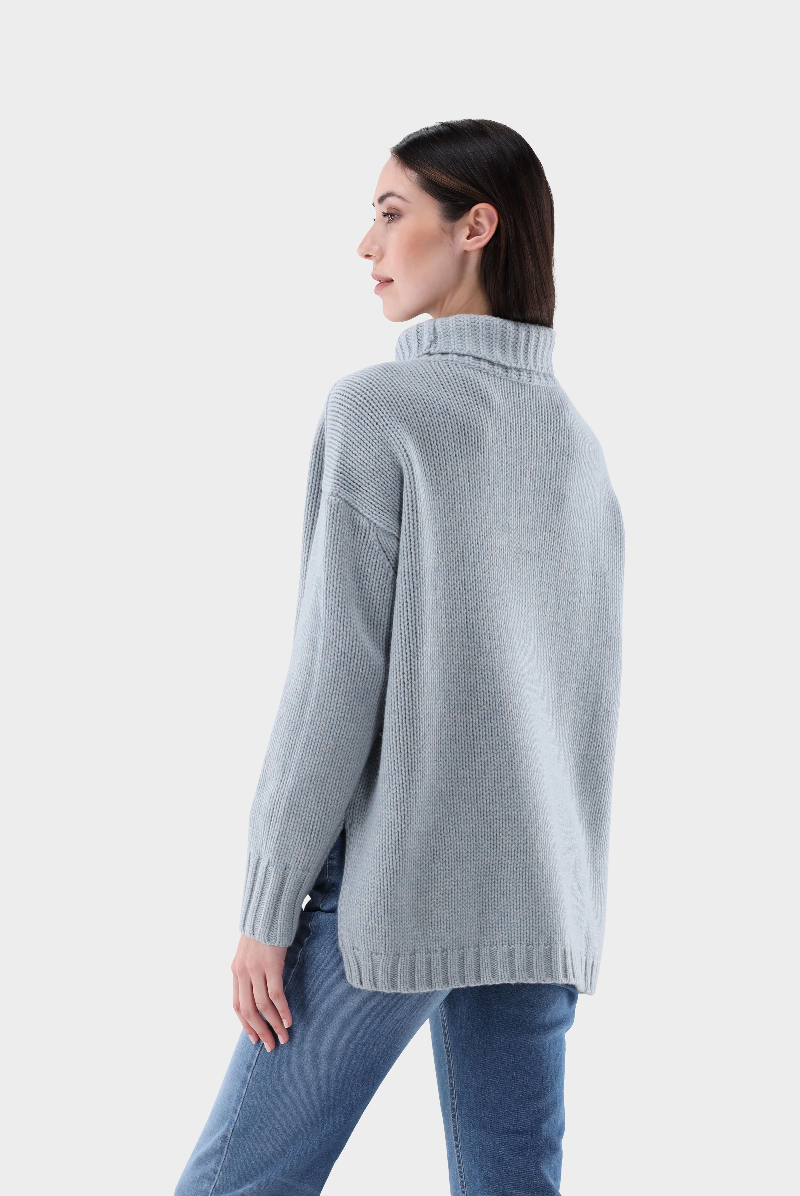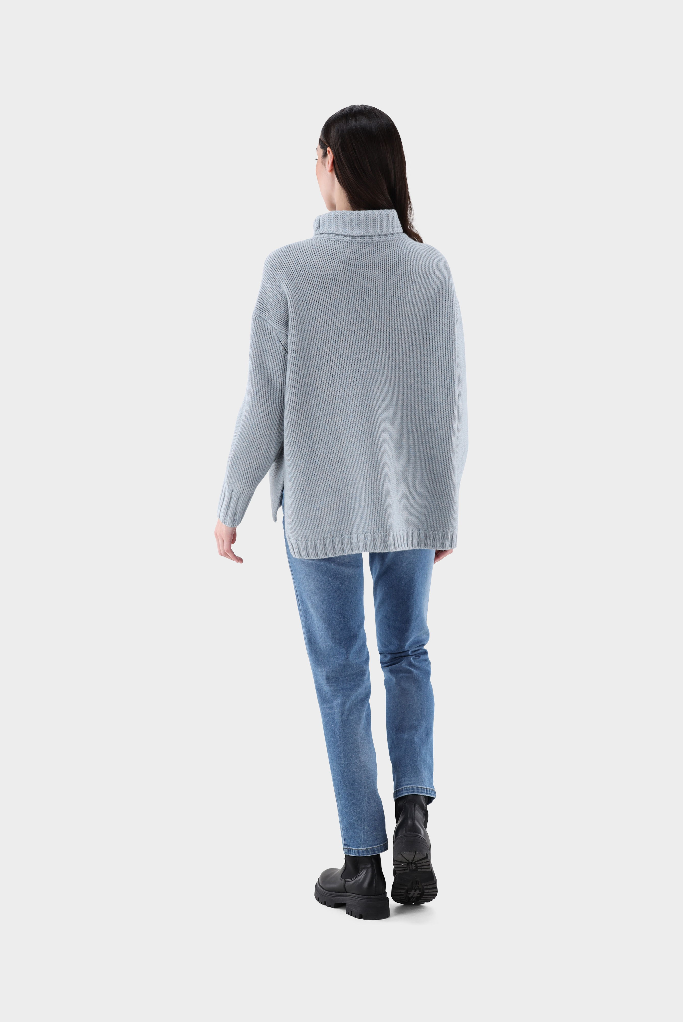 Der Oversized Rollkragenpullover aus einem superweichen Mischgewebe mit Kaschmir verleiht mit seinem lässigen Rollkragen und den langen Schlitzen an den Seiten Ihrem Look eine moderne und stilvolle Note. Der Pullover schmiegt sich sanft an Ihre Haut und bietet optimalen Komfort für kühlere Tage. Der Rollkragenpullover verfügt über einen Oversized Schnitt, der locker und bequem fällt. Die langen Schlitze an den Seiten verleihen dem Pullover eine interessante und feminine Note, während der Turtleneck-Kragen Ihren Hals wohlig warm hält. Ob zu Jeans, Leggings oder einem Rock, dieser Oversized Rollkragenpullover ist ein vielseitiges Kleidungsstück, das Sie sowohl in Ihrer Freizeit als auch bei besonderen Anlässen begleiten wird.