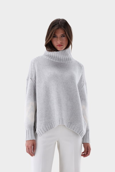 Rollkragenpullover oversized mit Muster an Ärmeln