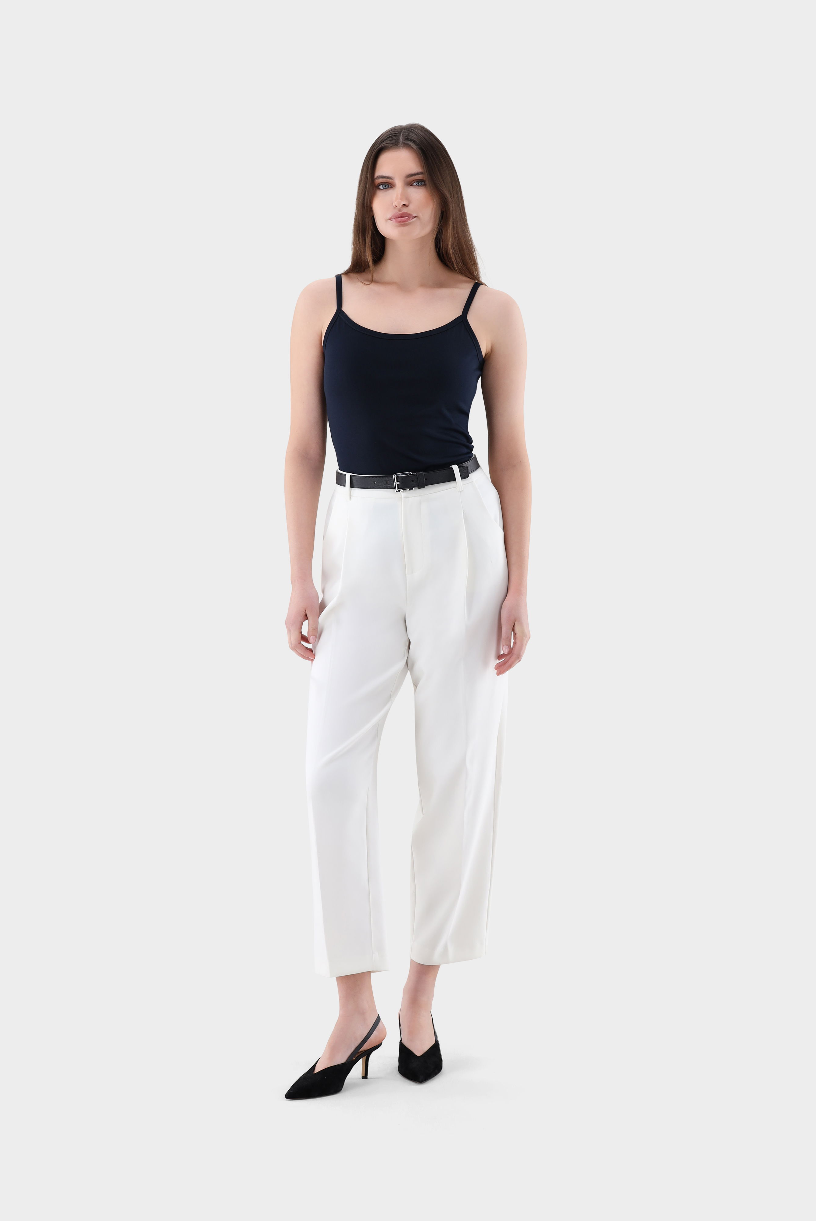 Dieses stilvolle Spaghetti-Träger-Top aus hochwertigem Schweizer Baumwolljersey überzeugt durch seinen schlichten, eleganten Look und die exzellente Passform. Der weiche und elastische Stoff sorgt für höchsten Tragekomfort, während die verstellbaren Träger eine individuelle Anpassung ermöglichen. Je nach Kombination passt das Top perfekt zu casual, festlichen oder auch geschäftlichen Anlässen.
