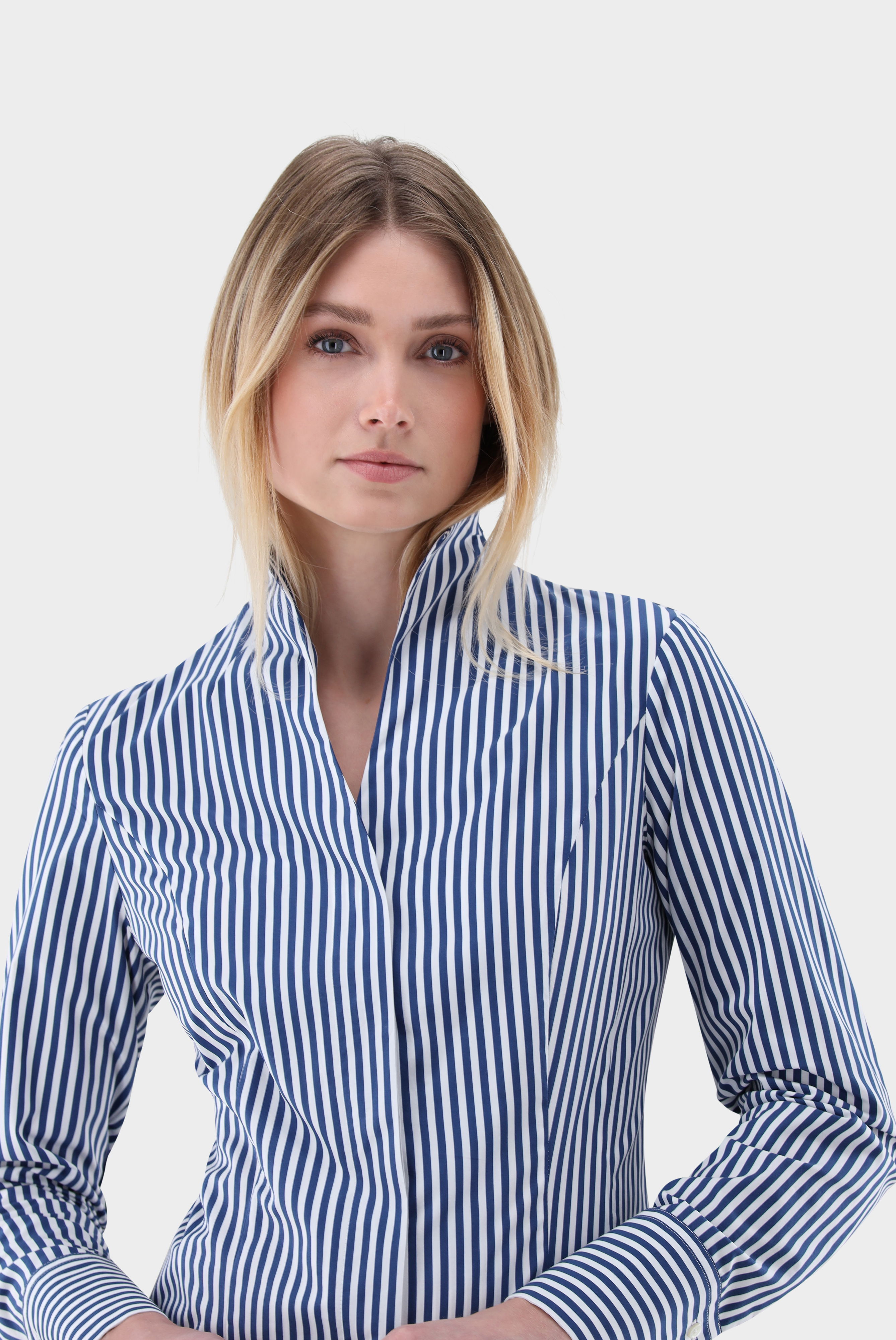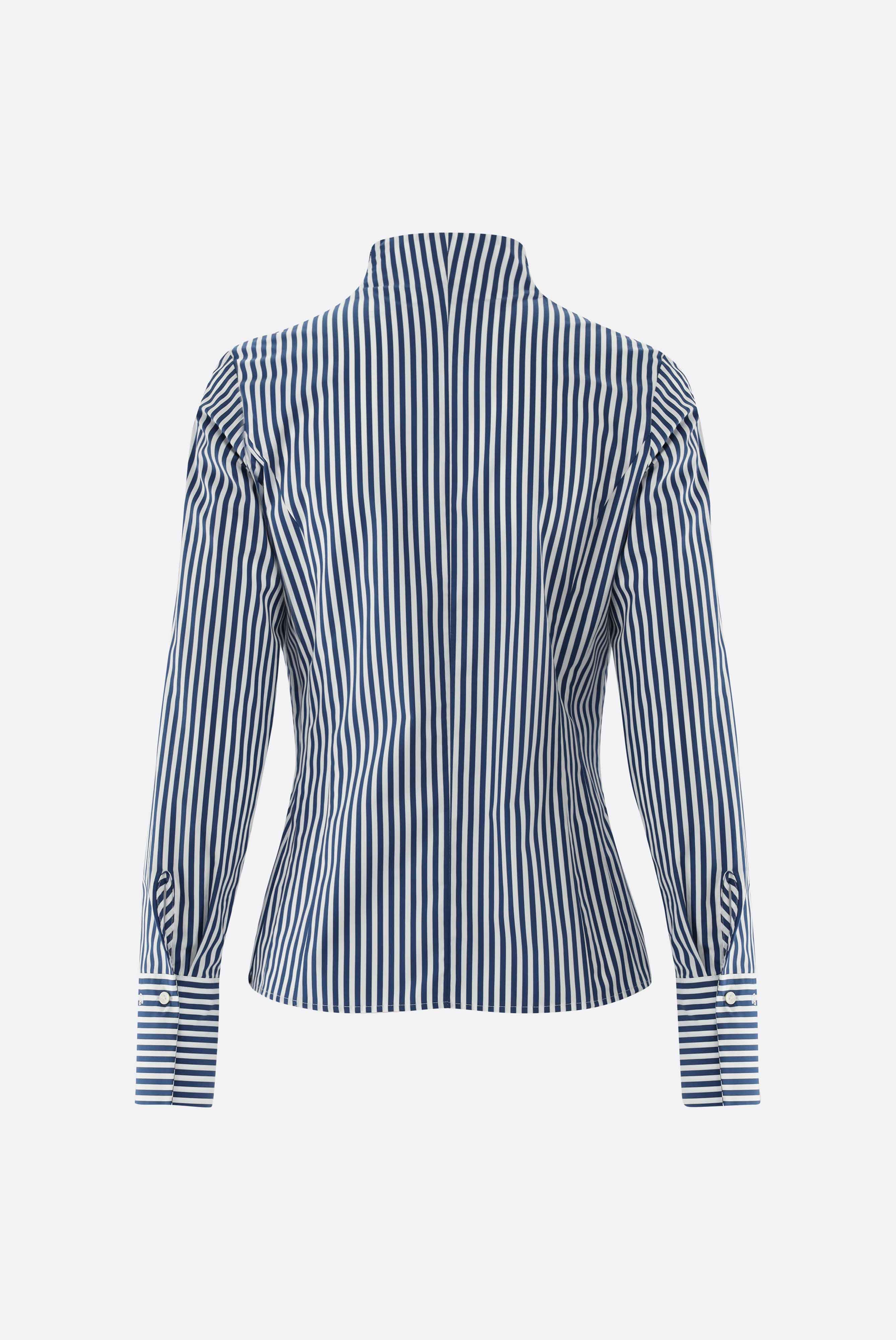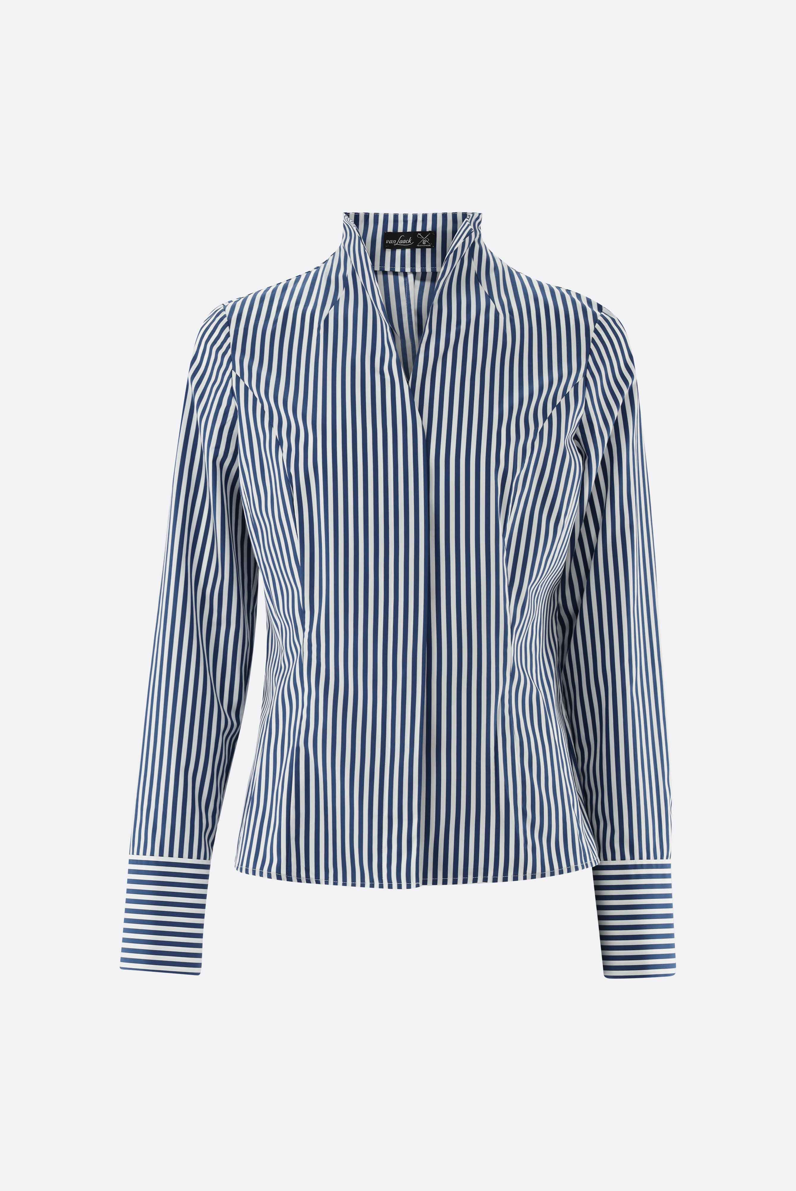 Charmante Kelchkragenbluse mit klassischem Streifendesign, die Eleganz und Raffinesse vereint.