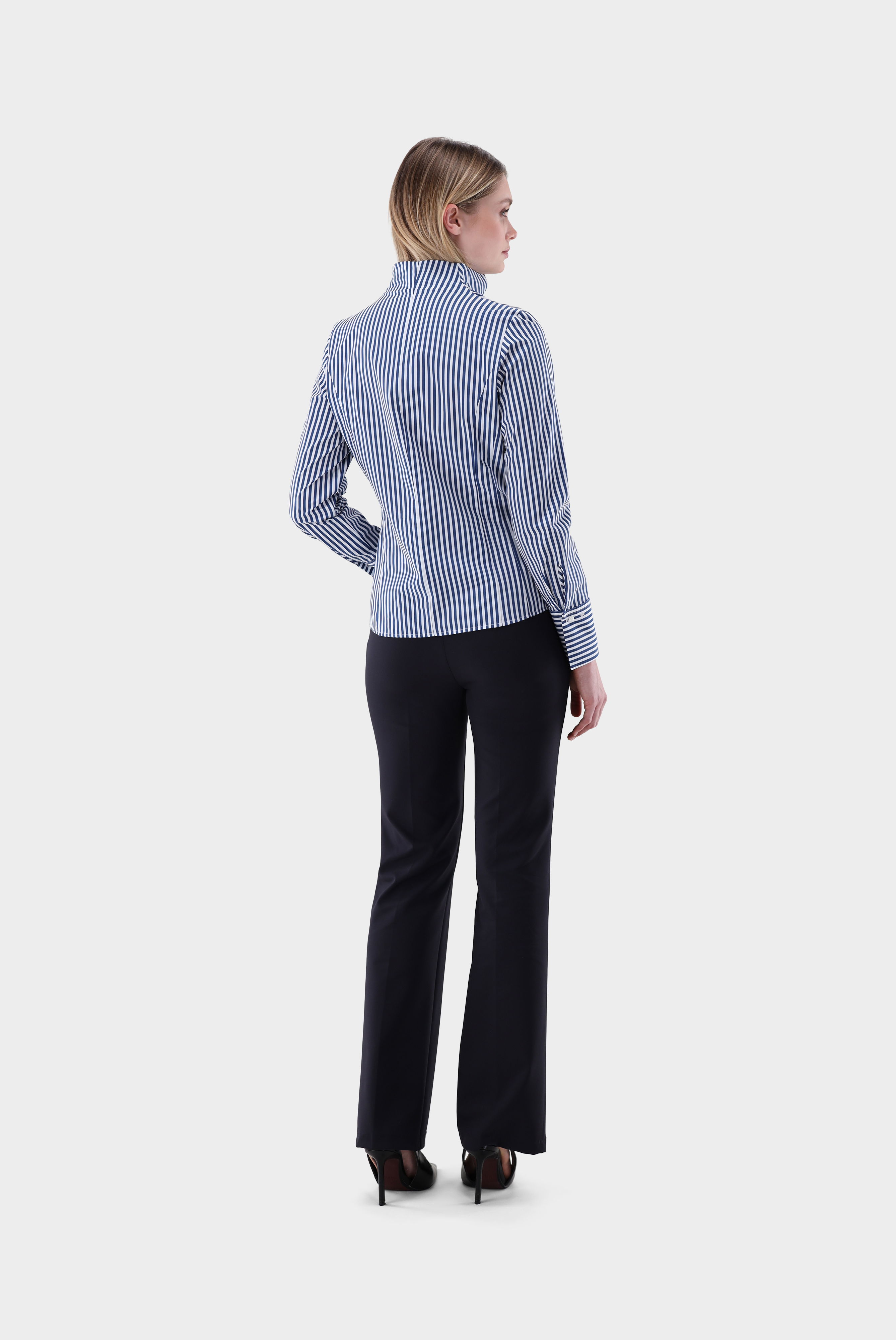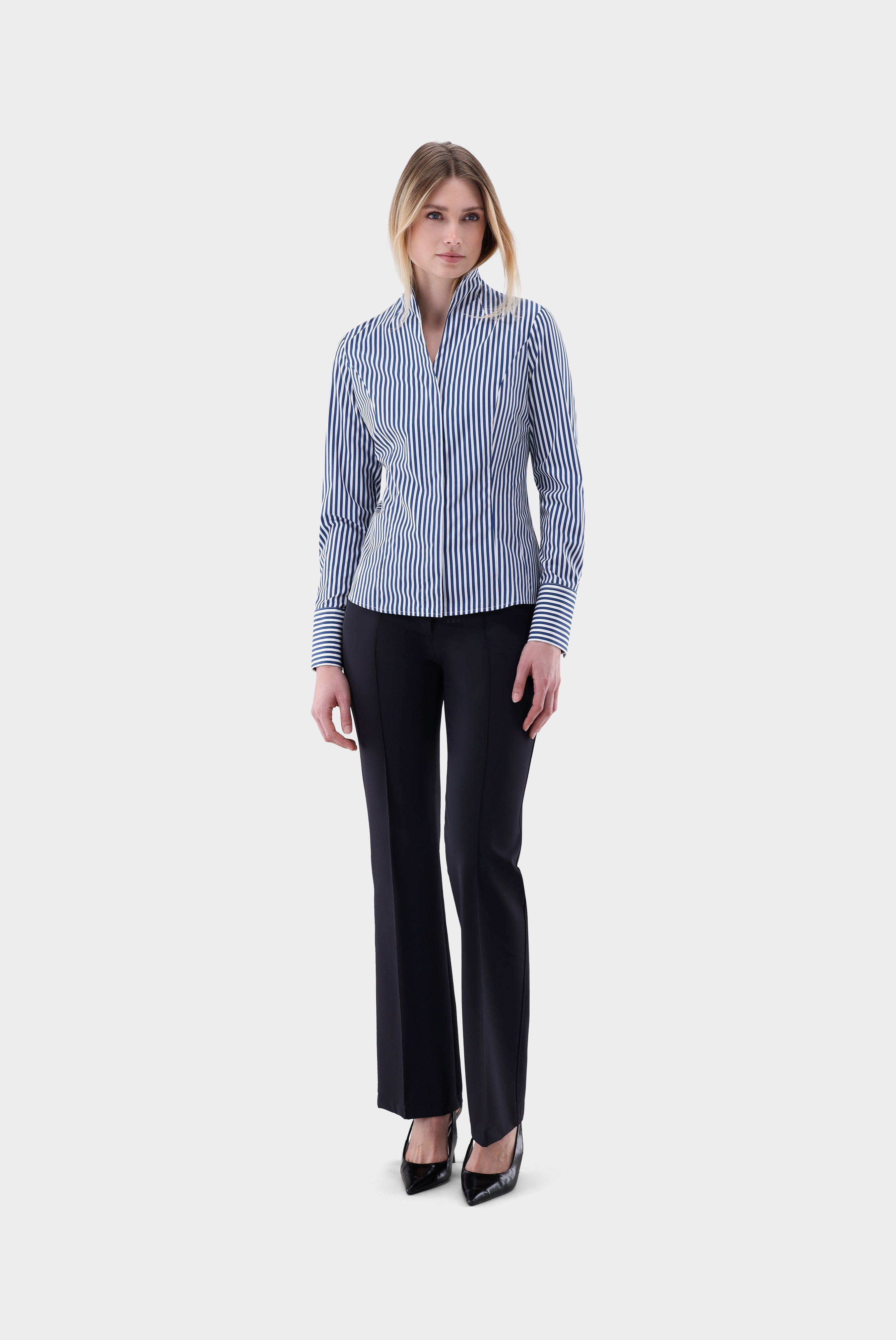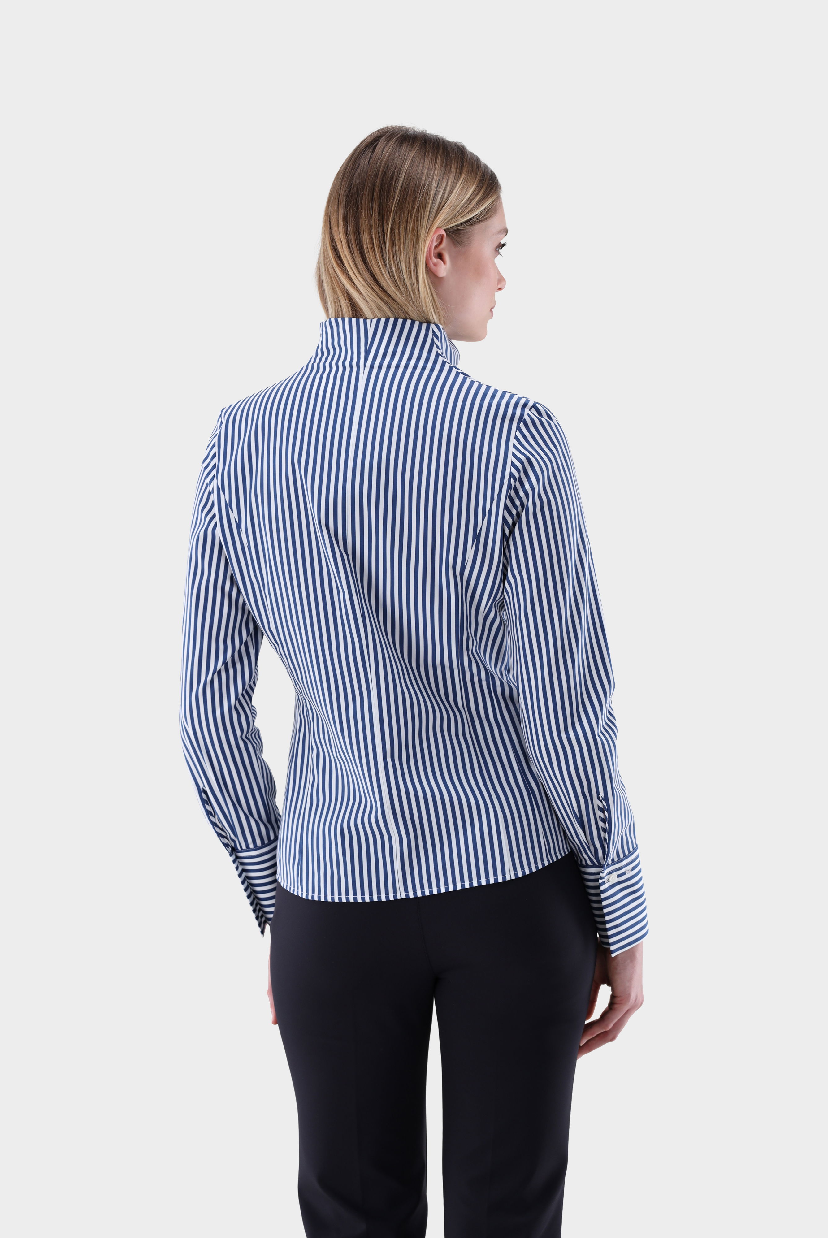 Charmante Kelchkragenbluse mit klassischem Streifendesign, die Eleganz und Raffinesse vereint.