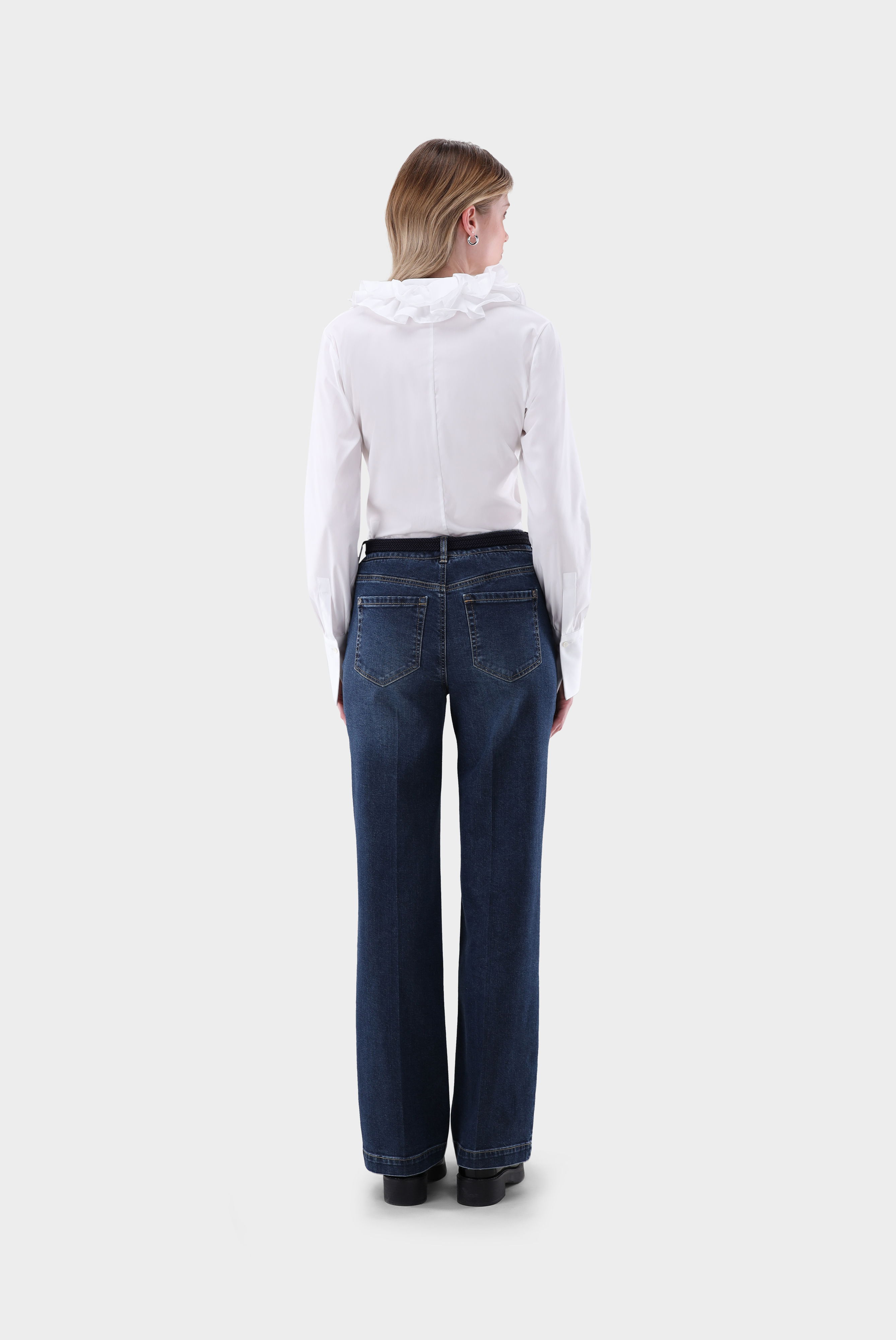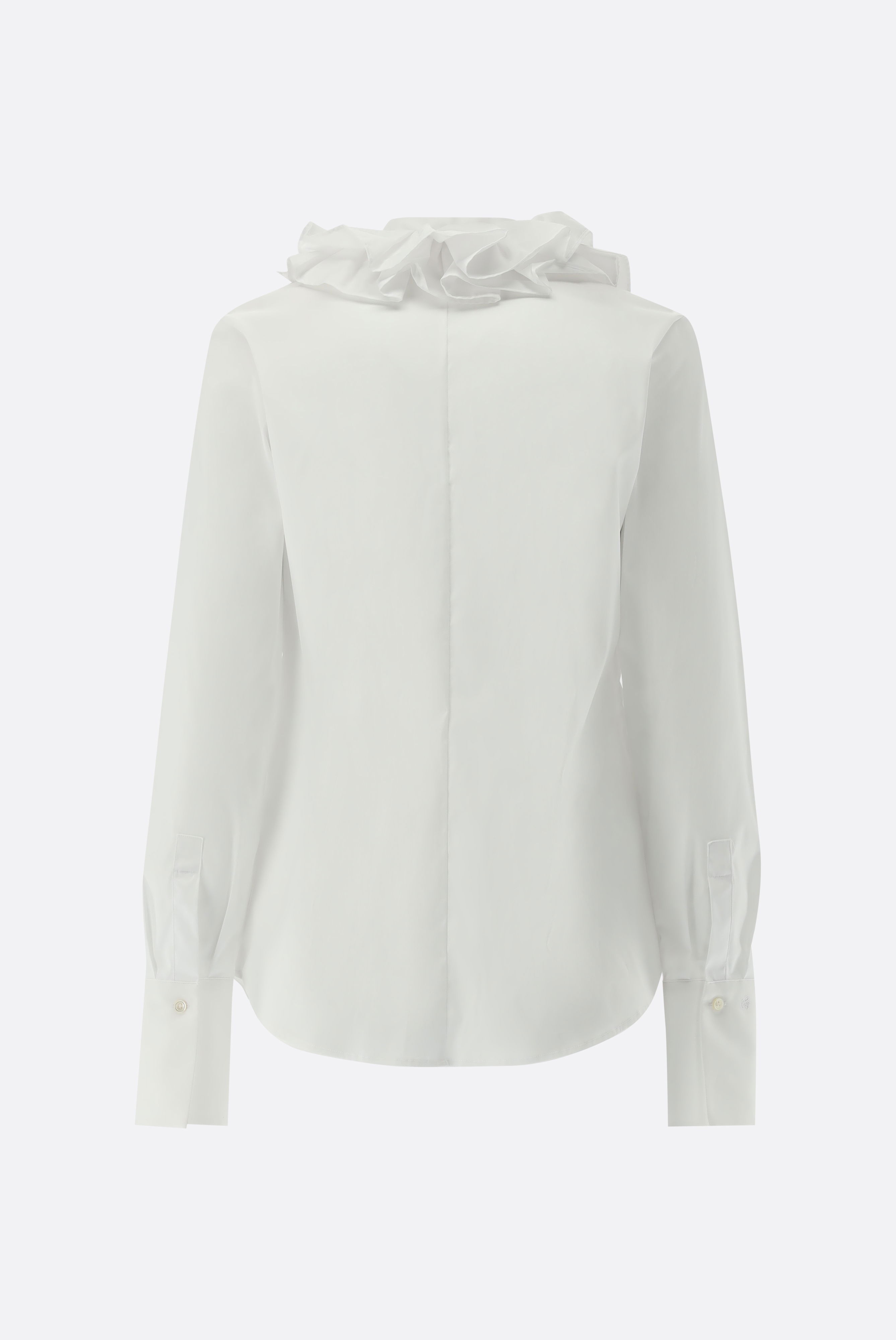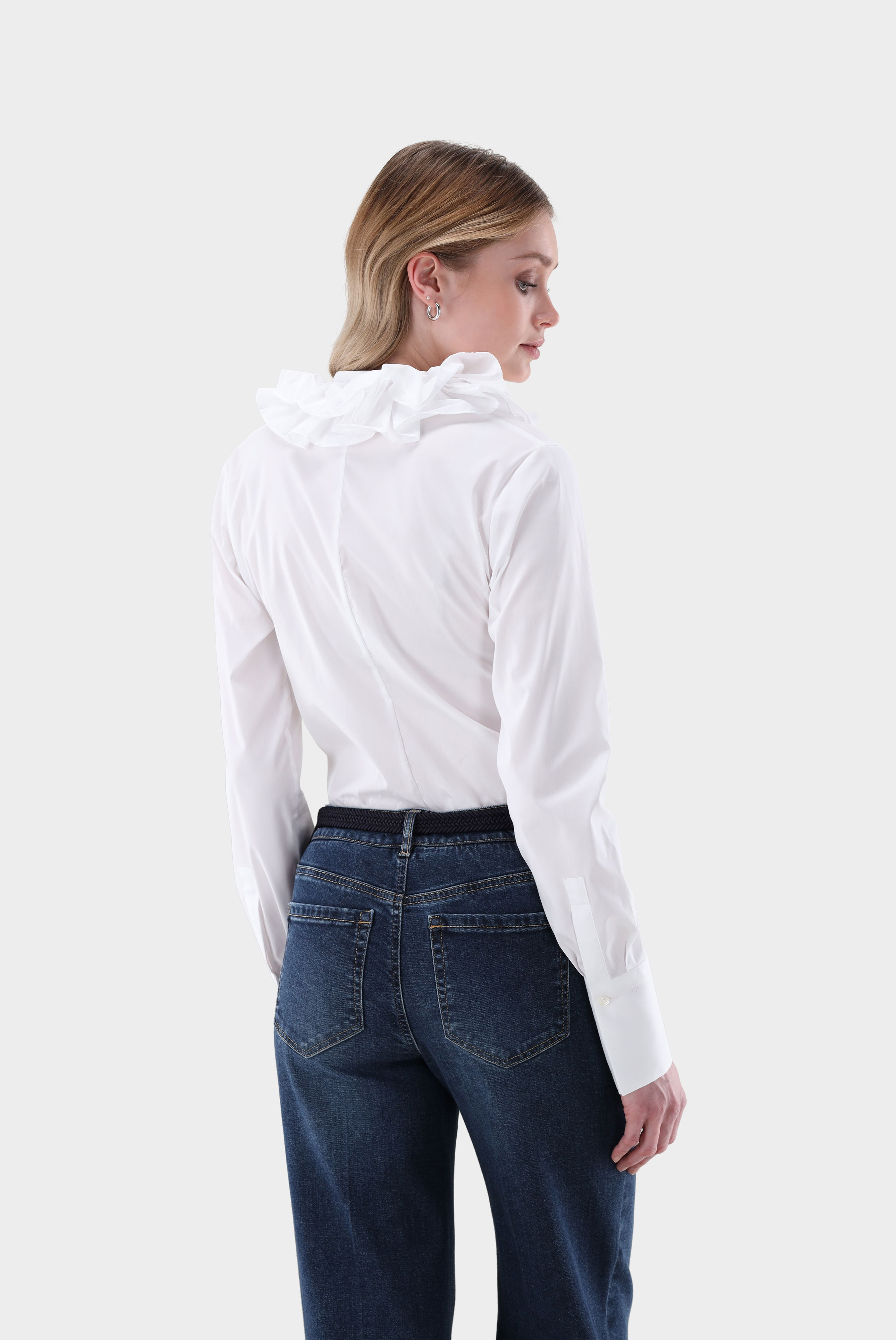 Diese taillierte Bluse bietet eine feminine Passform und betont die Silhouette. Lange Ärmel und ein eleganter Ausschnitt mit Rüschen setzen auffällige, stilvolle Akzente. Gefertigt ist sie aus einer einfarbigen Baumwoll-Stretch-Mischung, die Bewegungsfreiheit und Komfort vereint. Das Material sorgt für einen angenehmen Sitz und eine gepflegte Optik. Ideal für Büro oder besondere Anlässe.