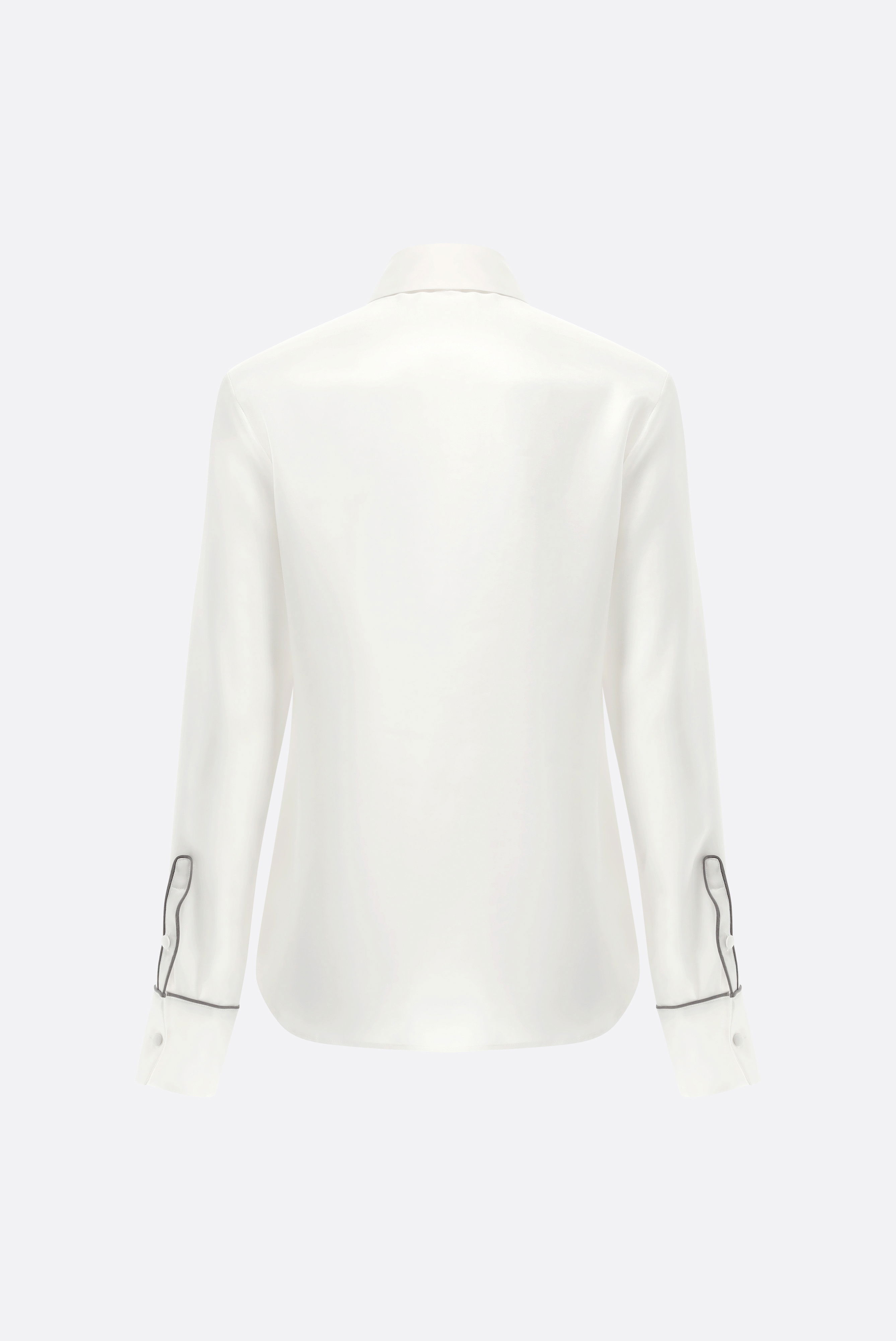 - Paspelband in Kontrastfarbe an Ärmel, Schulter, Manschette und Ärmelschlitz