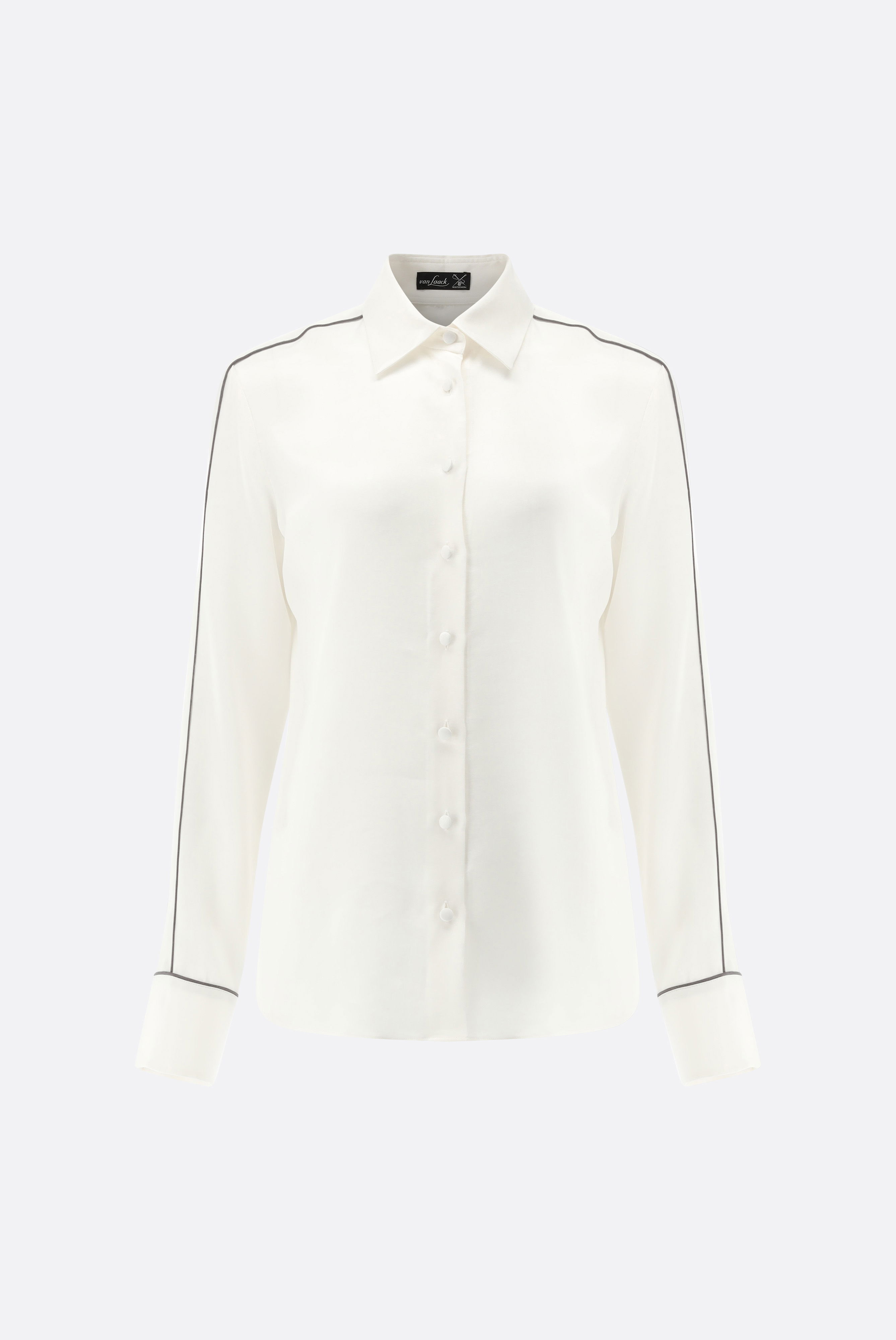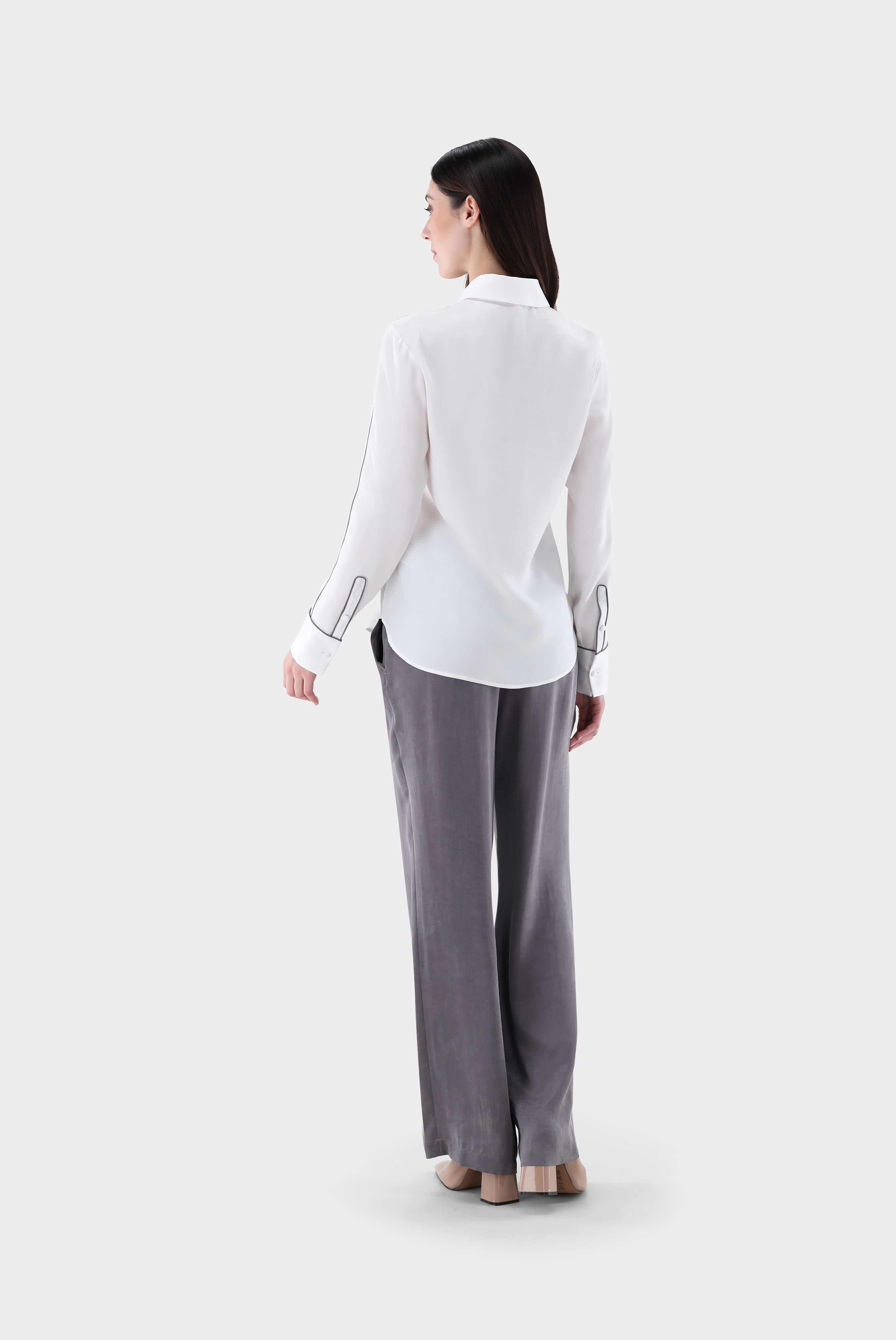 Look aus Bluse tailliert aus Lyocell mit Kontrast-Paspel