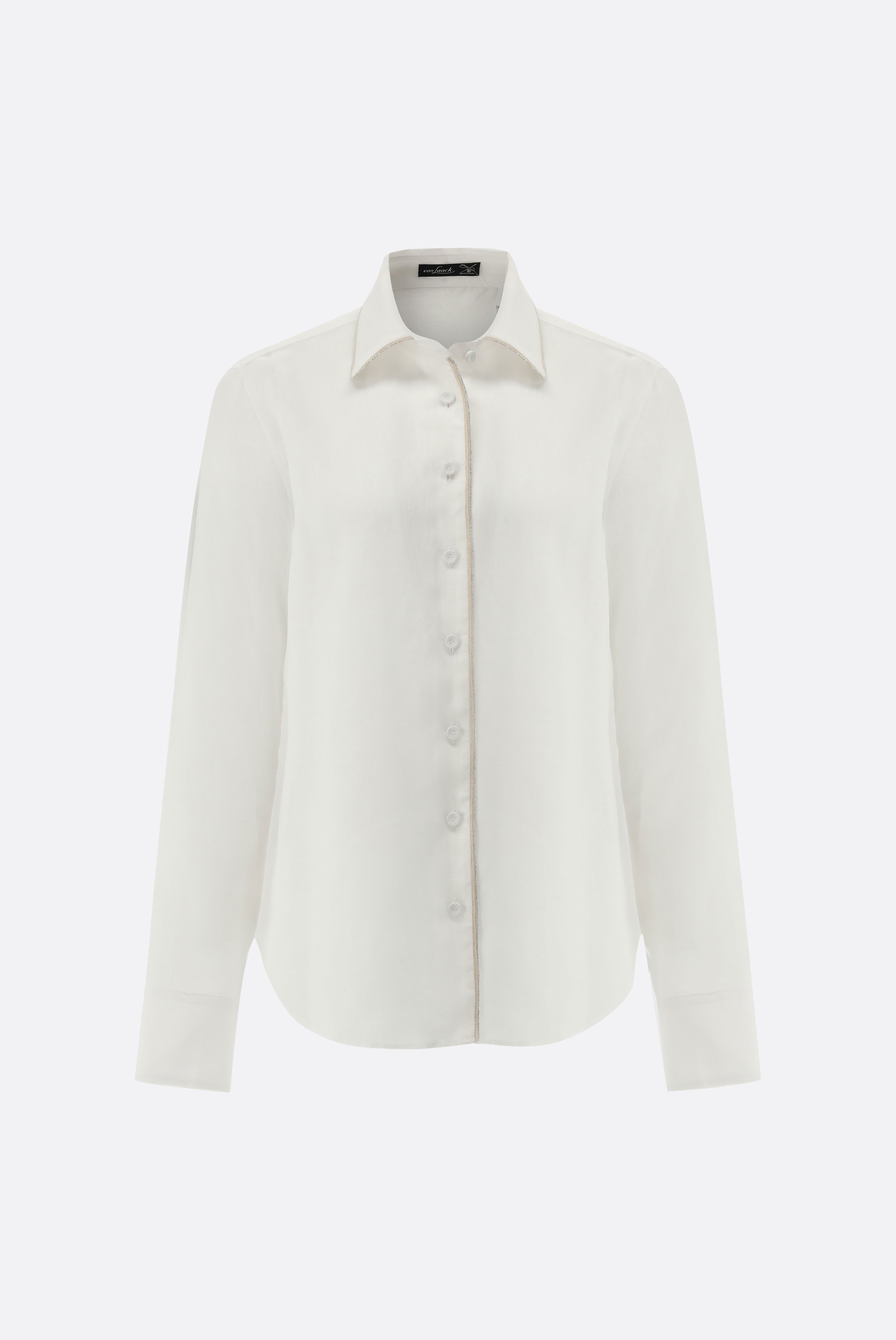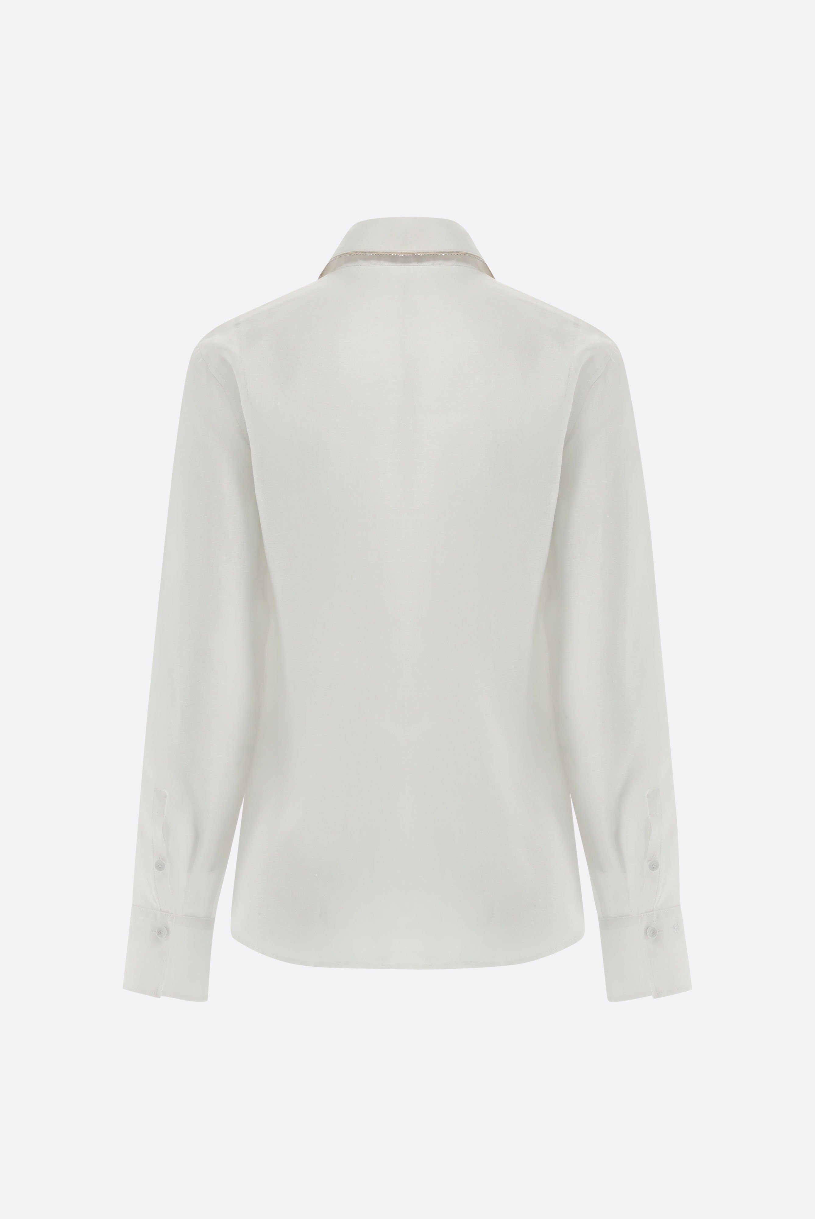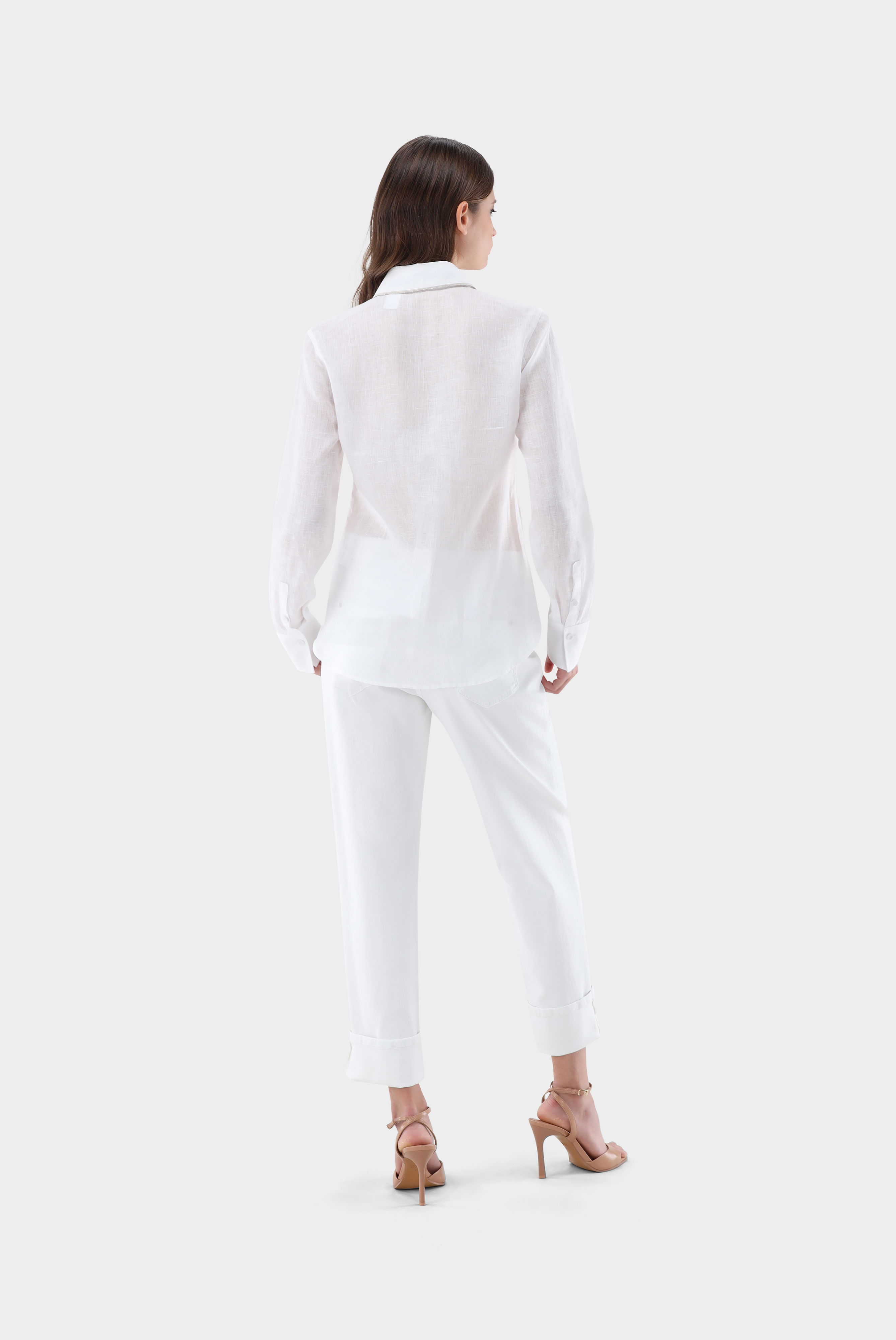 Look aus Hemdbluse aus Leinen mit Paspel-Detail