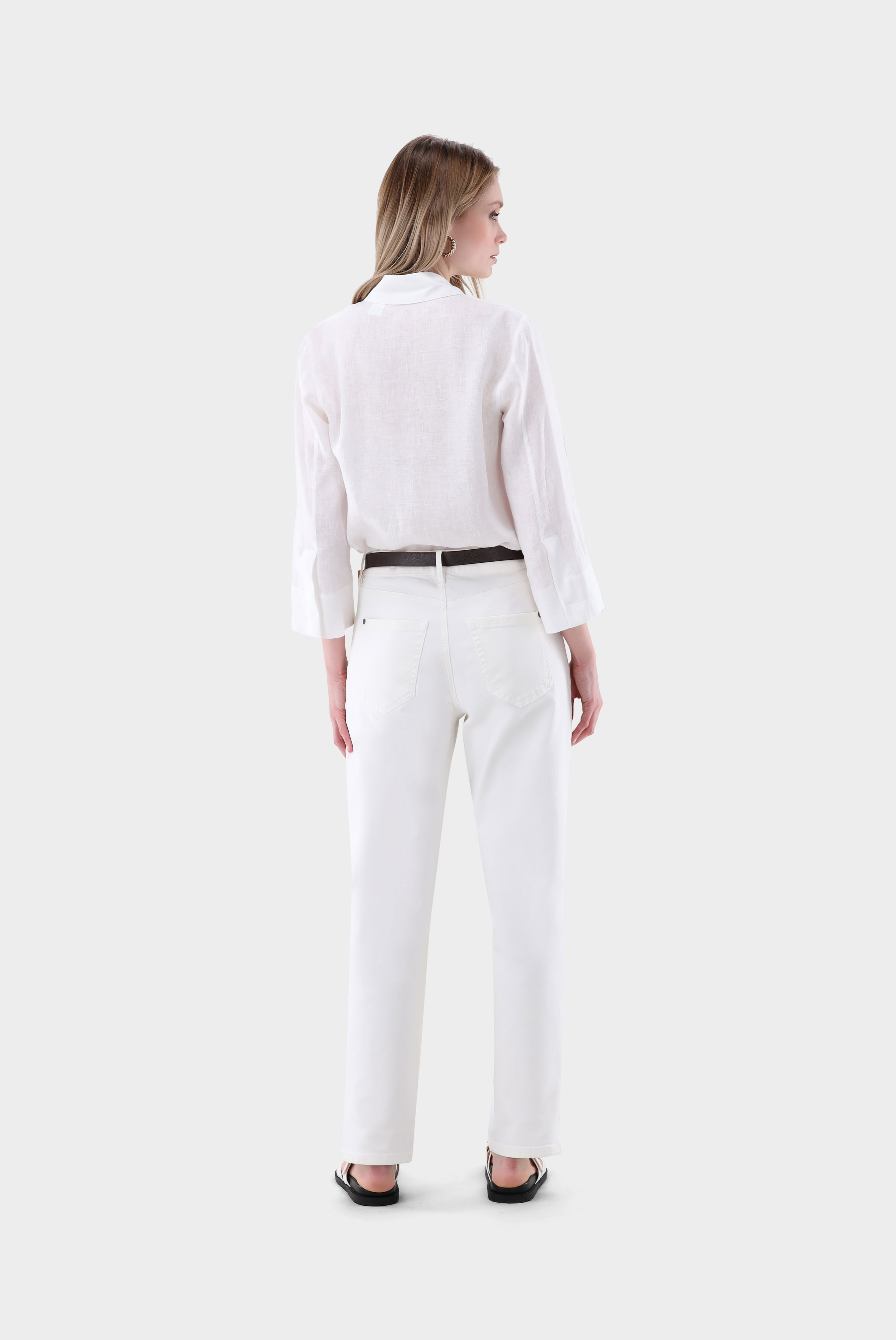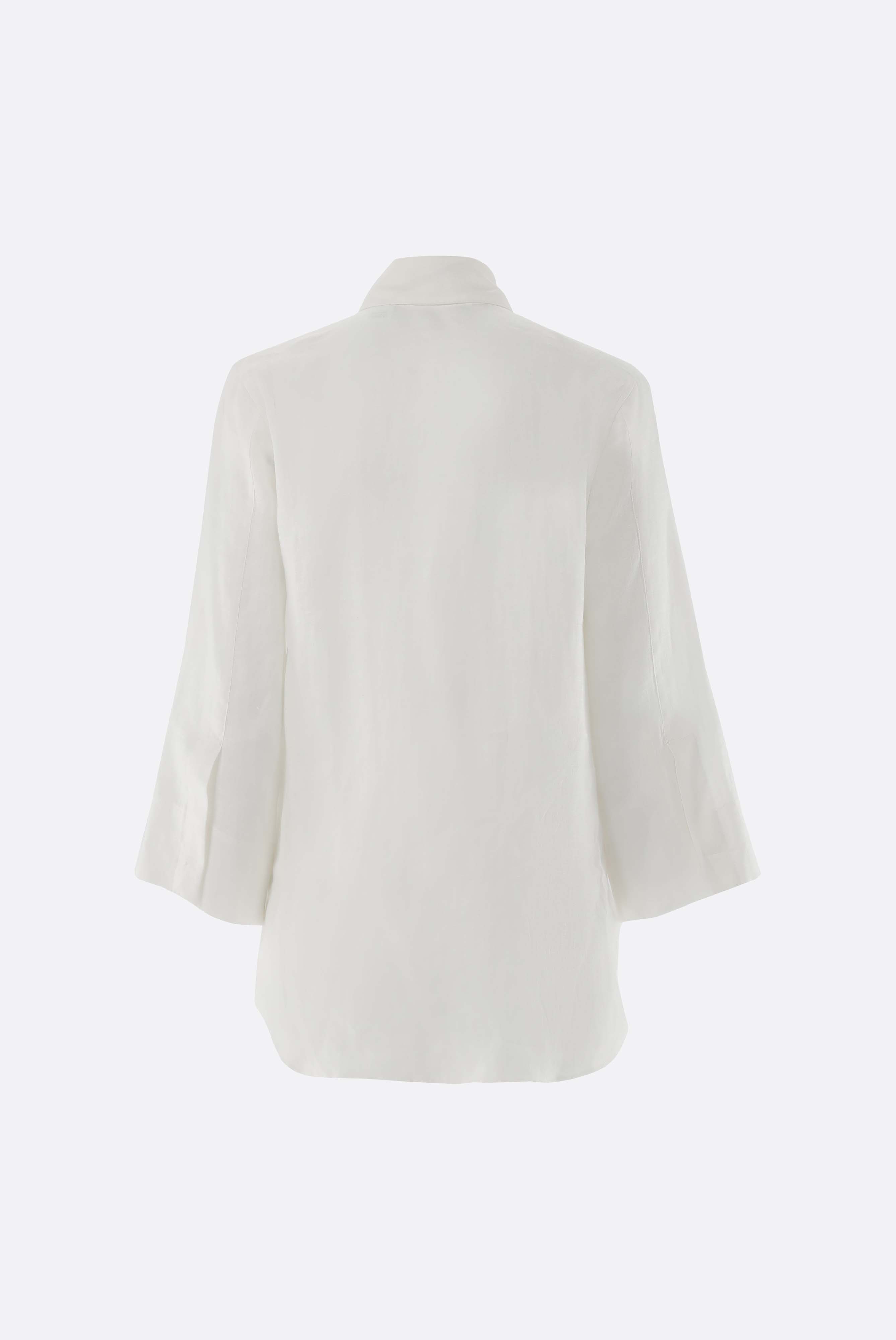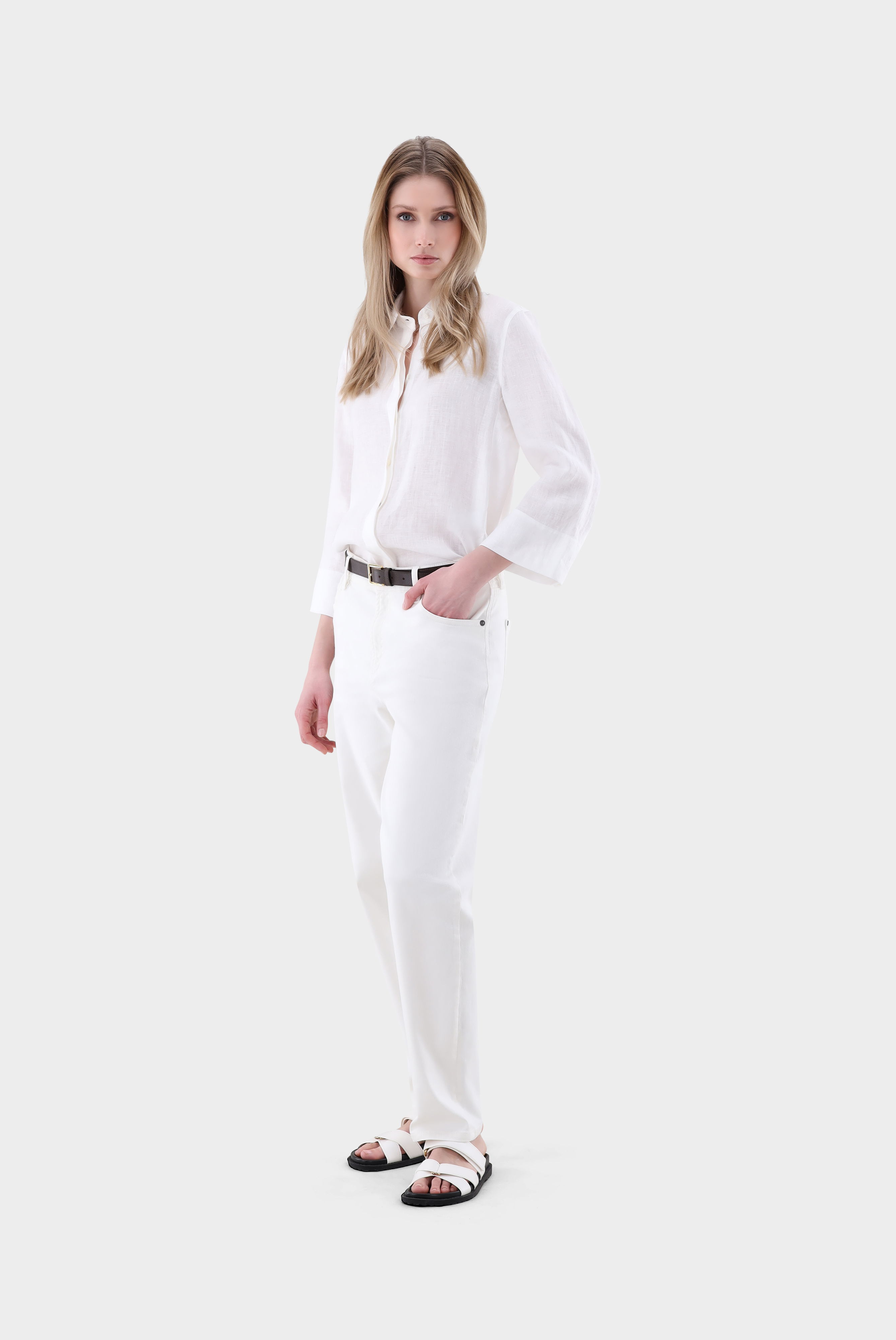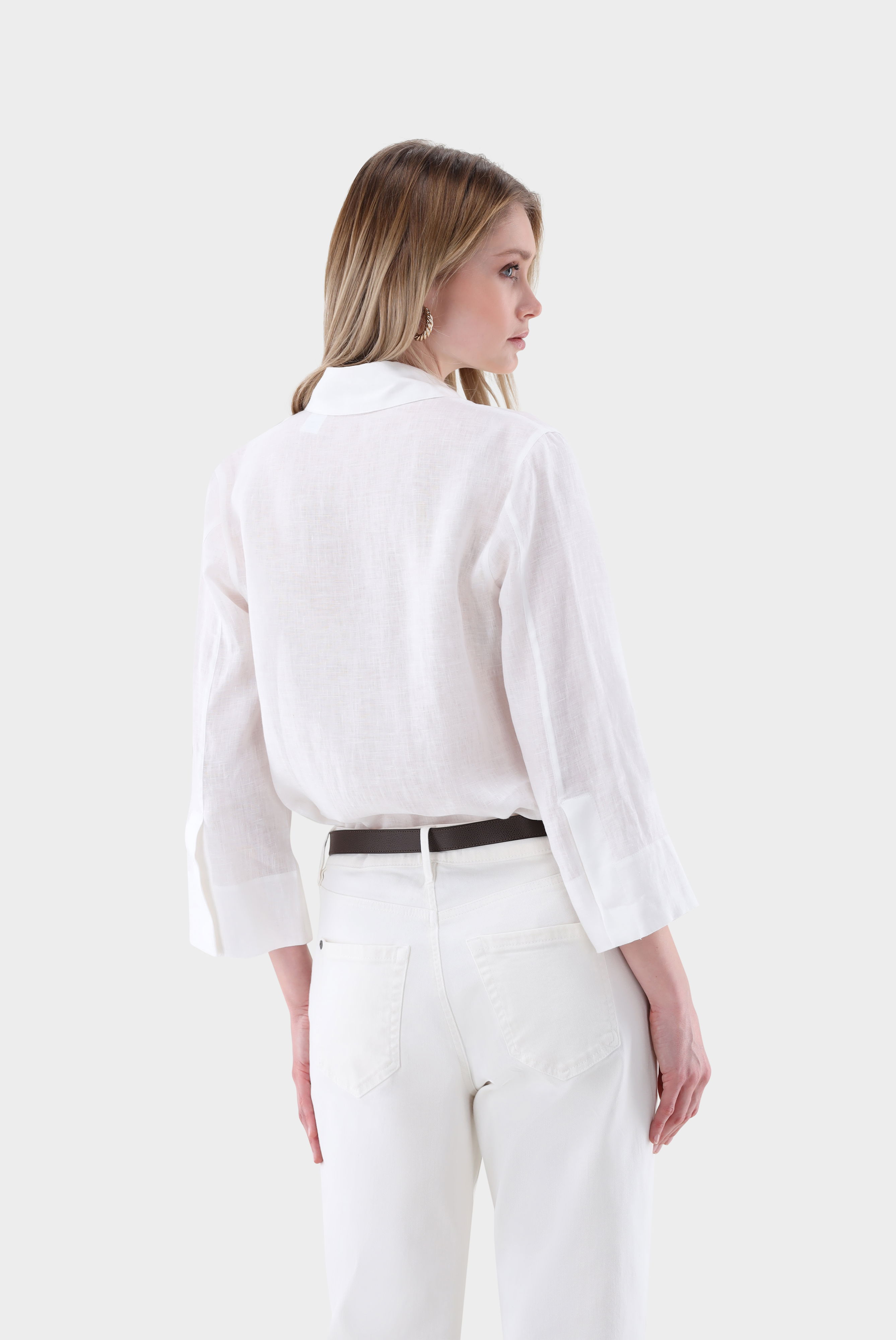 Look aus Hemdbluse aus Leinen mit Seitenschlitzen