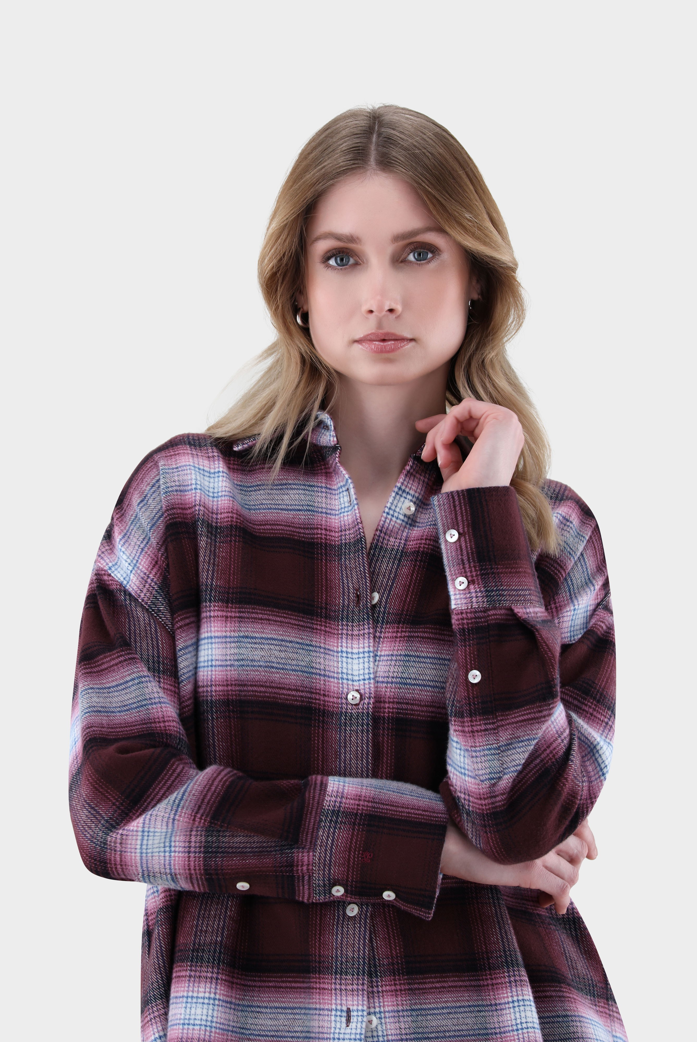 Die locker sitzende Hemdbluse besticht durch ihre entspannte Passform und lange Ärmel. Überschnittene Schultern und eine Rückenpasse mit Kellerfalte sorgen für zusätzlichen Komfort und Bewegungsfreiheit. Gefertigt aus weichem Baumwollflanell bietet die Bluse ein angenehmes Tragegefühl. Das klassische Karomuster verleiht dem Design einen zeitlosen und vielseitigen Look. Diese Hemdbluse ist ideal für legere Alltags- und Freizeitoutfits geeignet.