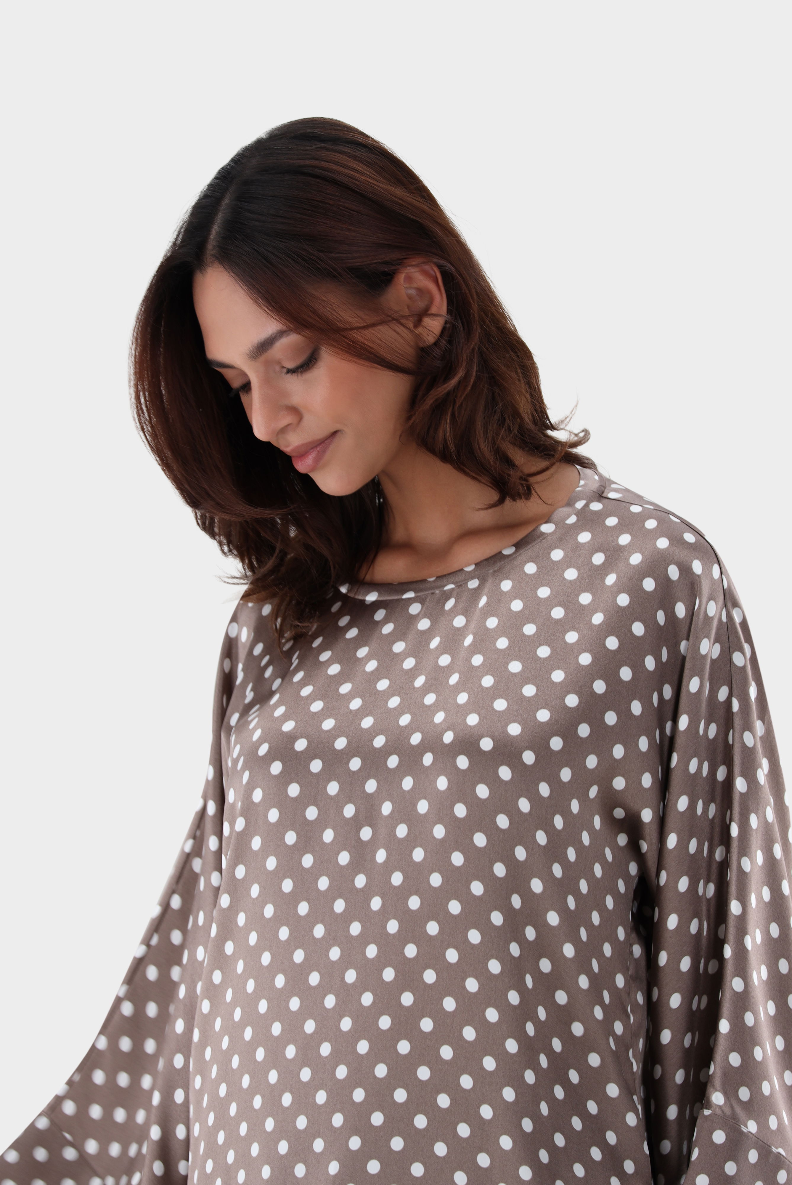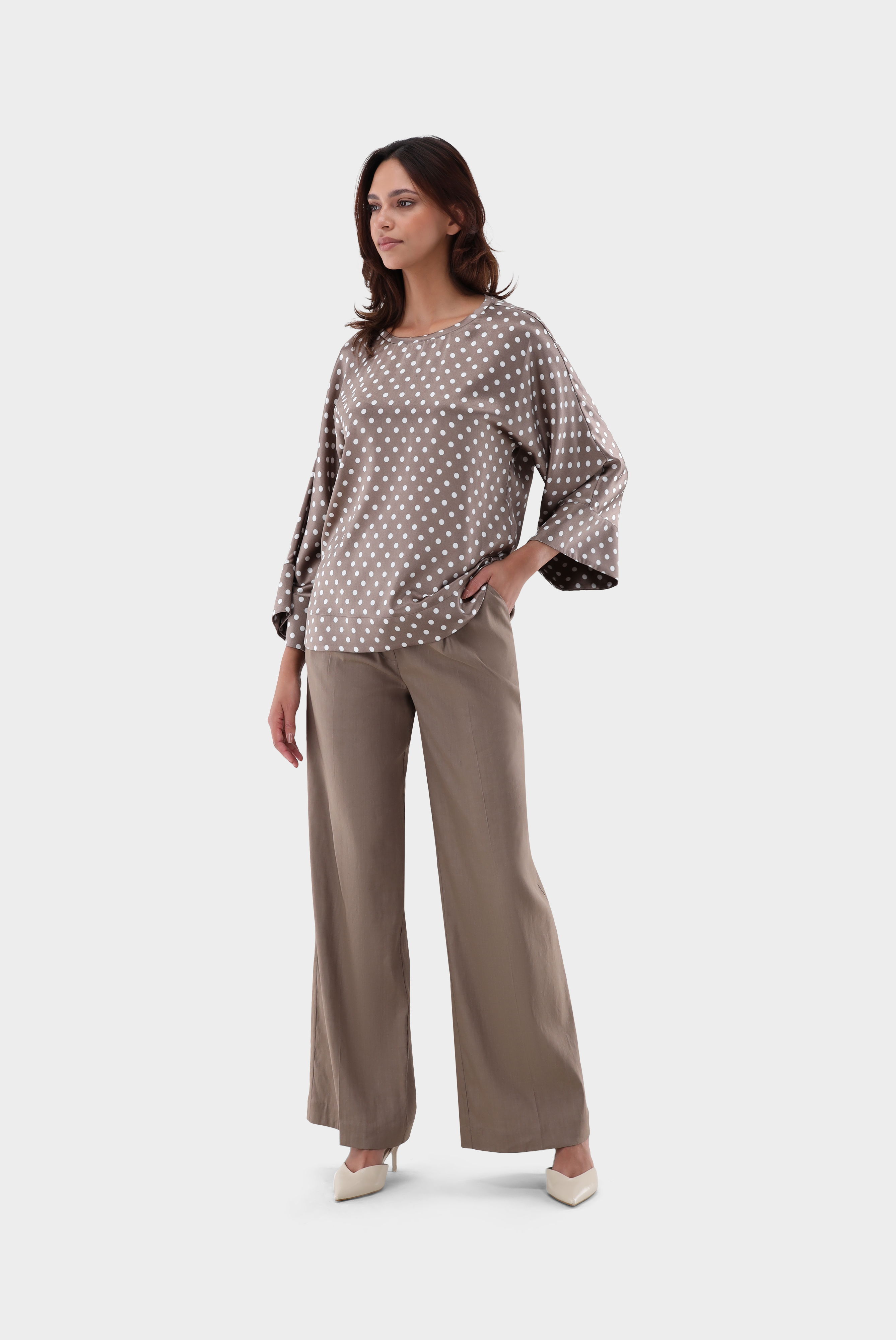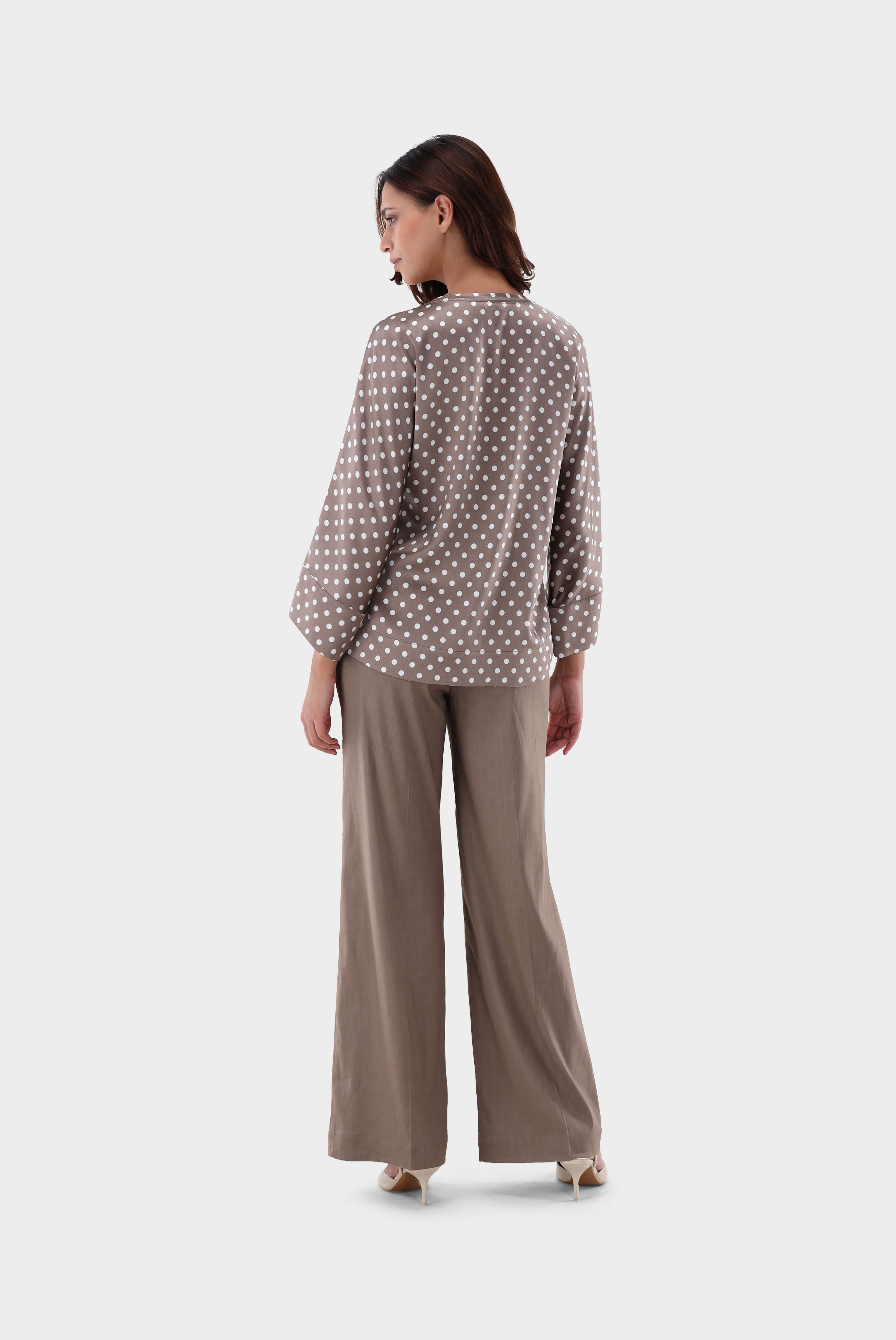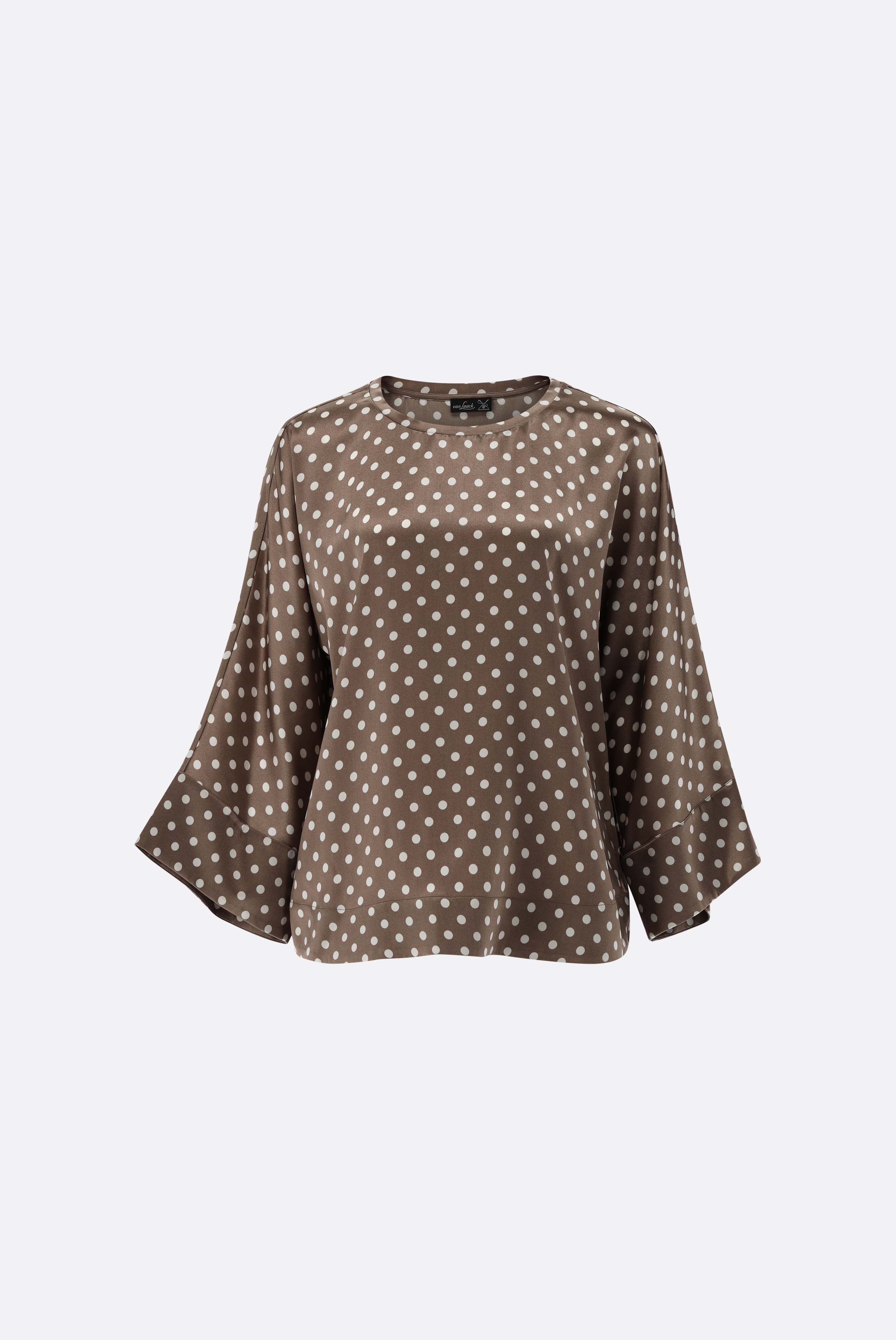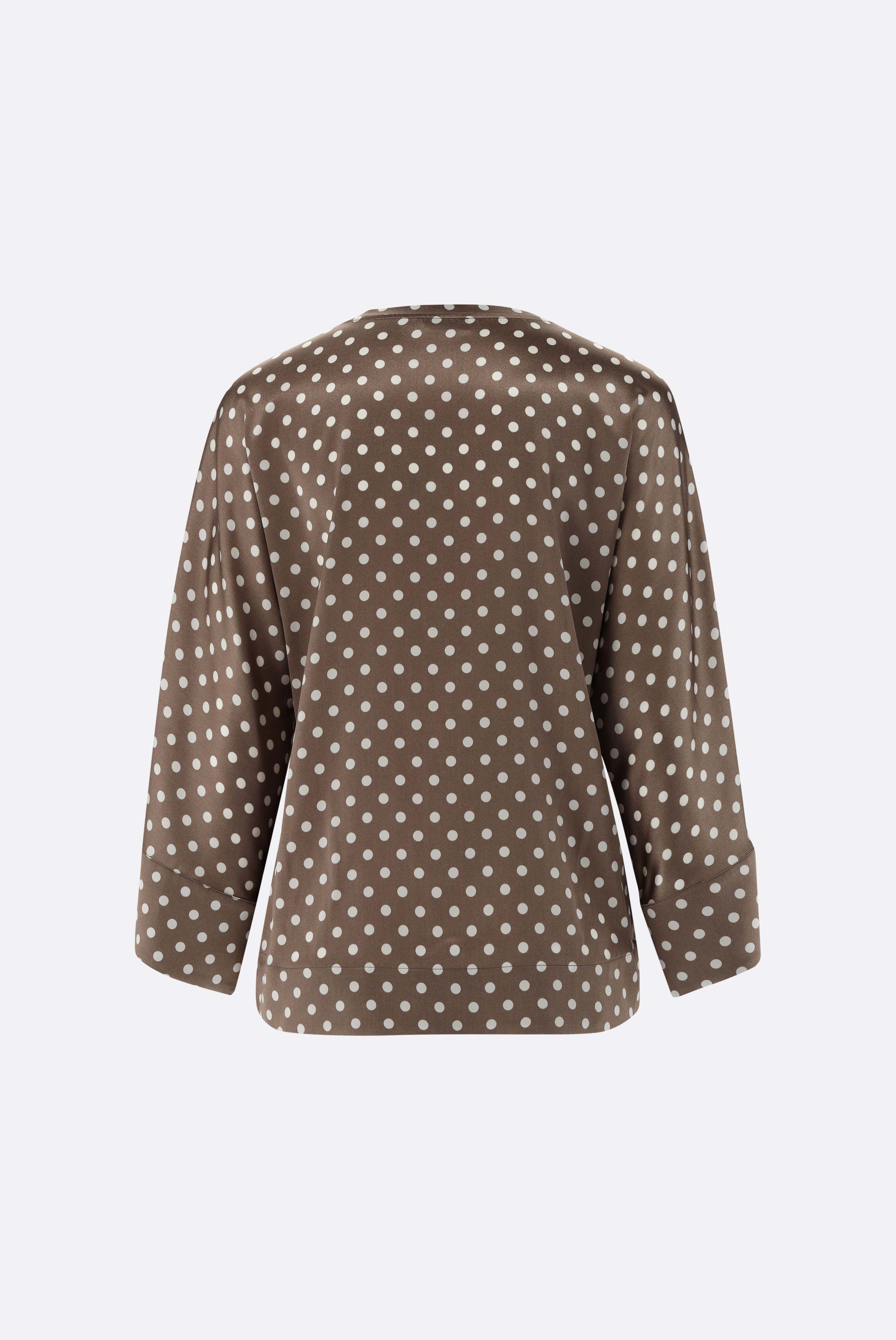 Look aus Schlupfbluse aus Seide mit Punkten