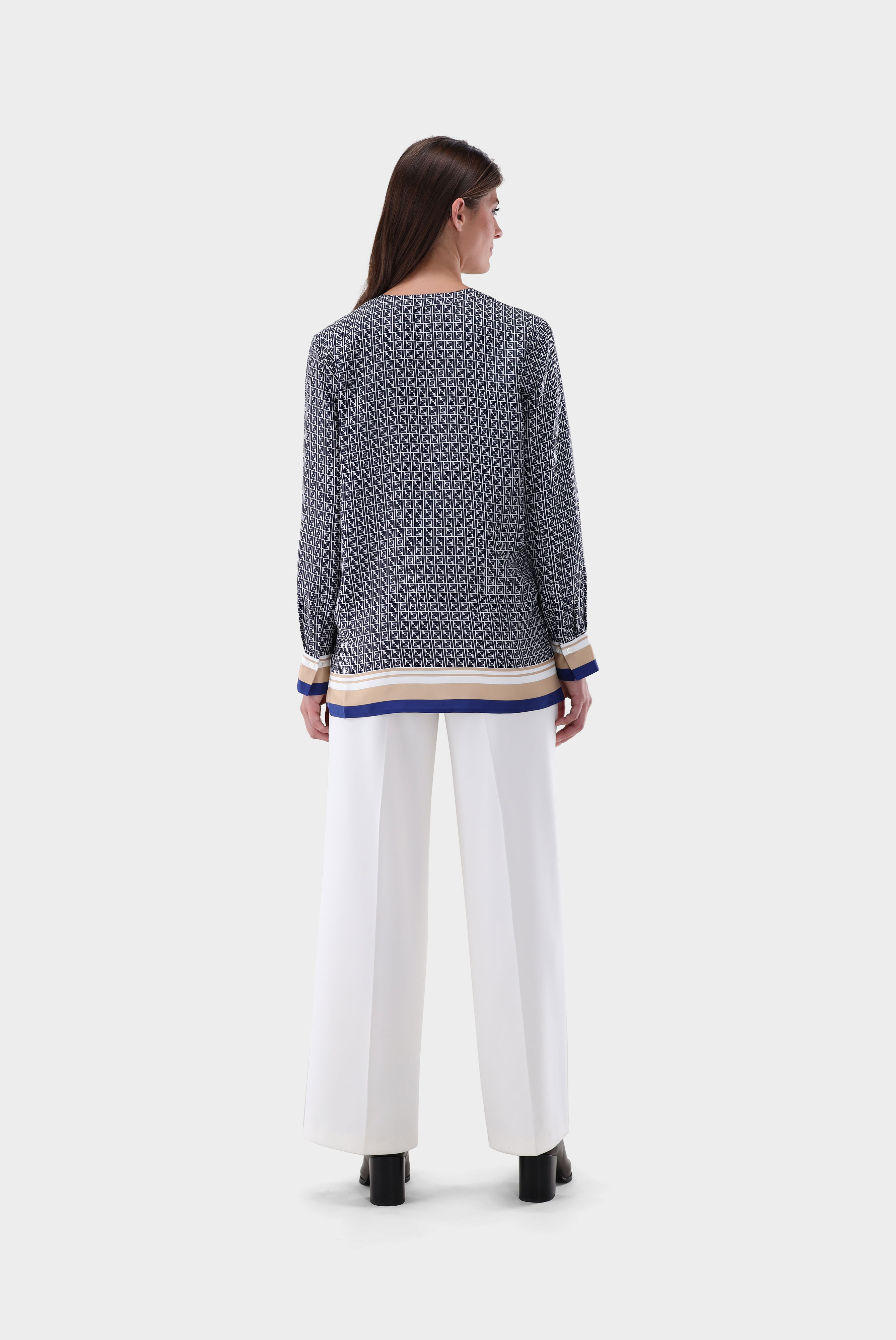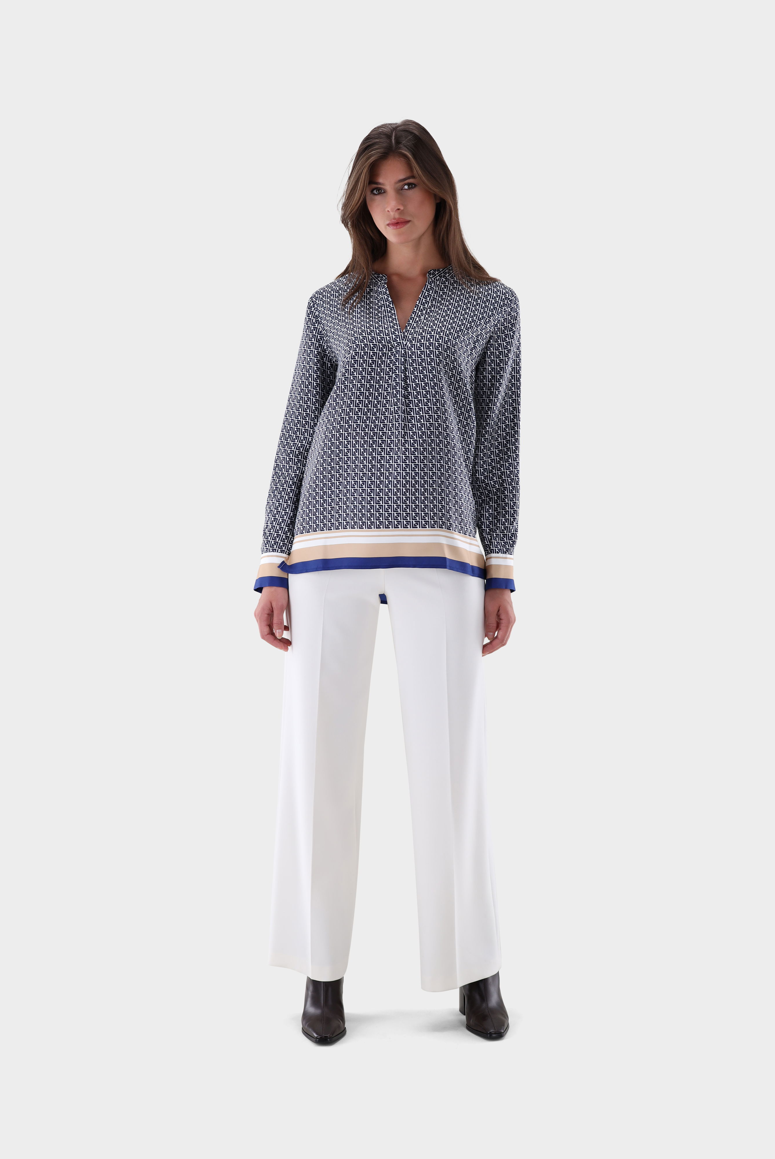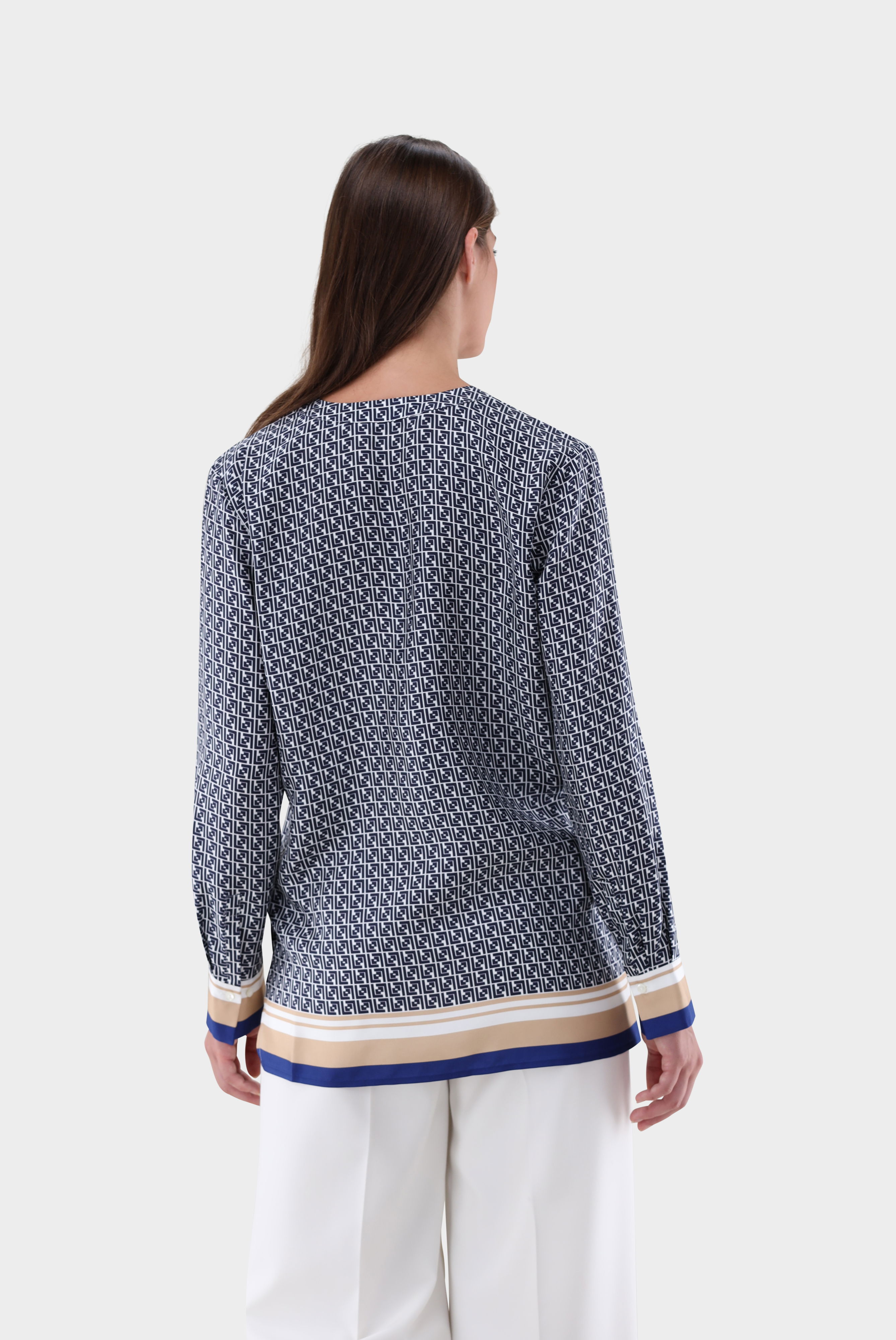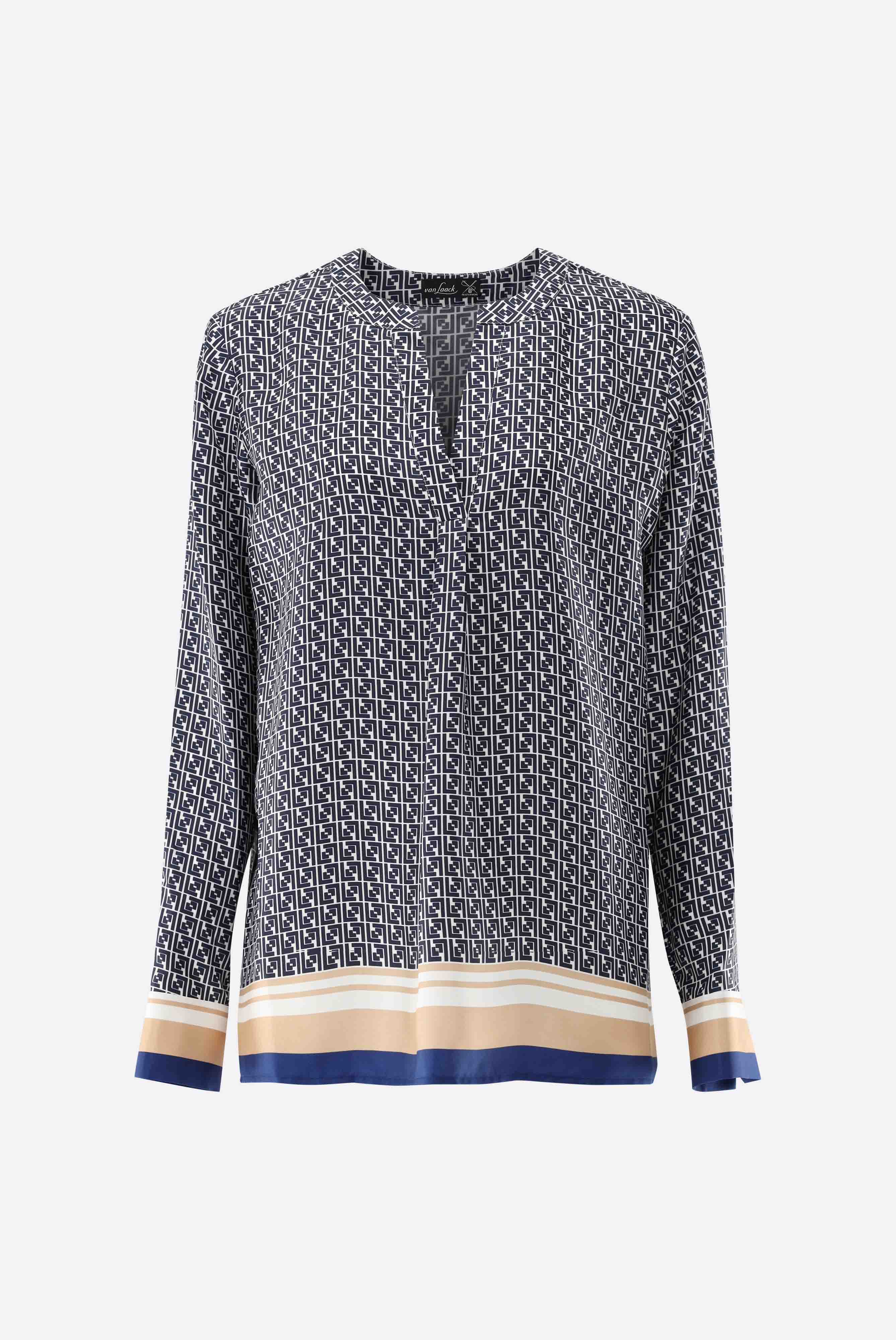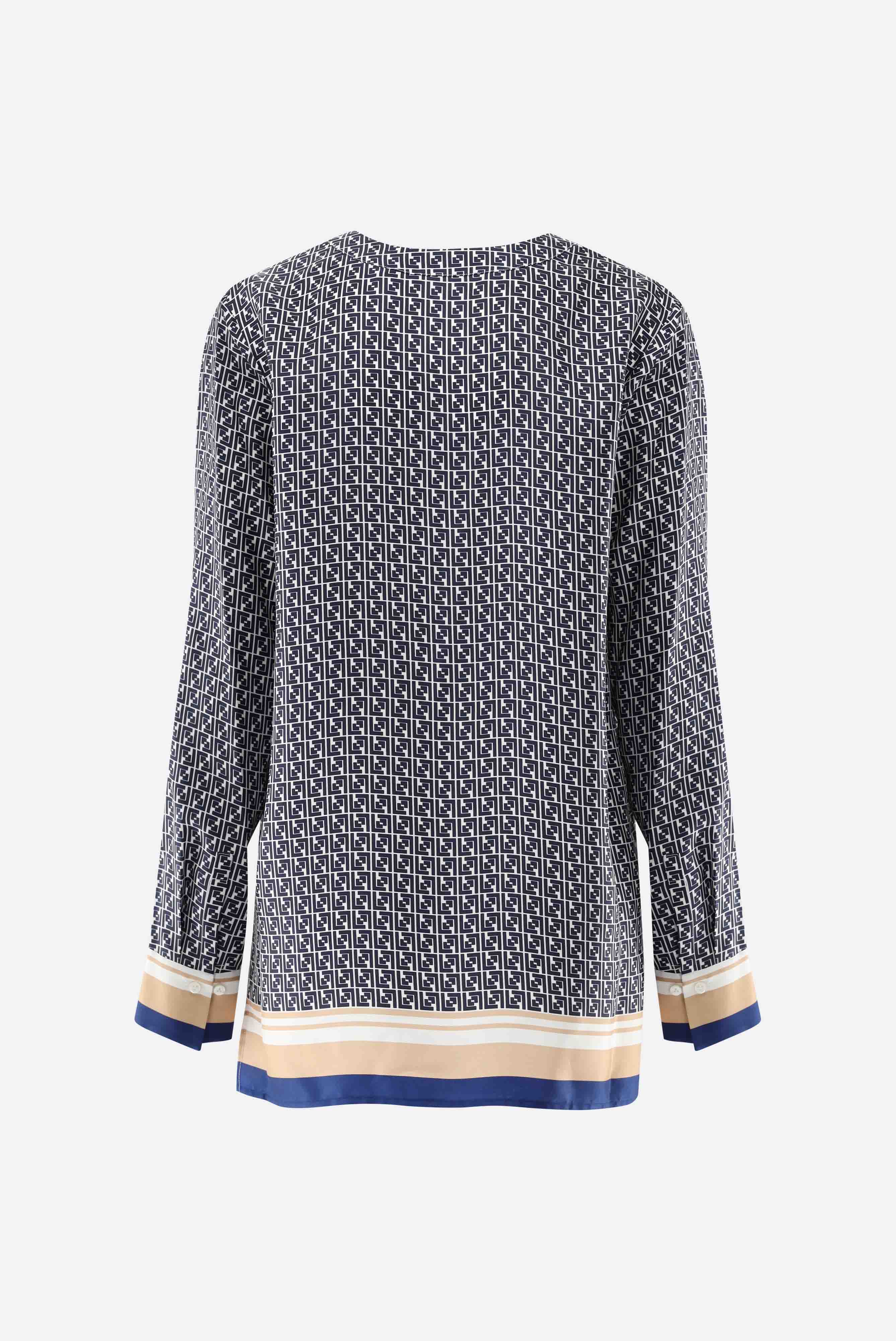 Die lockere Tunika besticht durch einen legeren V-Ausschnitt und lange Ärmel. Der platzierte, charakteristische Druck verleiht dem Design eine besondere Note. Gefertigt aus edlem Seidentwill bietet die Hemdbluse einen luxuriösen Griff und einen fließenden Fall. Dieses Modell eignet sich ideal für einen schicken Alltags-Look.