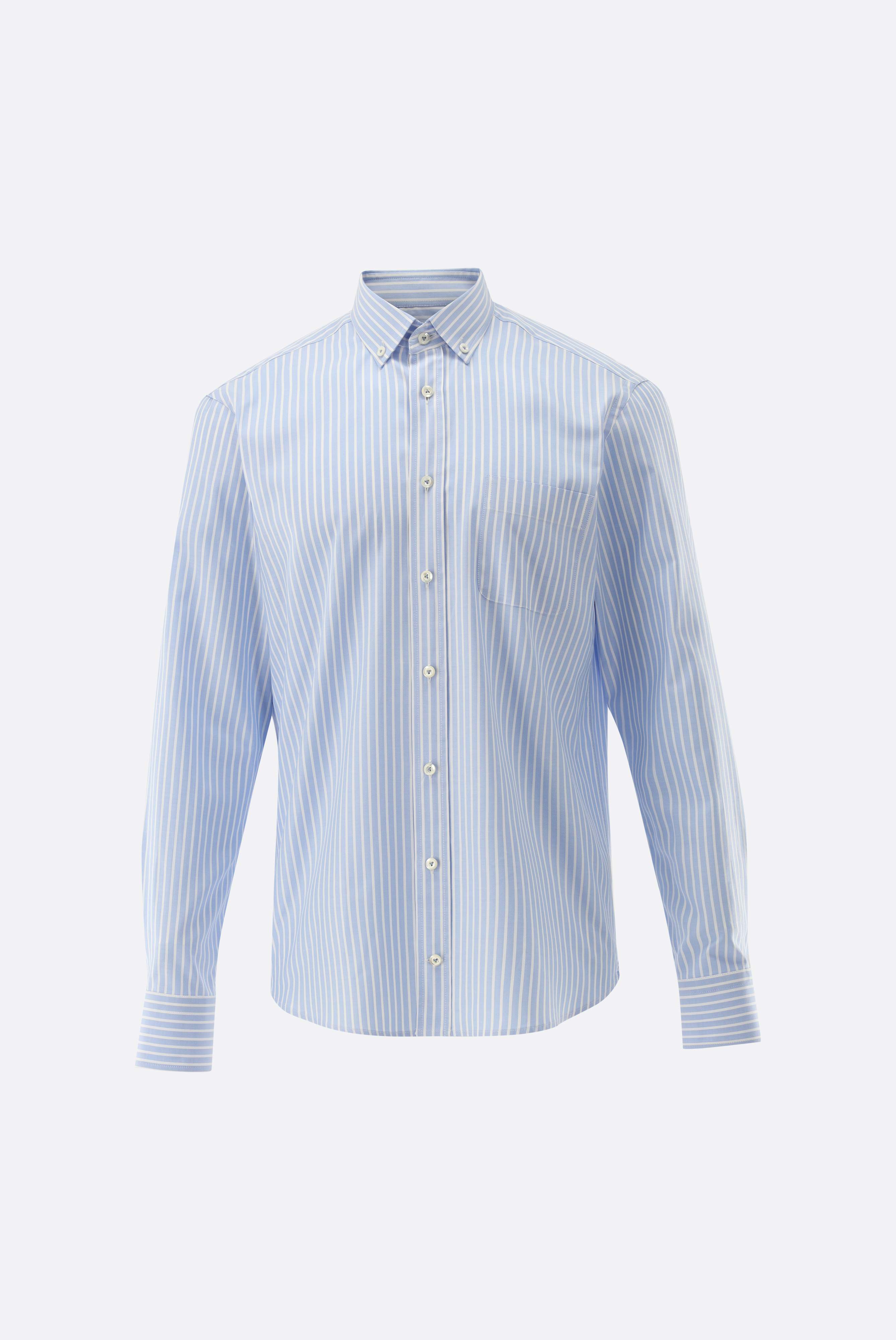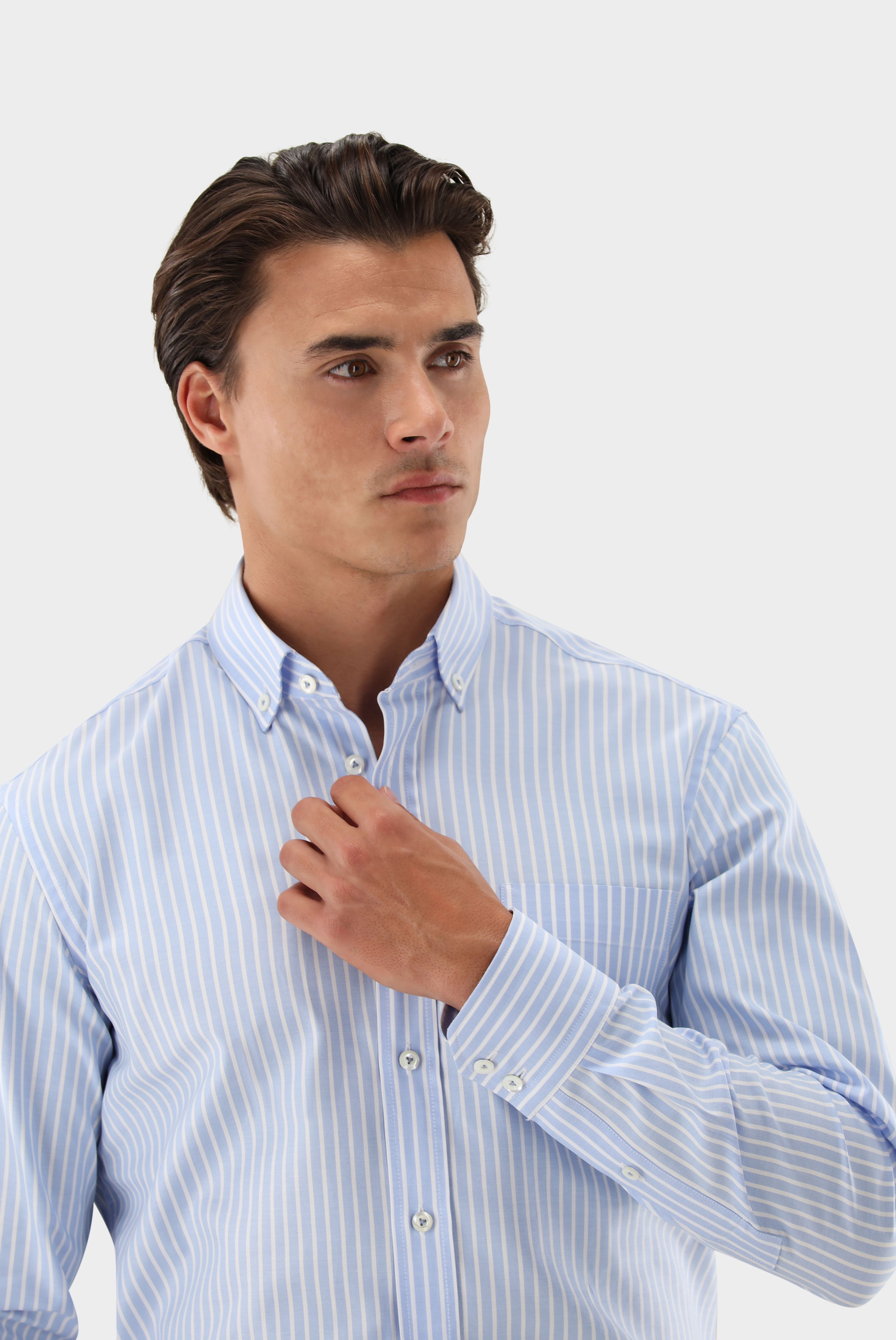 Dieses Dobby Hemd kombiniert hochwertige Verarbeitung mit einer dezenten, strukturierten Optik. Mit seinem klassichen Tailor Fit bietet es ein legeres Tragegefühl. Der Button Down Kragen sorgt für eine klassische Optik, welche durch eine aufgesetzte Knopfleiste und Brusttasche abgerundet wird.