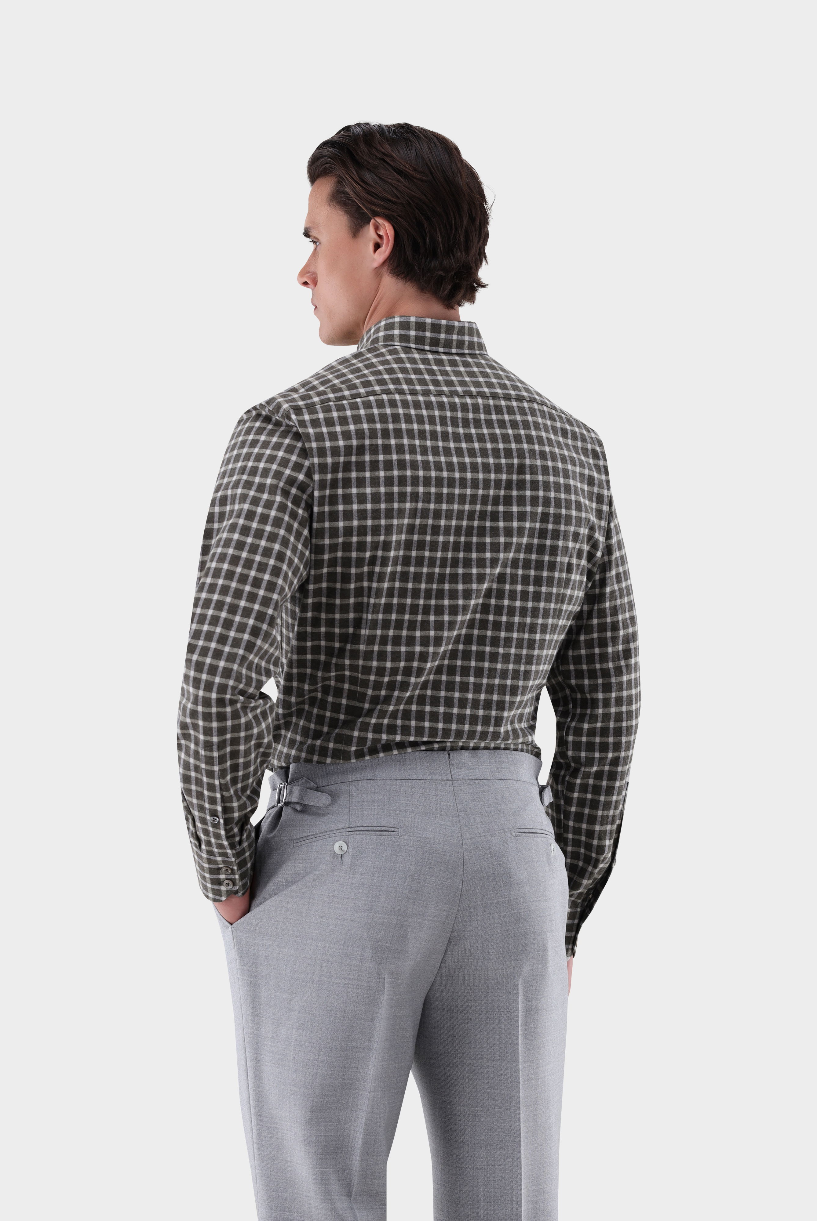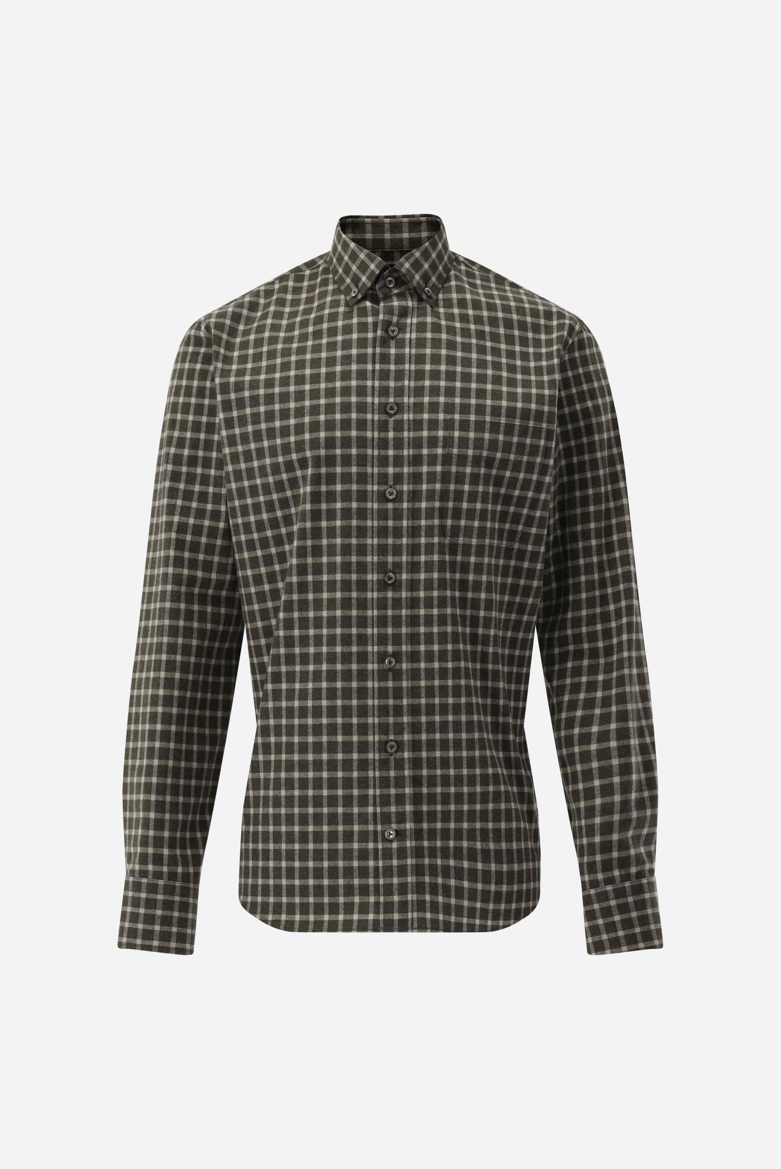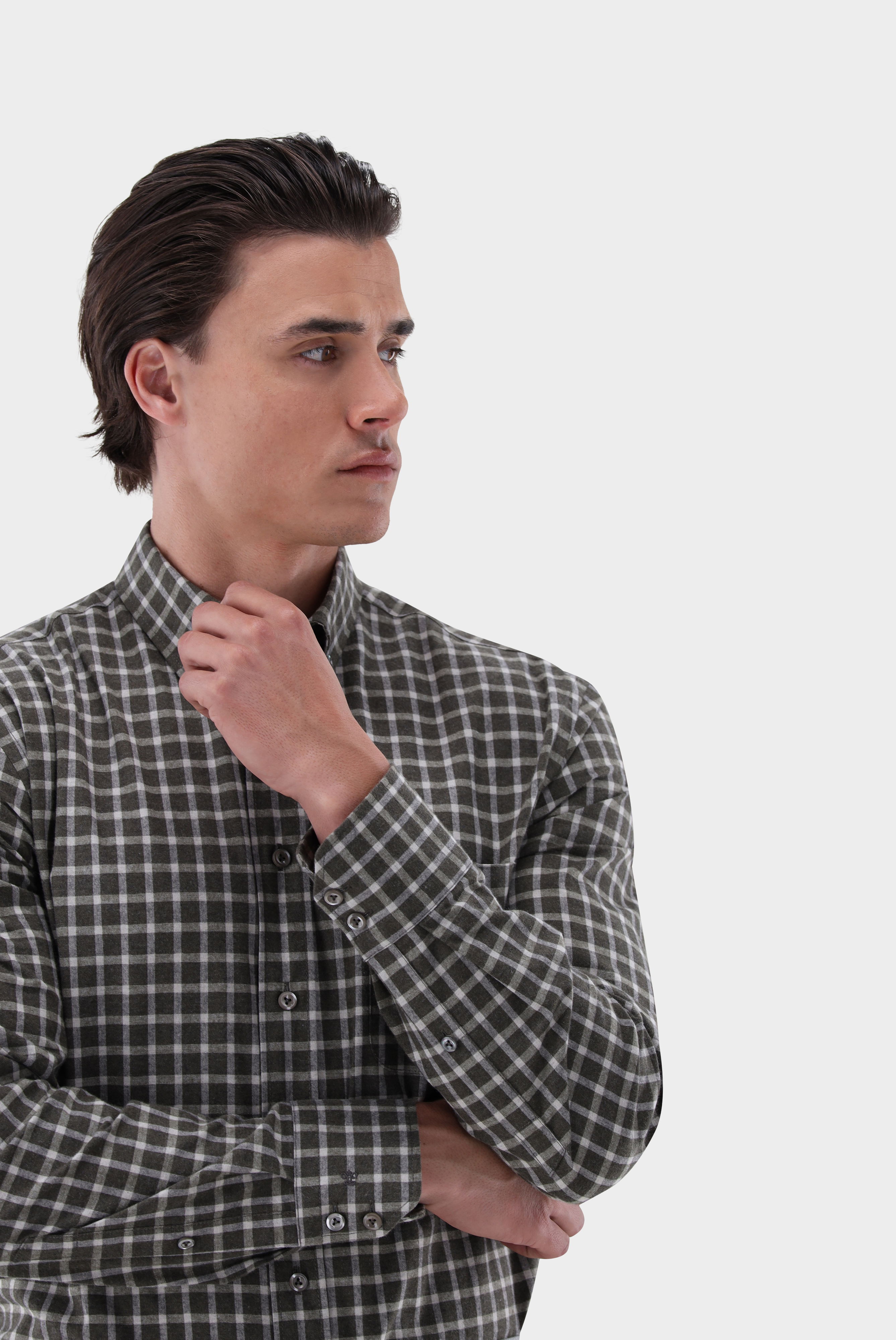 Look aus Flanellhemd kariert mit Button-Down Kragen