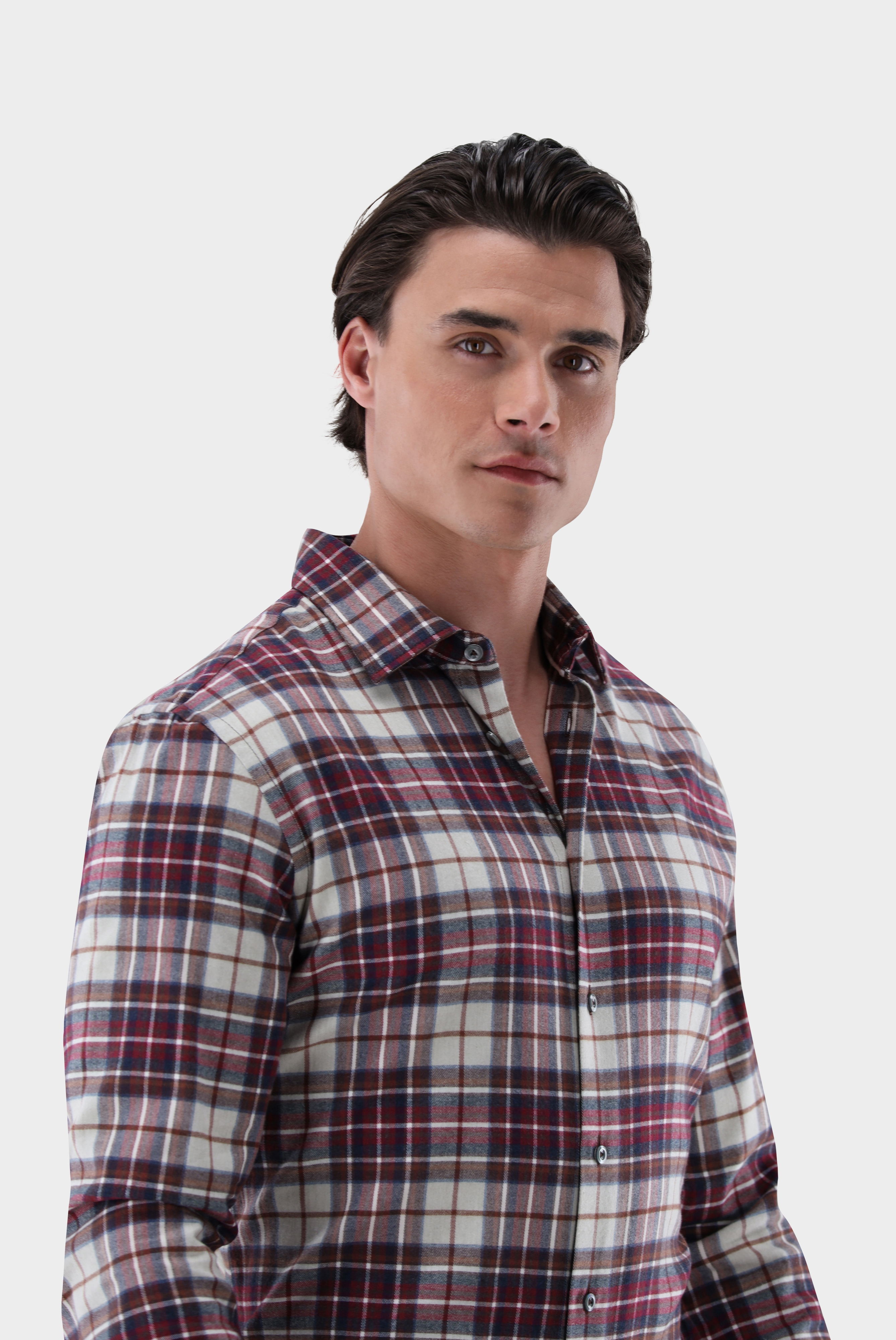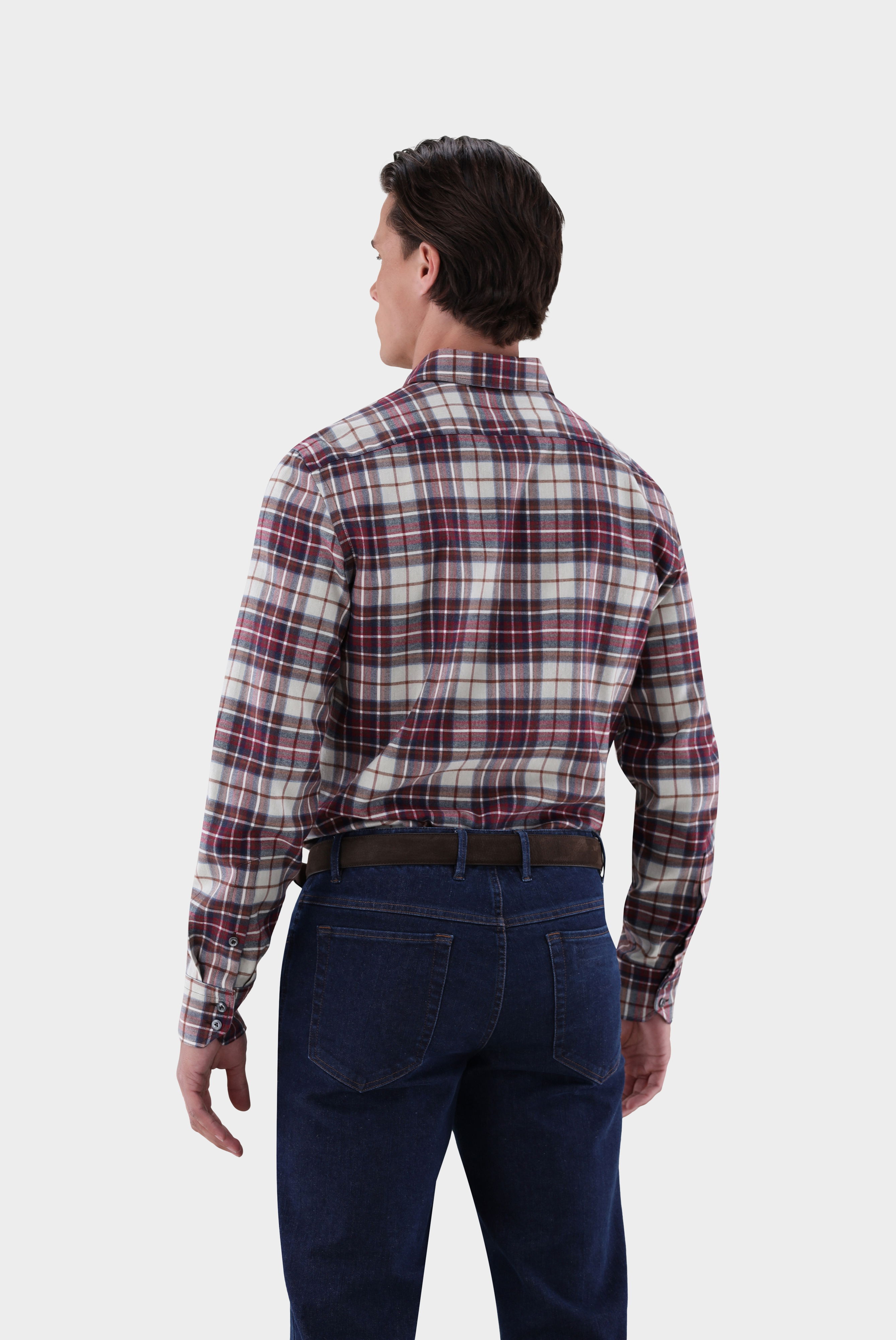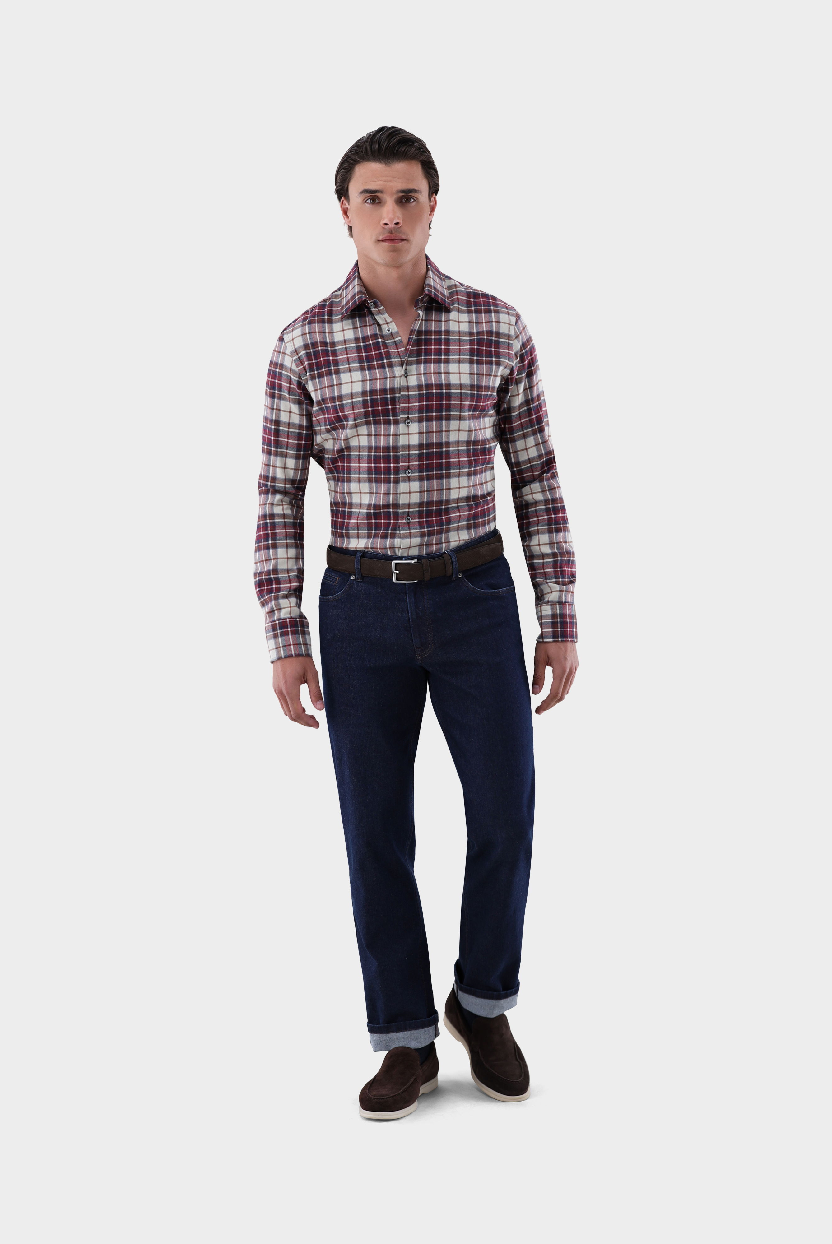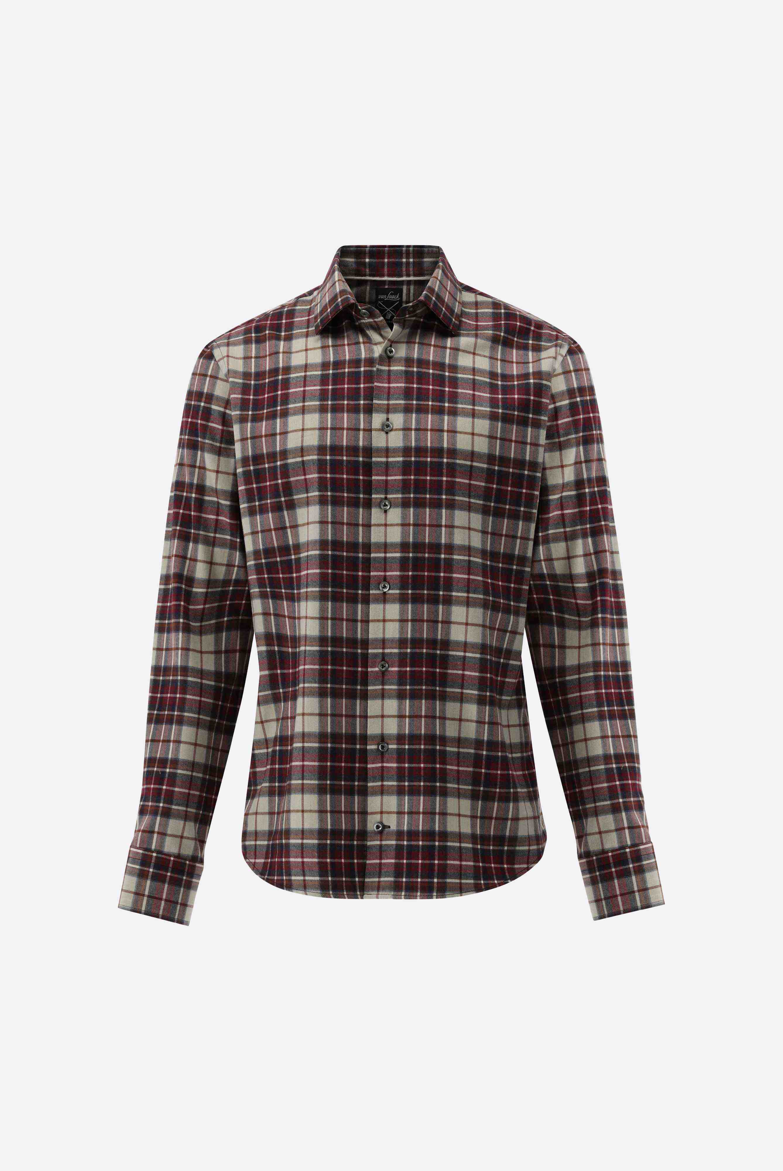 Kariertes Luxus-Flanellhemd mit Kaschmir-Touch für ein besonders weiches Tragegefühl. Das Modell kommt ohne Abnäher und überzeugt mit feiner Paspelierung, die dem Design dezente Eleganz verleiht. Hochwertige Perlmuttknöpfe unterstreichen den edlen Charakter. In moderner Tailor-Fit-Passform gefertigt, bietet das Hemd optimalen Sitz und hohen Komfort – ideal für stilvolle Freizeitlooks oder anspruchsvolle Business-Outfits.
