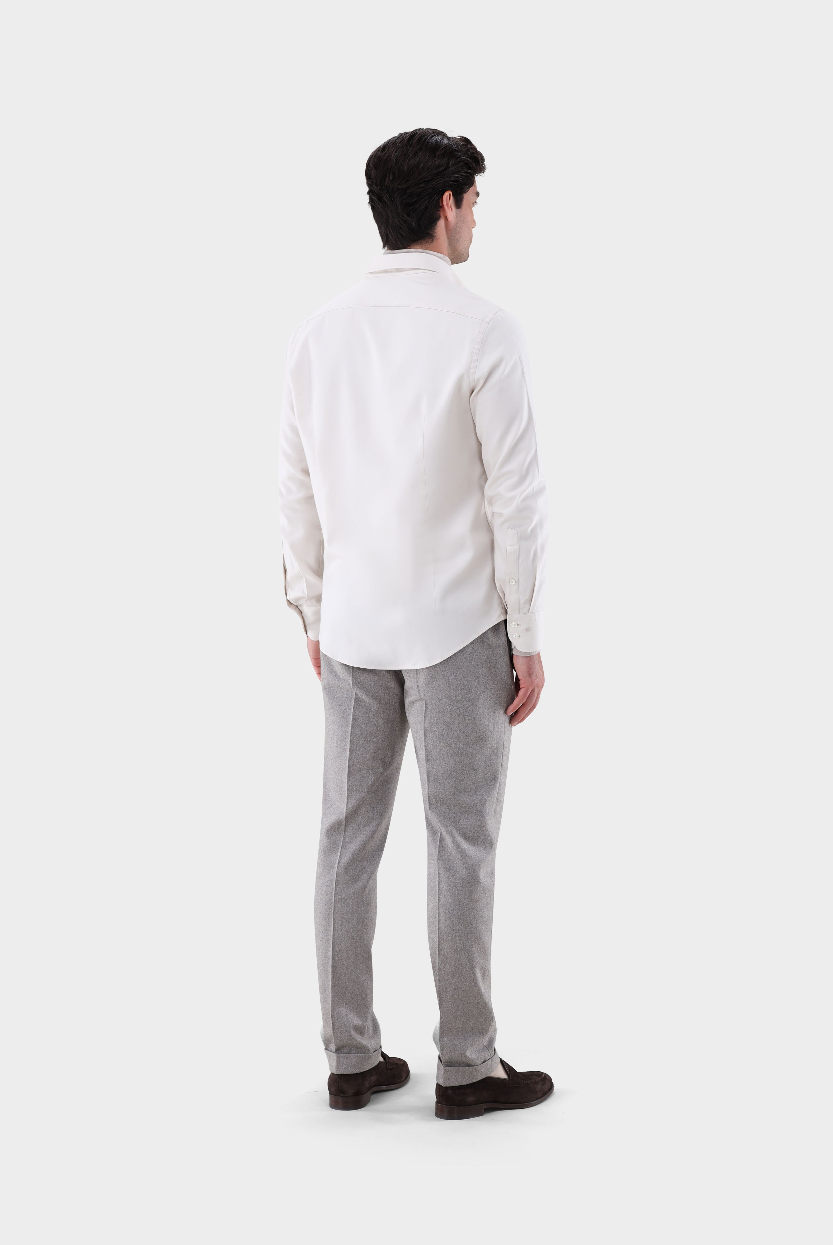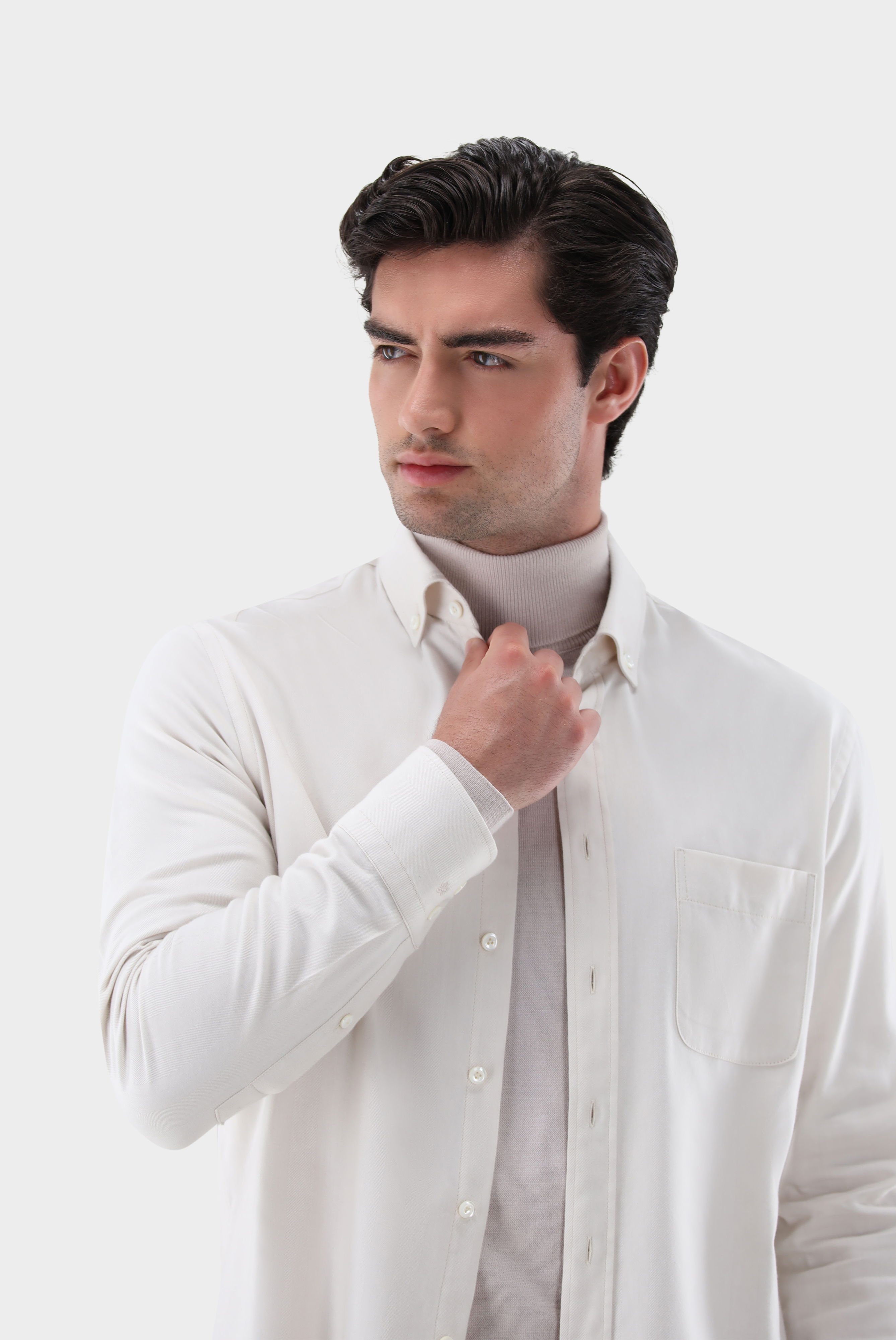 Das weiche Luxus-Flanellhemd mit Kaschmir-Touch überzeugt durch seine edle Haptik und hochwertige Verarbeitung. Die feine Paspelierung und das Fischgrätenmuster verleiht dem Design eine stilvolle Note. Der Tailor Fit sorgt für eine figurbetonte, aber komfortable Passform. Ein klassischer Button-Down-Kragen und edle Perlmuttknöpfe runden das Gesamtbild ab. Dieses Hemd ist ideal für elegante Business- und gehobene Freizeitlooks.