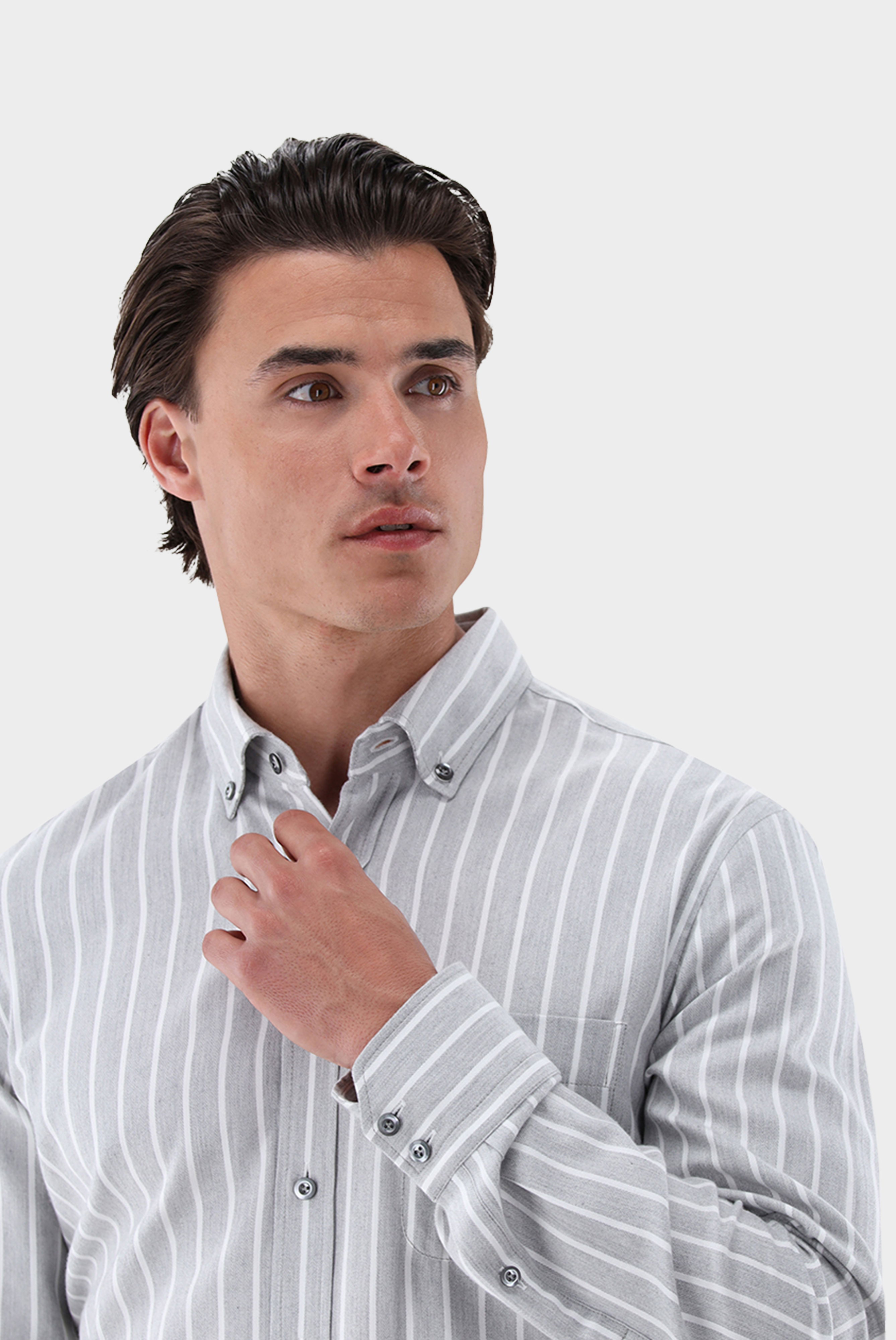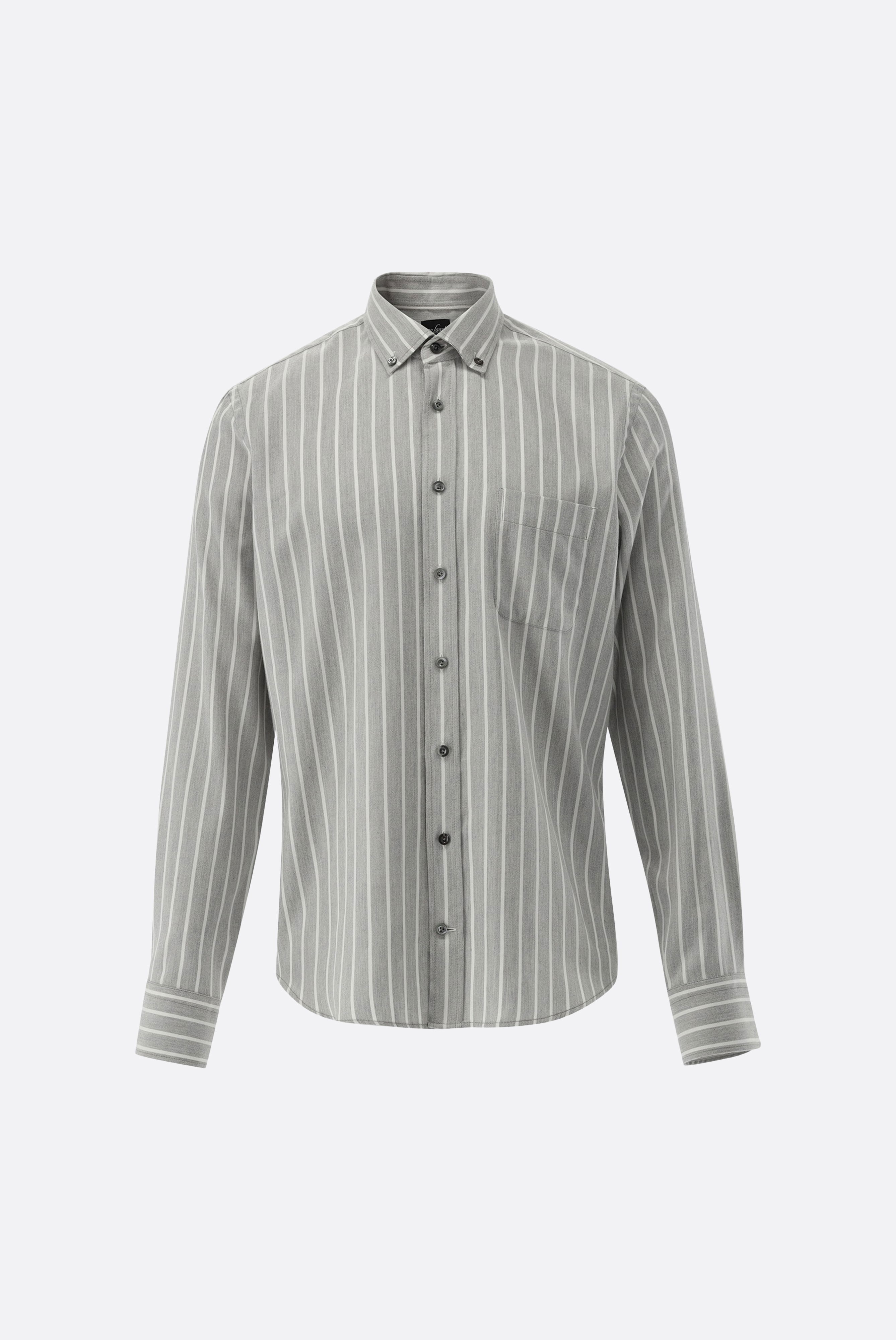 Gestreiftes Flanellhemd für besonders hohen Tragekomfort. Die feine Paspelierung setzt dezente, hochwertige Akzente im Design. Der Stoff überzeugt durch seine angenehme Haptik und eignet sich ideal für kühlere Tage. Das Hemd kombiniert klassische Streifenoptik mit moderner Verarbeitung. Eine stilvolle Wahl für gepflegte Freizeit- und Casual-Looks.