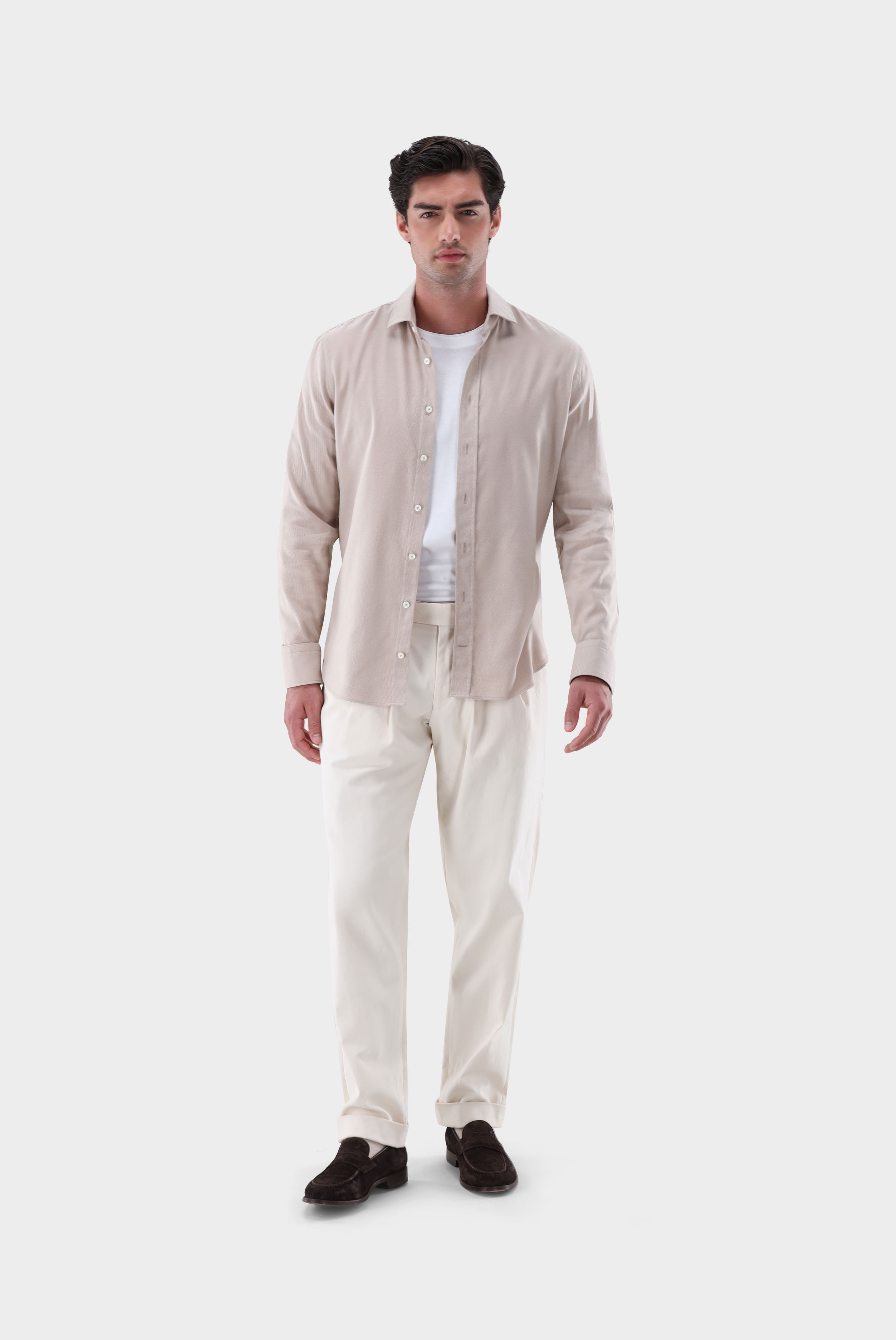 Das weiche Luxus-Flanellhemd überzeugt durch höchsten Tragekomfort und eine edle Haptik. Feine Paspelierungen und ein Fischgrätenmuster setzen dezente Akzente und unterstreichen die hochwertige Verarbeitung. Der körpernahe Slim Fit sorgt für eine moderne, schmale Silhouette. Ein kleiner Haifischkragen und edle Perlmuttknöpfe runden das stilvolle Design ab. Ideal für anspruchsvolle Business- und Freizeitlooks mit Eleganz.