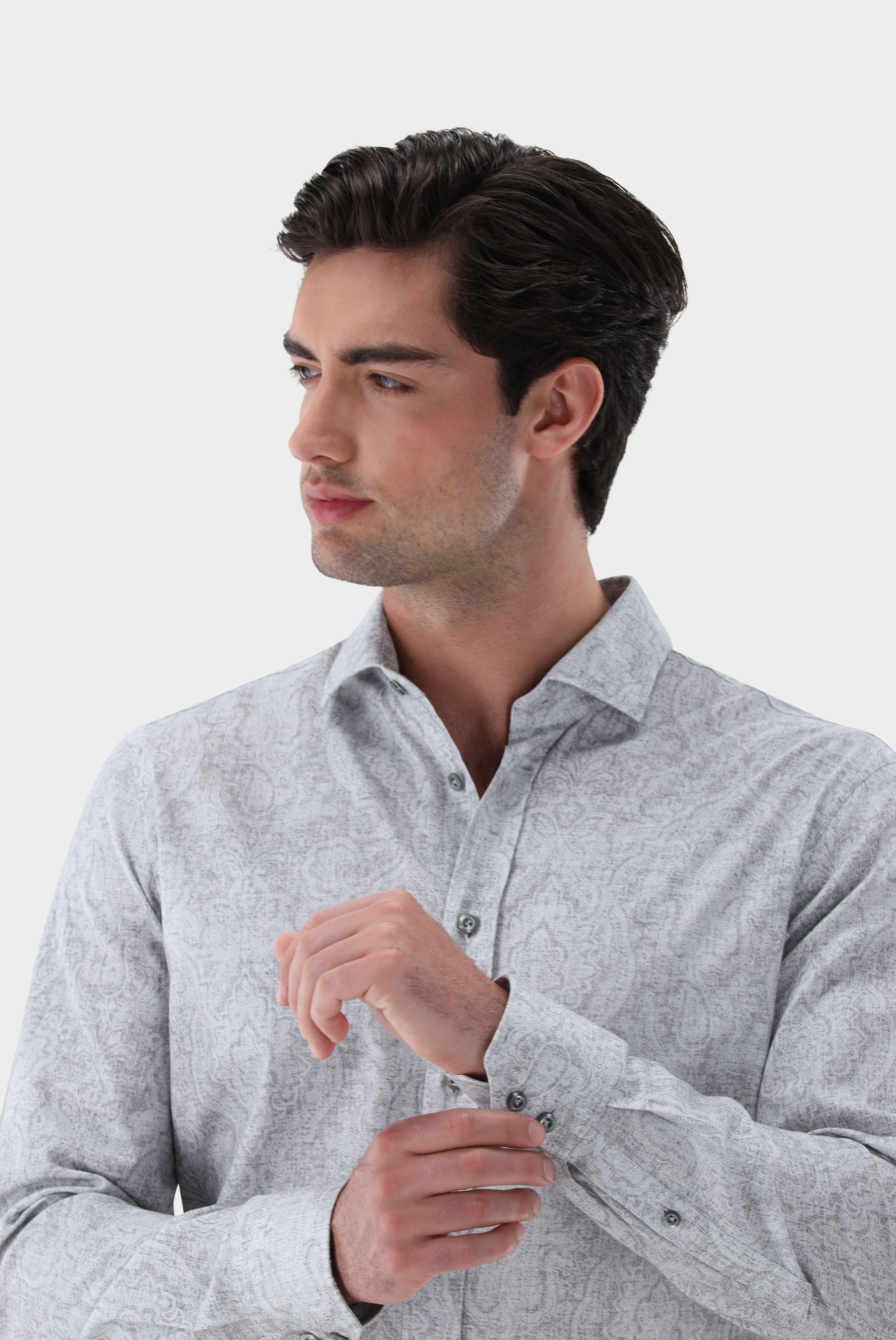 Look aus Flanellhemd mit Paisley Druck Tailor Fit