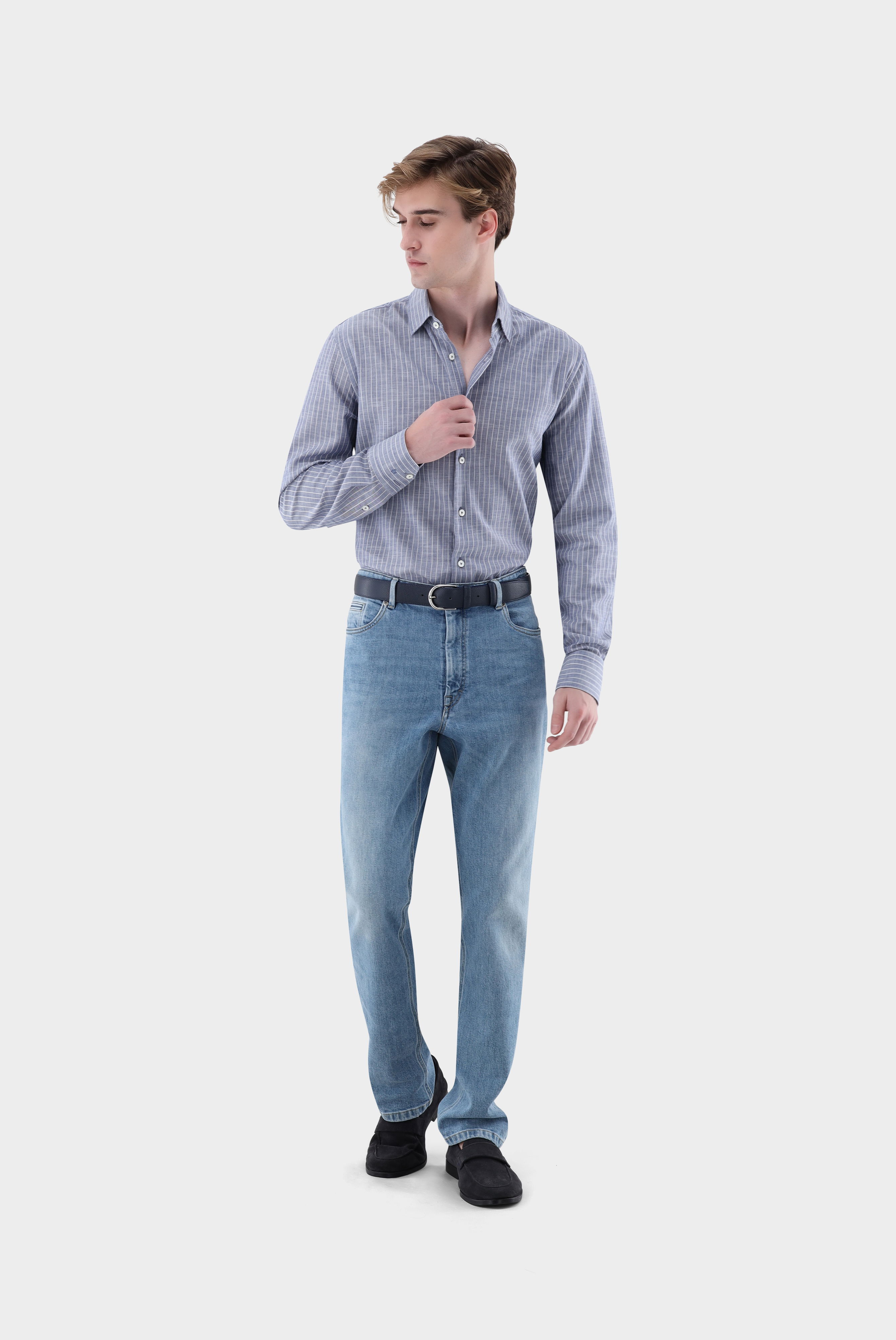 Look aus Gestreiftes Twill-Hemd verwaschene Optik