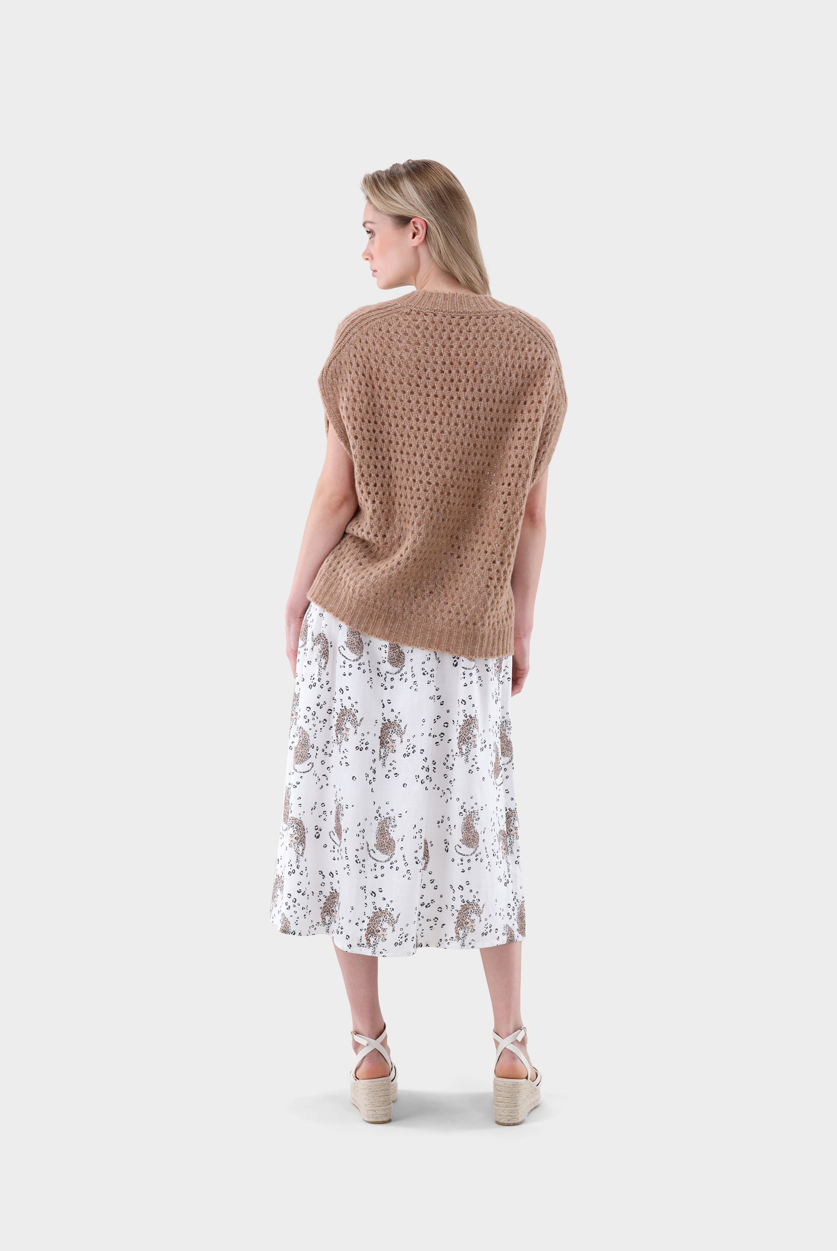 Look aus Häkel-Pullunder mit V-Ausschnitt
