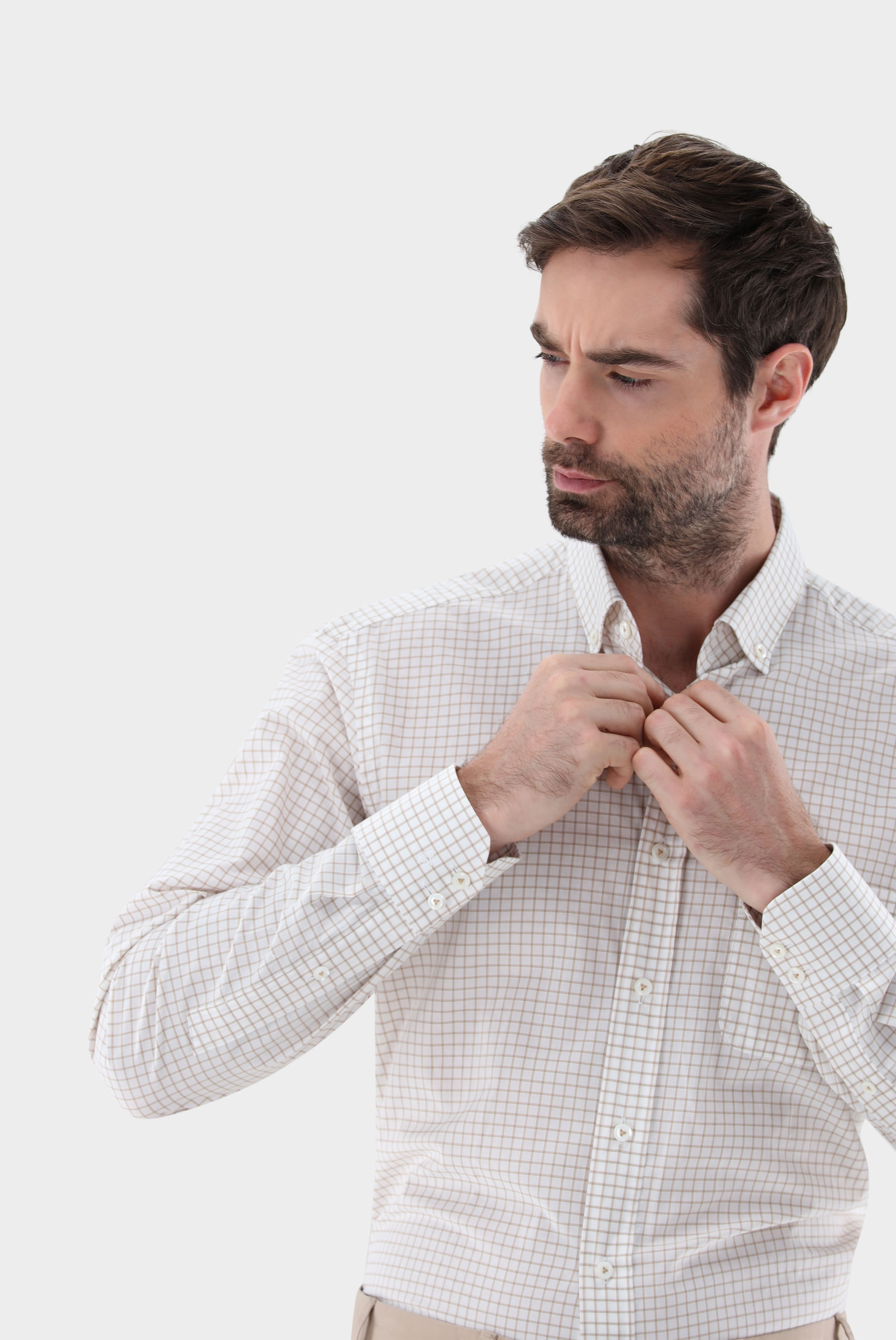 Dieses Chambray-Hemd mit klassischem Fensterkaro-Muster ist die perfekte Kombination aus Eleganz und Lässigkeit. Der atmungsaktive Chambray-Stoff sorgt für hohen Tragekomfort, während der zeitlose Button-Down-Kragen und die feinen Karos dem Hemd eine edle Optik verleihen. Es eignet sich ideal für Business-Looks oder lässige Outfits und bietet dank seines vielseitigen Designs eine breite Einsatzmöglichkeit.