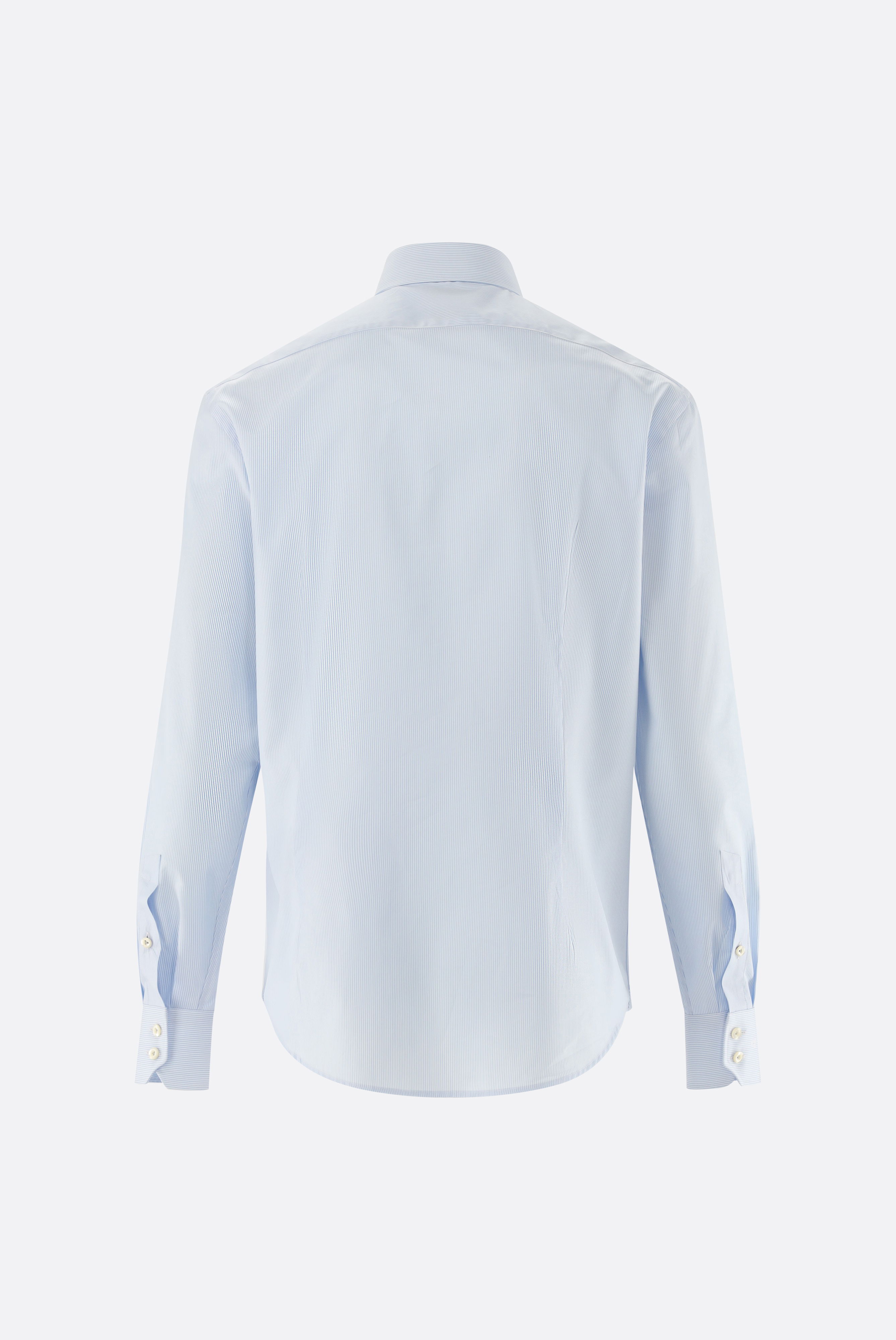 Dieses fein gestreifte Hemd aus feinem Baumwoll-Twill kombiniert klassische Eleganz mit hoher Funktionalität. Der Stoff ist Teil der „Perfect Look“-Kollektion und zeichnet sich durch seine knitterarme Qualität aus: Durch Körperwärme glättet er sich zusätzlich und bleibt langanhaltend gepflegt. Die Tailor-Fit-Passform sorgt für eine schlanke Silhouette, edle Perlmuttknöpfe setzen stilvolle Akzente, und extra lange Ärmel bieten optimalen Komfort. Ideal für Business- und Smart-Casual-Looks.