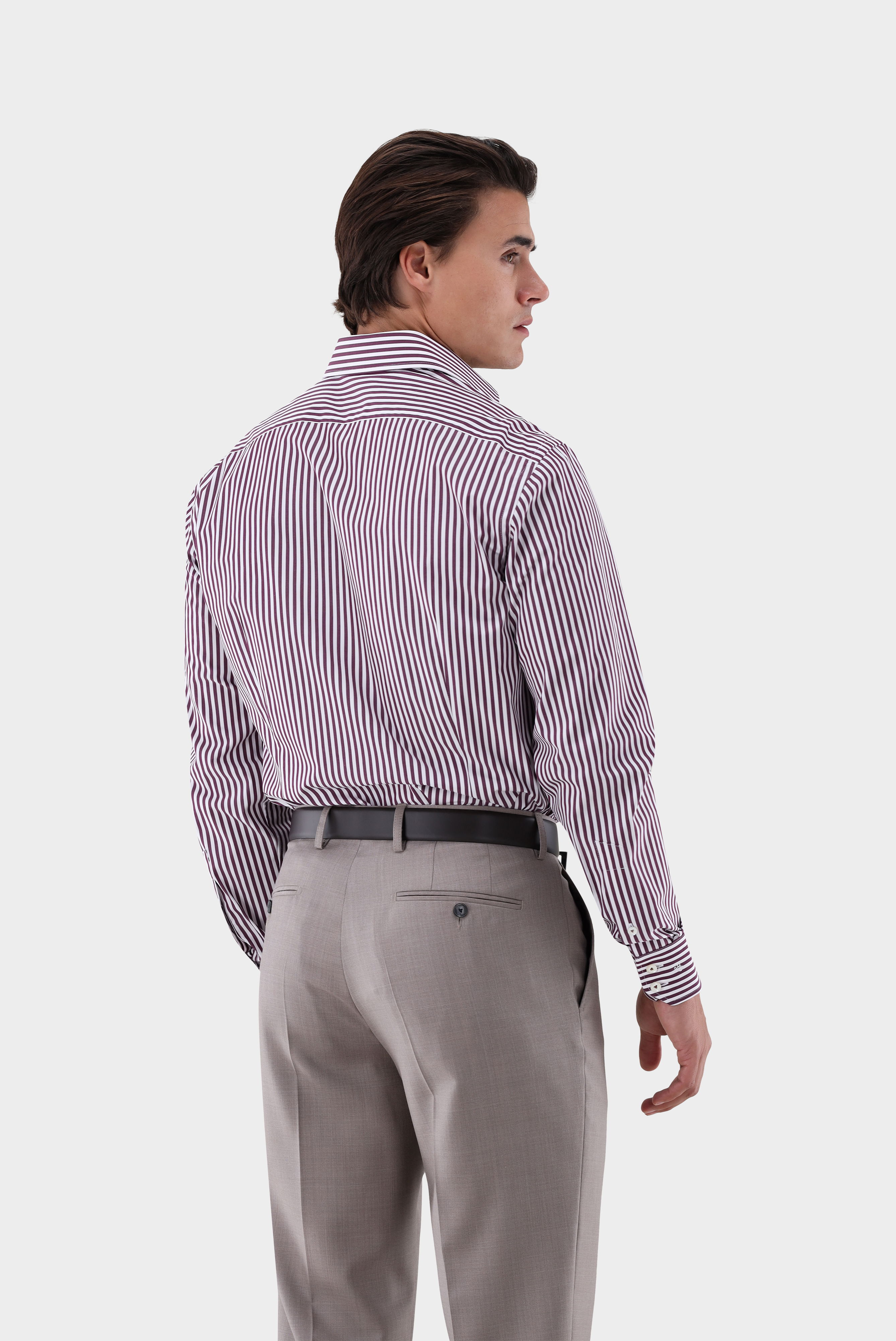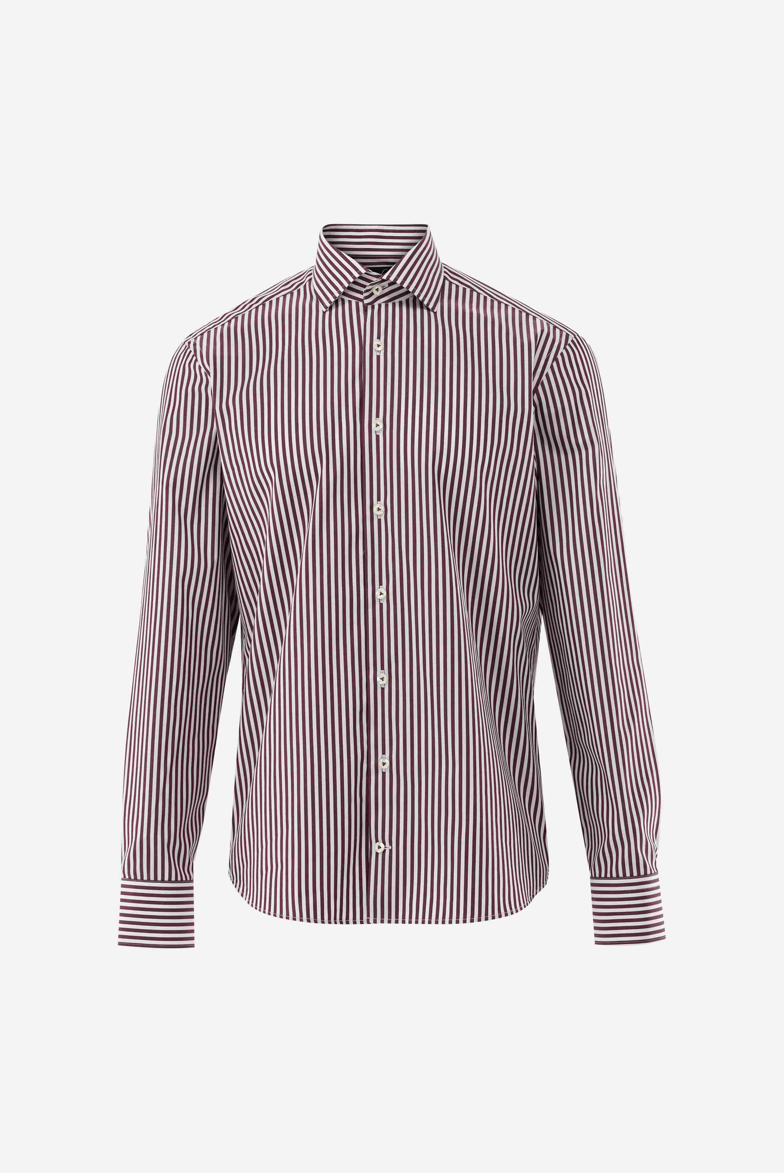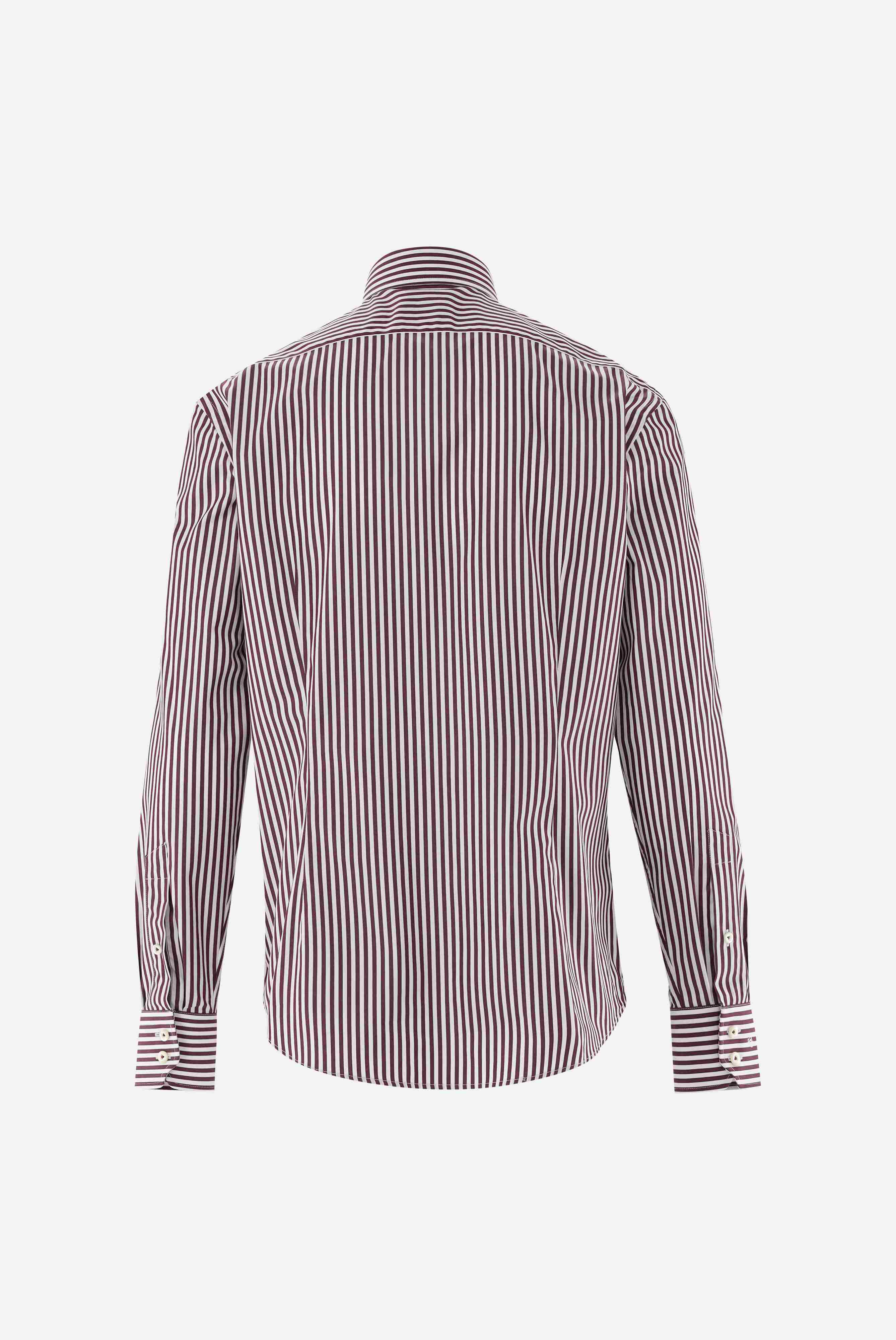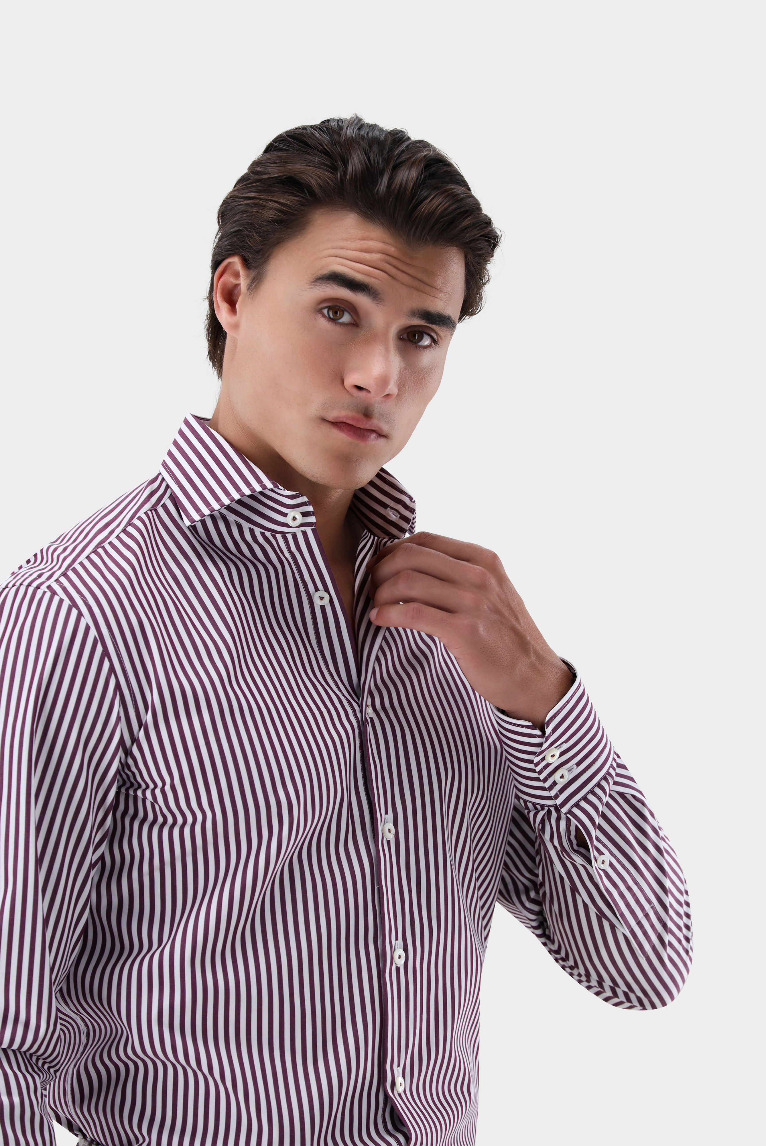Das City-Hemd aus feiner Popeline in zweilagiger Pfirsichhaut überzeugt mit einem besonders weichen Griff und hoher Qualität. Das dezente Bonbonstreifen-Design verleiht dem Hemd eine elegante und moderne Optik. Der Tailor Fit sorgt für eine figurbetonte, aber bequeme Passform. Edle Perlmuttknöpfe und ein klassischer Haifischkragen runden das anspruchsvolle Design ab. Dieses Hemd eignet sich perfekt für stilvolle Business- und formelle Anlässe.