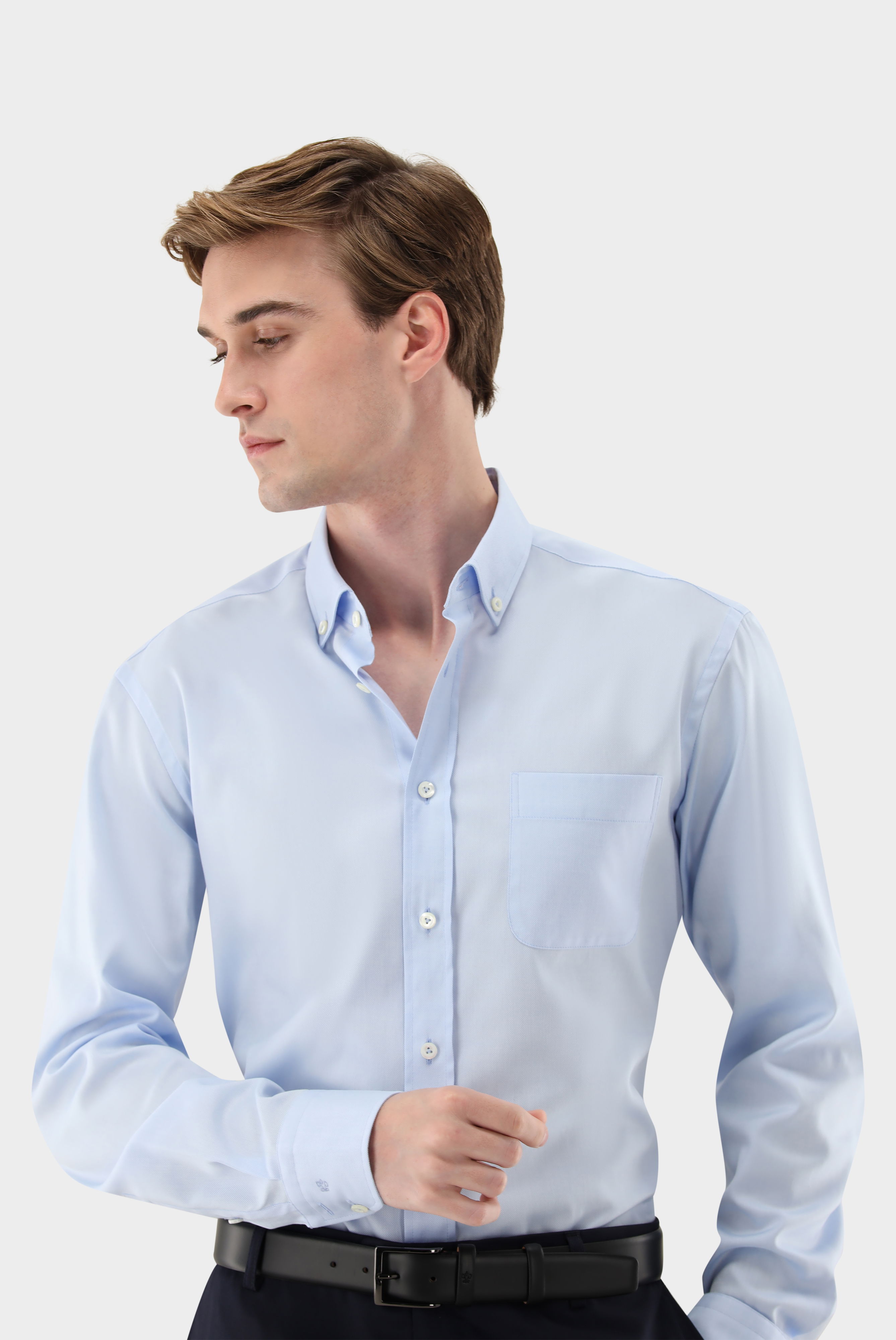 Dieses Tailor Fit-Hemd mit Button-Down Kragen überzeugt durch formelles Design und edle Details. Der körpernahe Schnitt garantiert perfekten Sitz und angenehmen Tragekomfort dank hochwertiger Baumwollqualität. Egal, ob bei Hochzeiten oder festlichen Anlässen - dieses Hemd ist ein eleganter Begleiter, der sich leicht kombinieren lässt. Es entspricht dem aktuellen Zeitgeist und fügt sich ideal in jedes Business-Outfit. Das Uni-Muster macht es zu einem unverzichtbaren Teil der Garderobe.