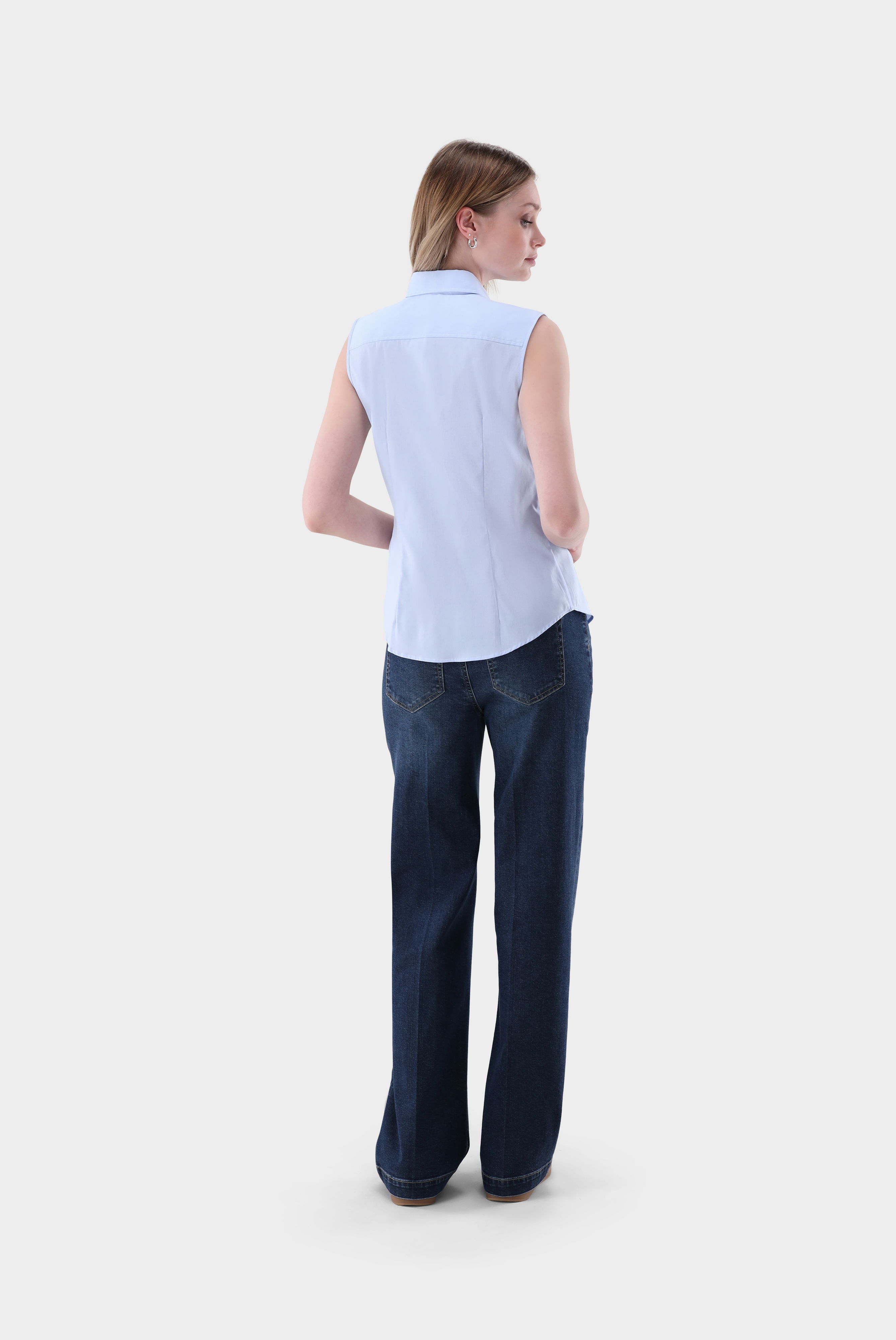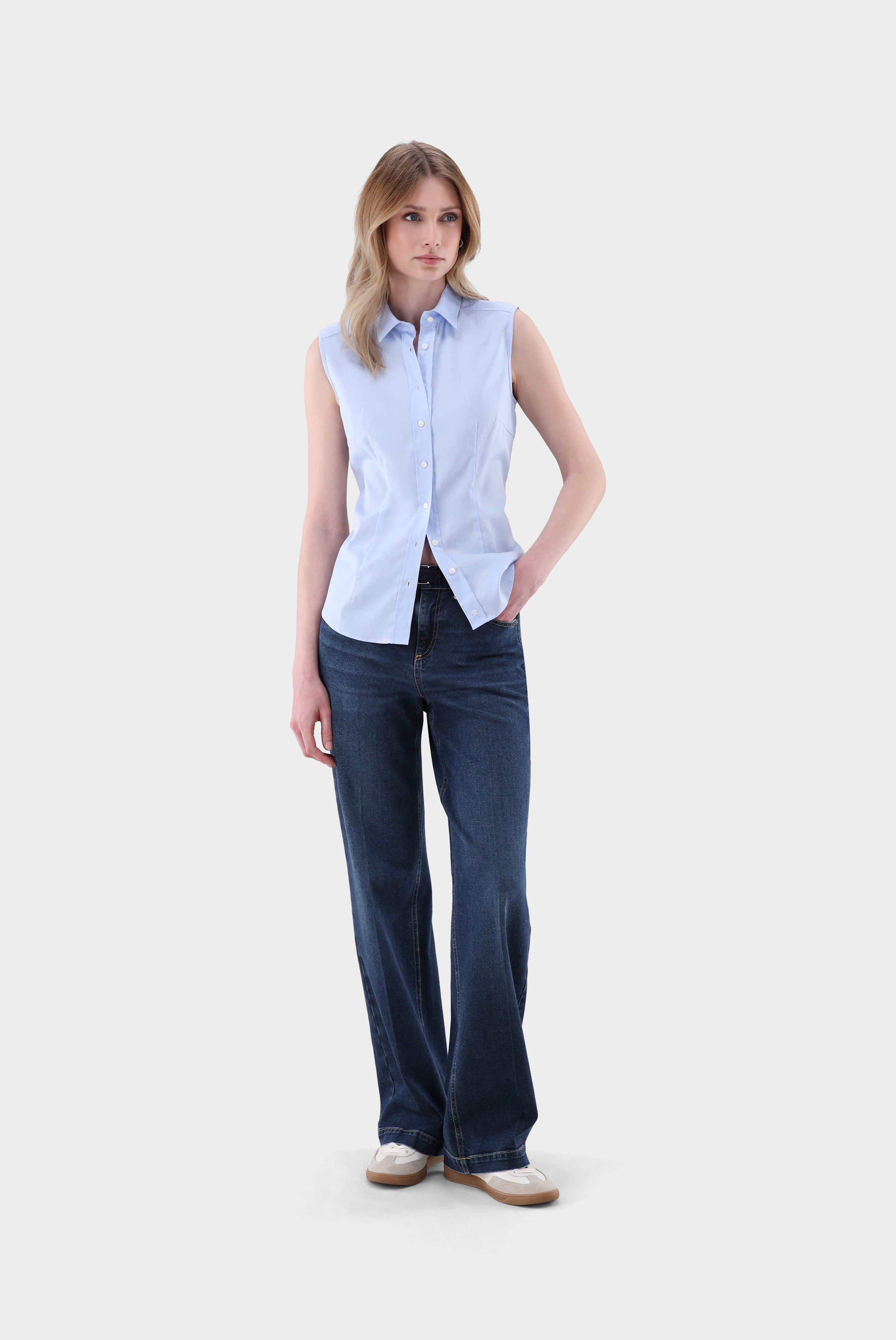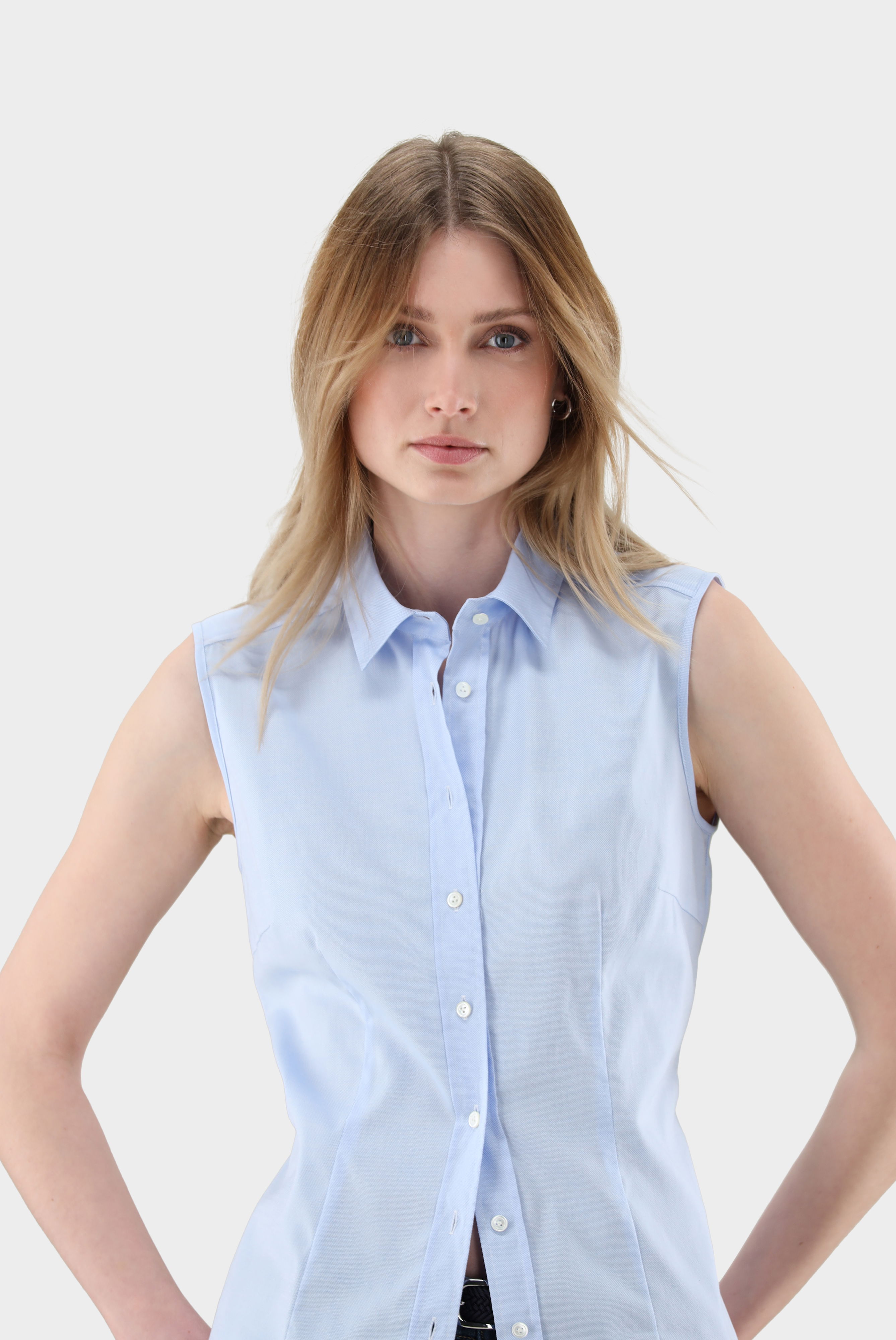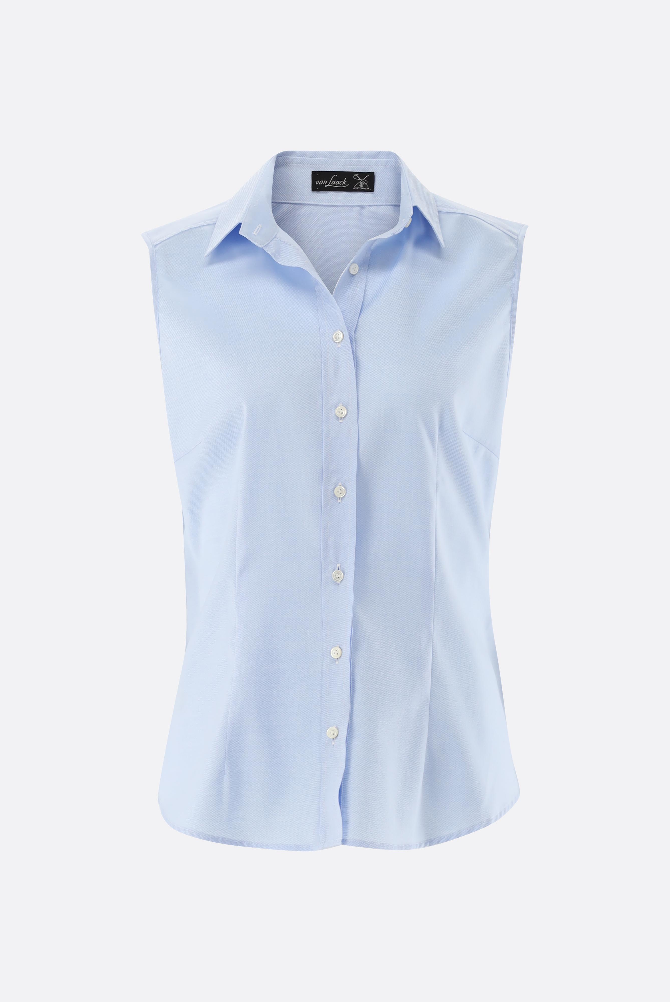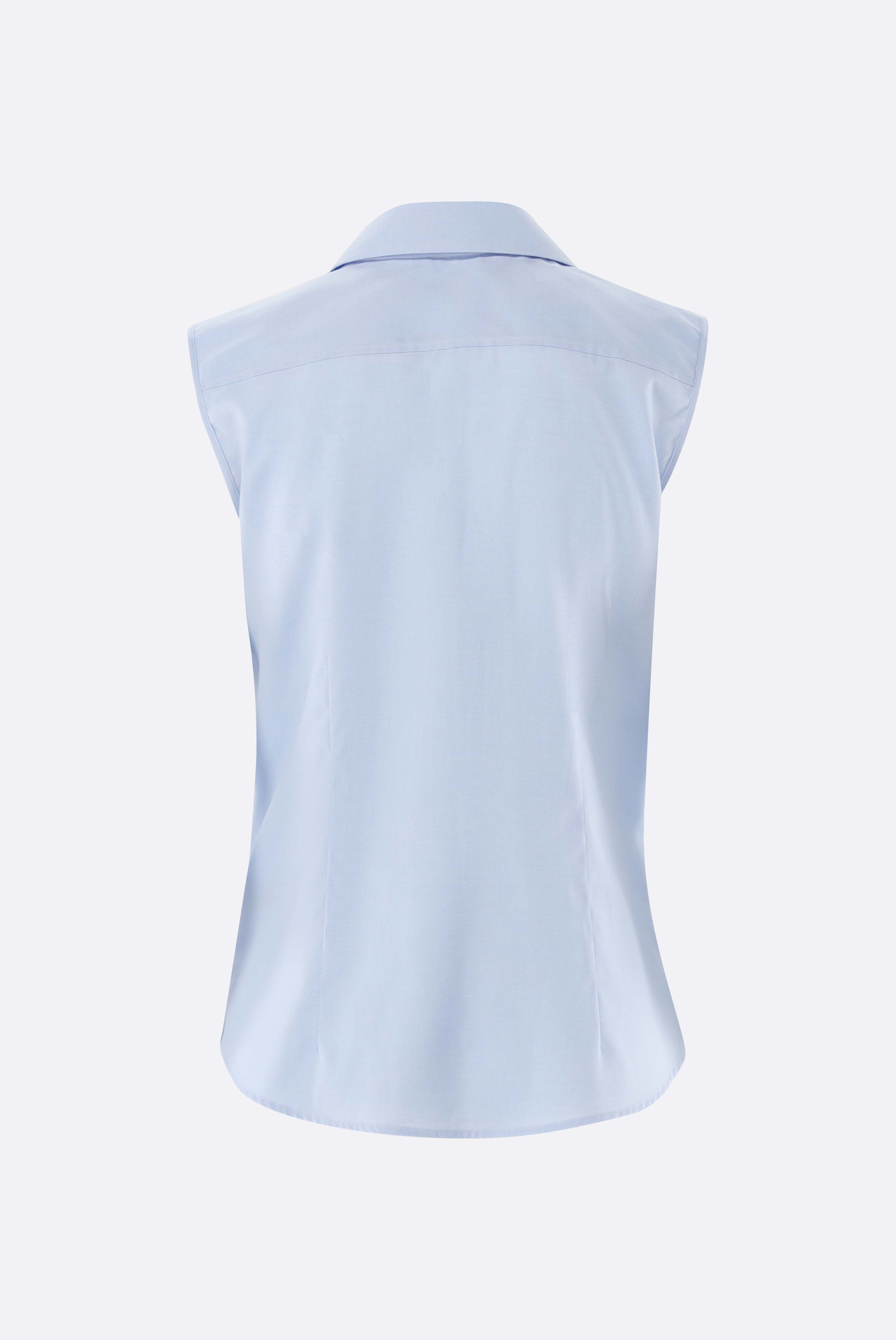 Erkunden Sie unsere ärmellose Bluse mit ikonischem Design und Easy-Care-Funktion. Hergestellt aus hochwertiger Baumwolle bietet sie einen mühelosen und dennoch eleganten Look. Der Hemdblusenkragen und die offene Knopfleiste verleihen eine klassische Note, während der taillierte Schnitt eine schmeichelnde Silhouette zaubert.