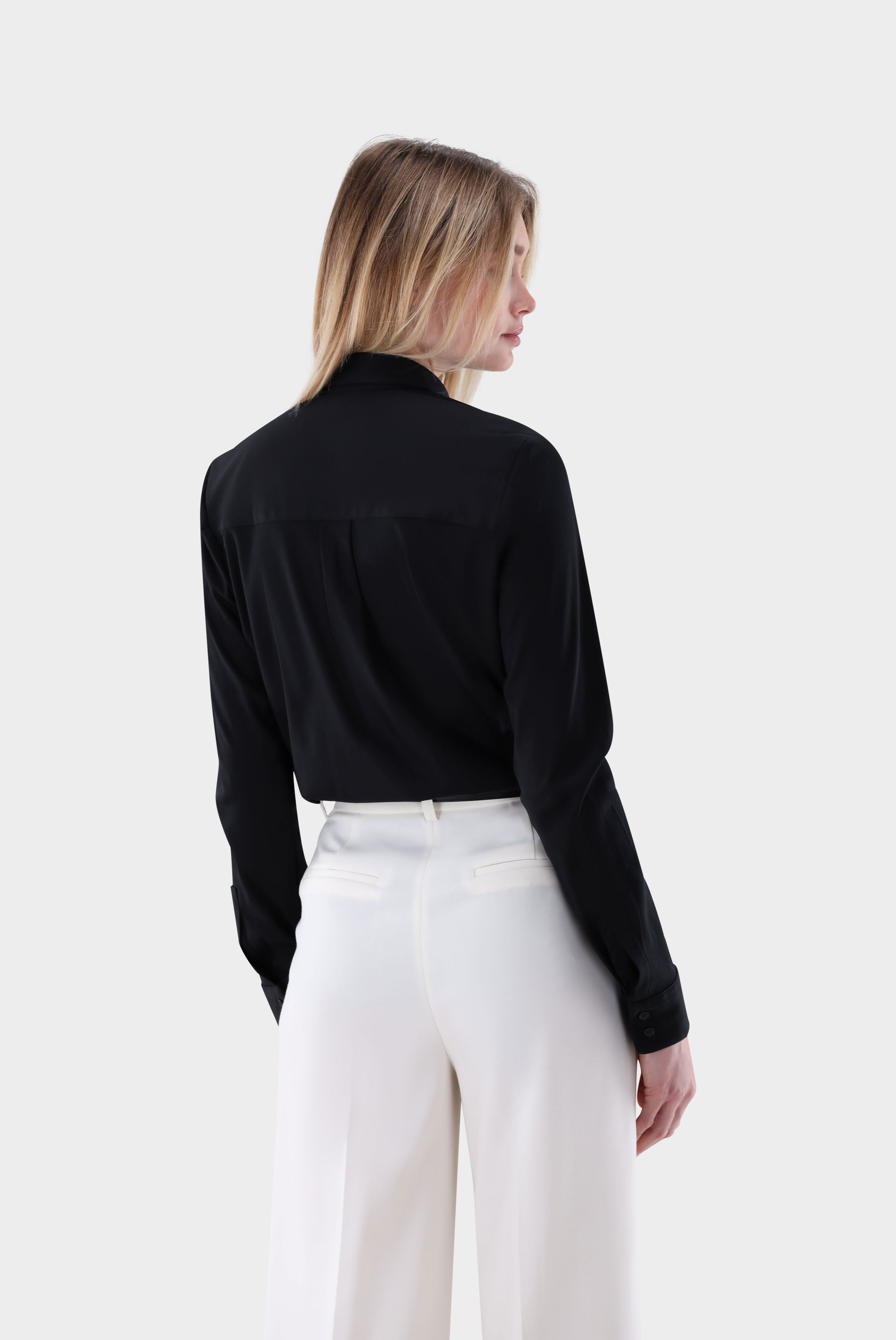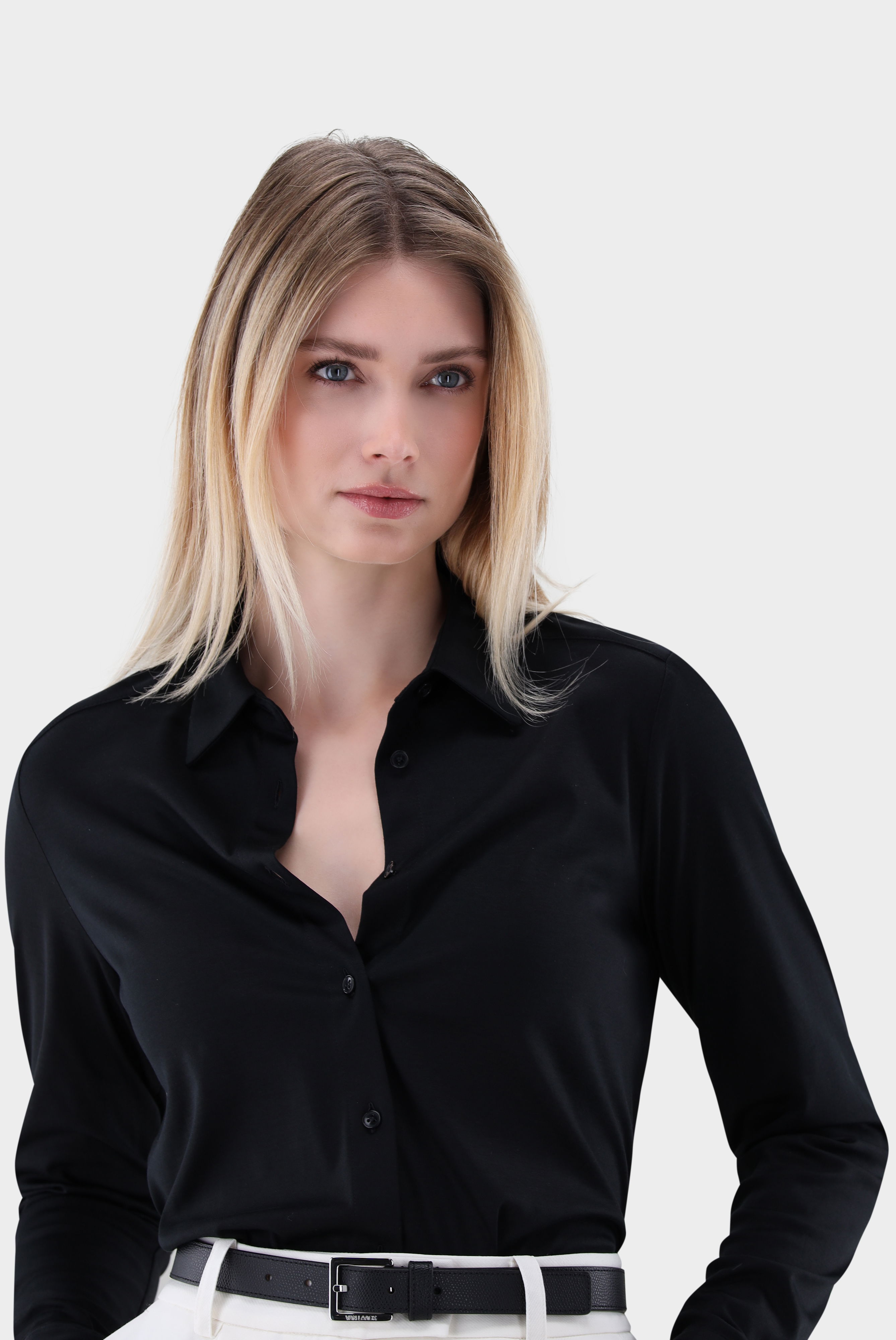 Unsere elegante Hemdbluse besticht durch einen klassischen puristischen Schnitt mit einer französischen Knopfliste und wird aus feinstem Swiss-Cotton in größter Perfektion handgefertigt. Sie ist ein absoluter All-Time-Favorite in unserem Onlineshop und in drei Unifarben Weiß, Schwarz und Dunkelblau erhältlich.