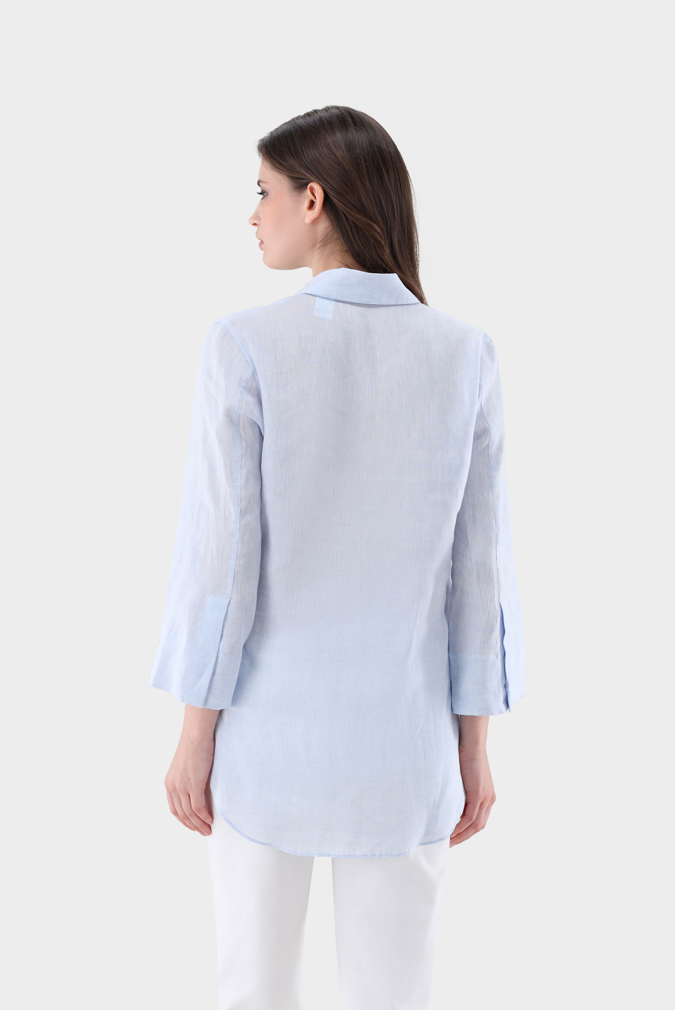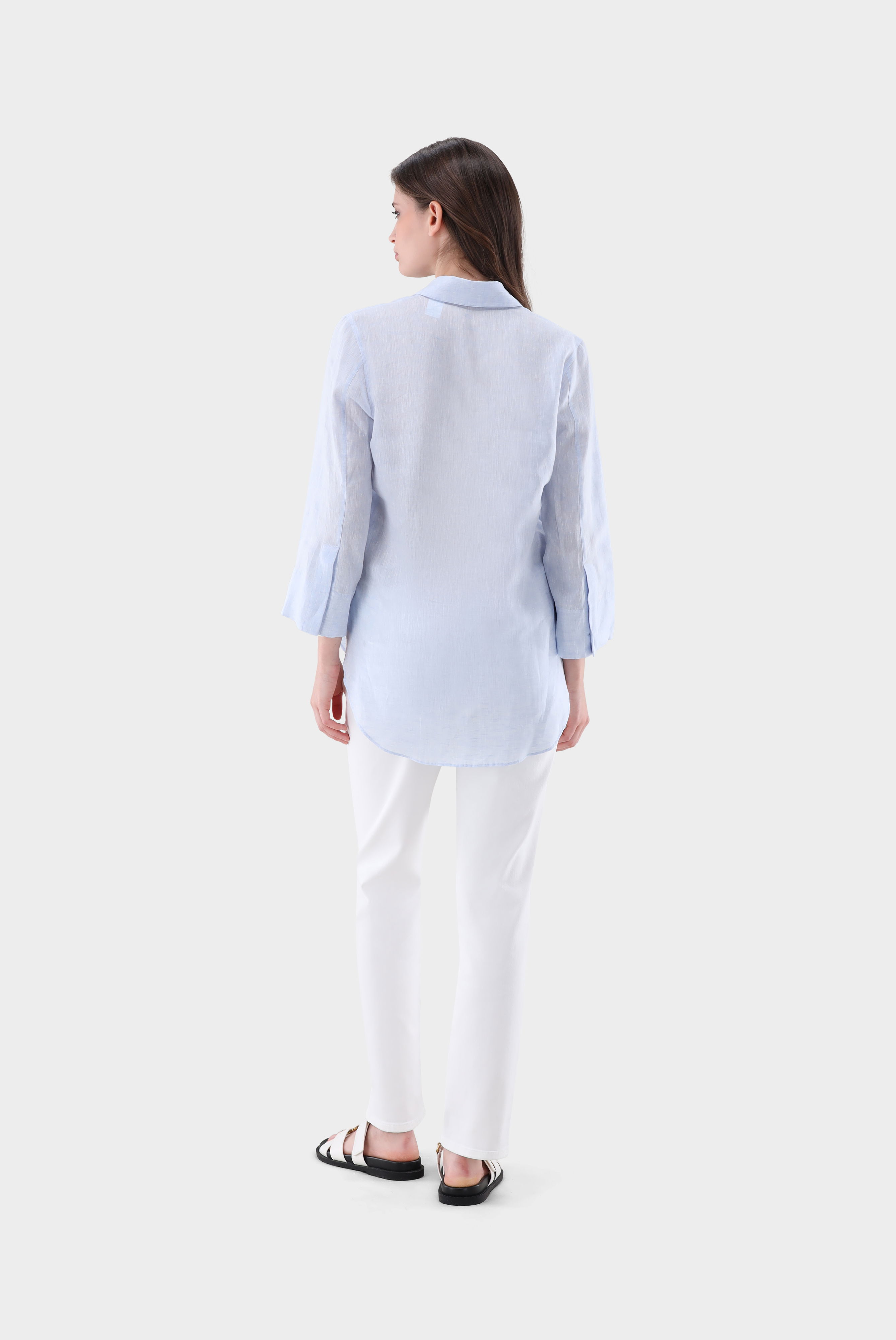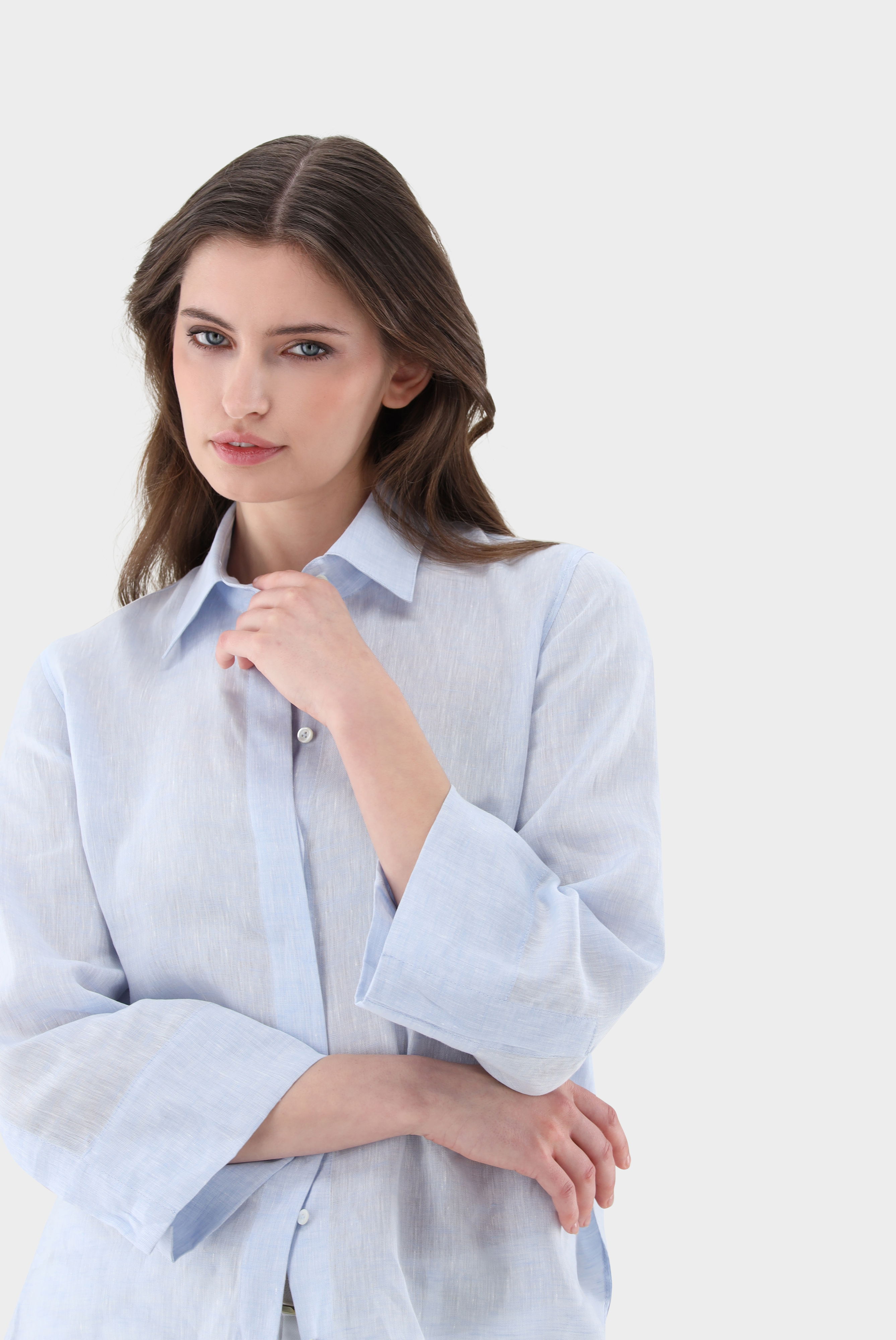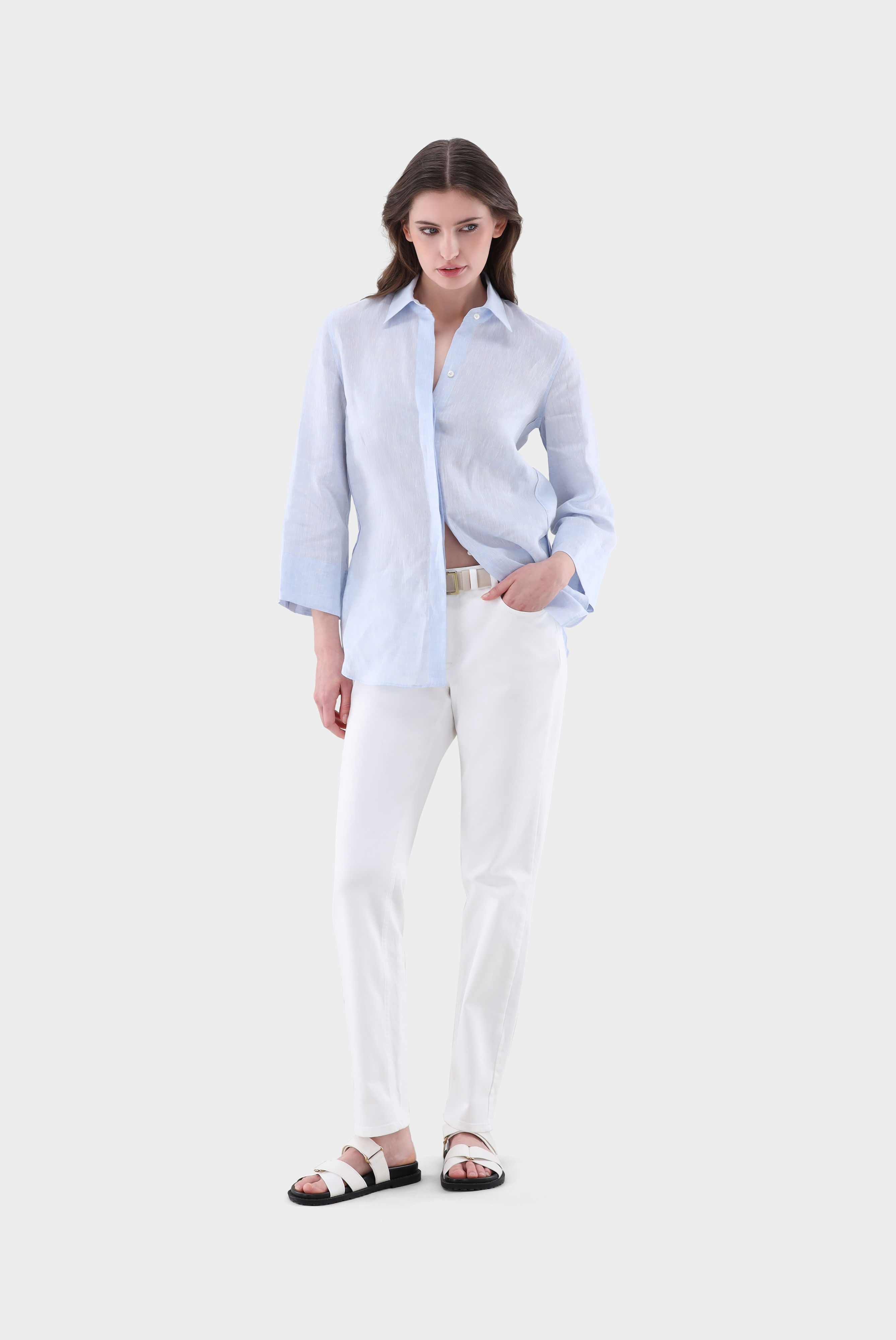 Look aus Hemdbluse aus Leinen mit Seitenschlitzen
