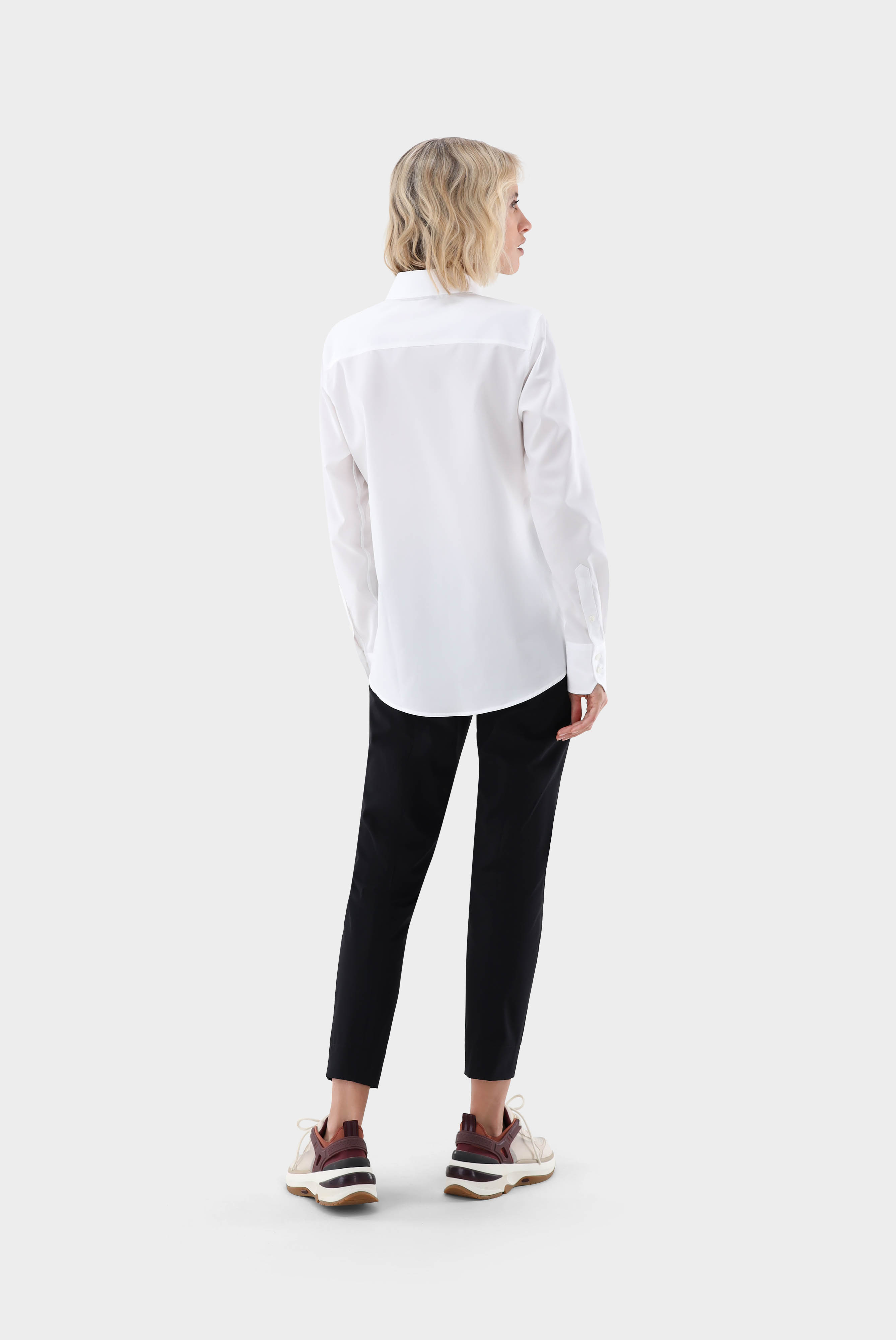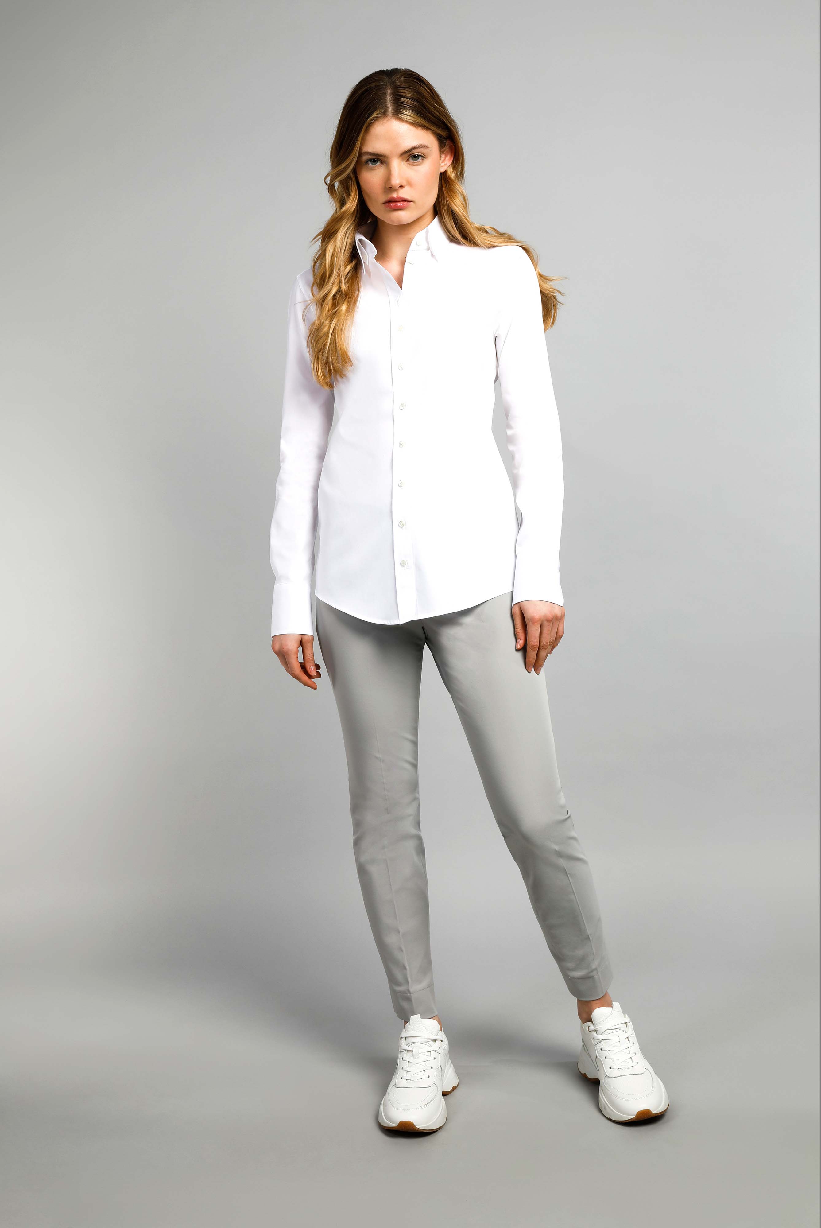 Look aus Hemdbluse aus Popeline mit Button Down Kragen